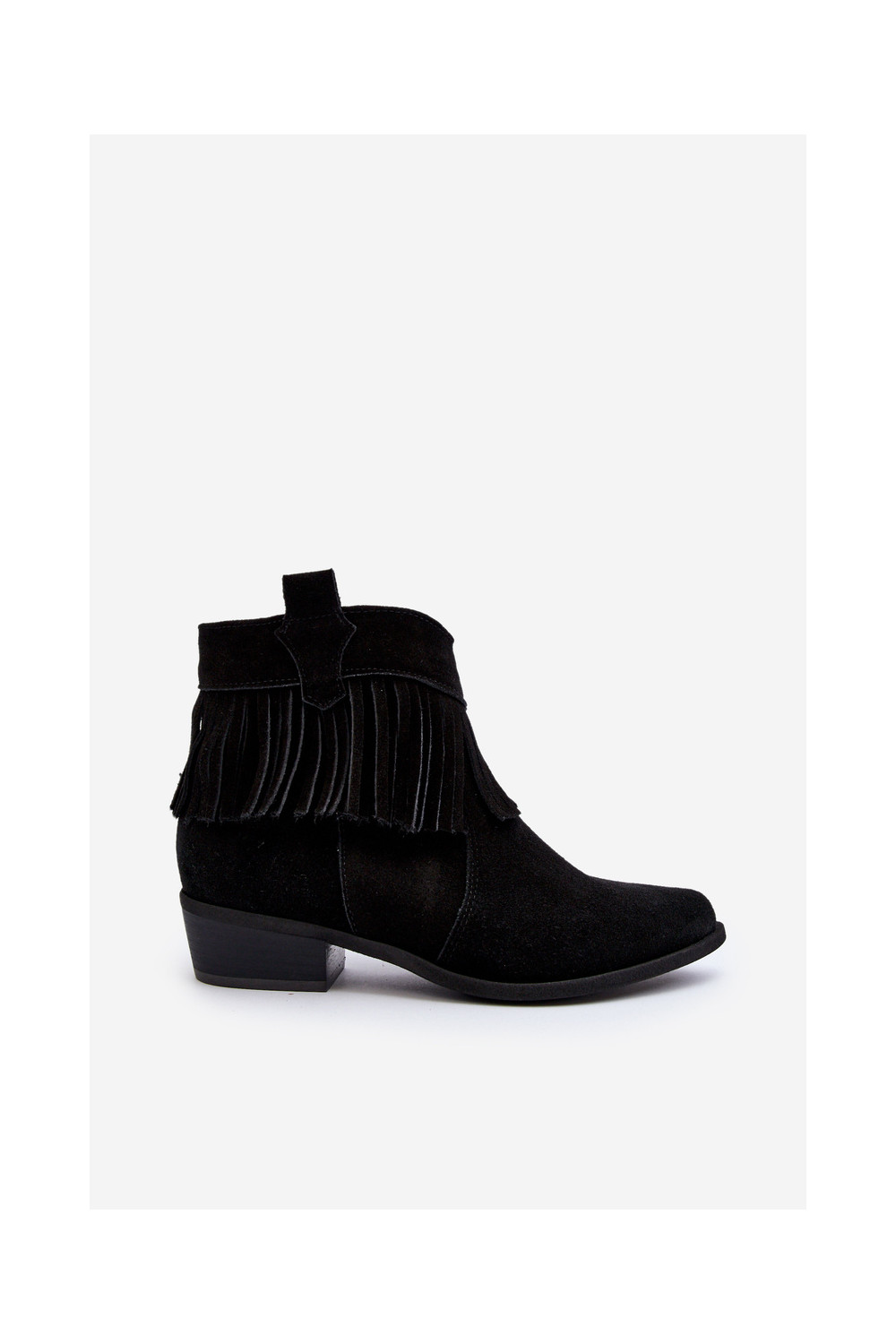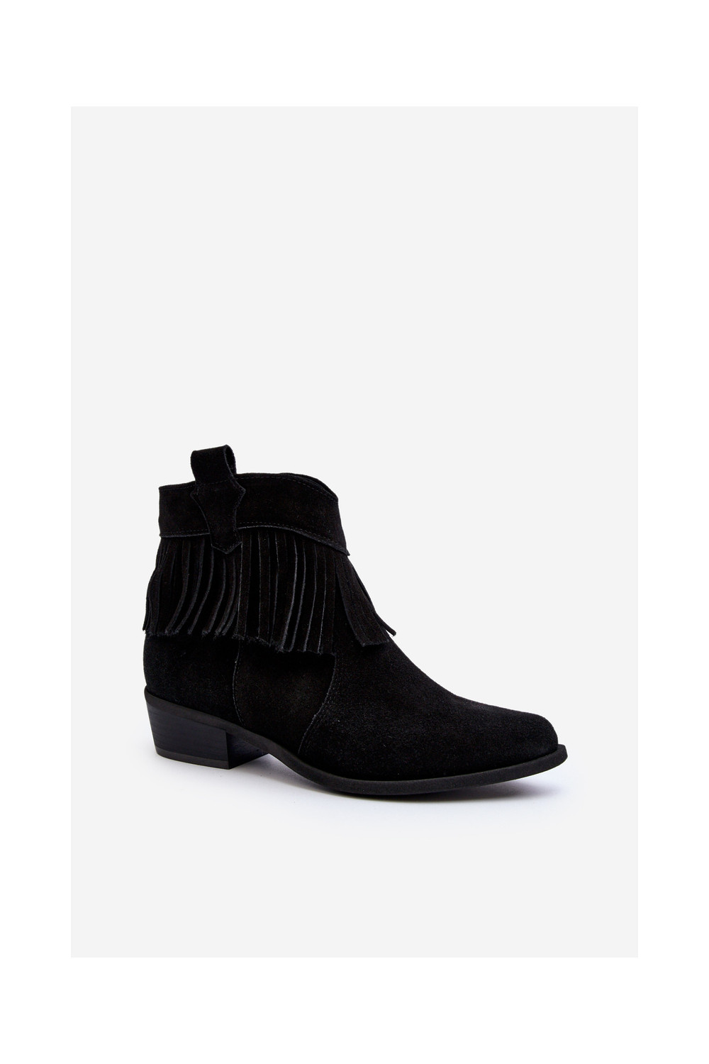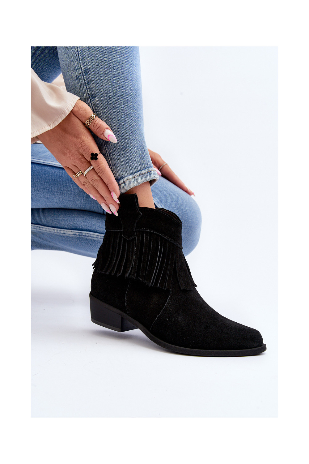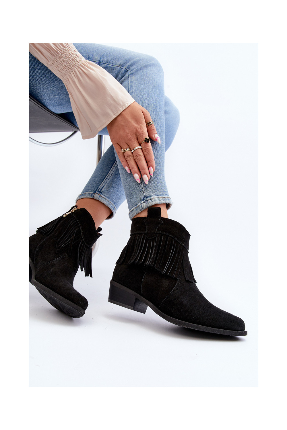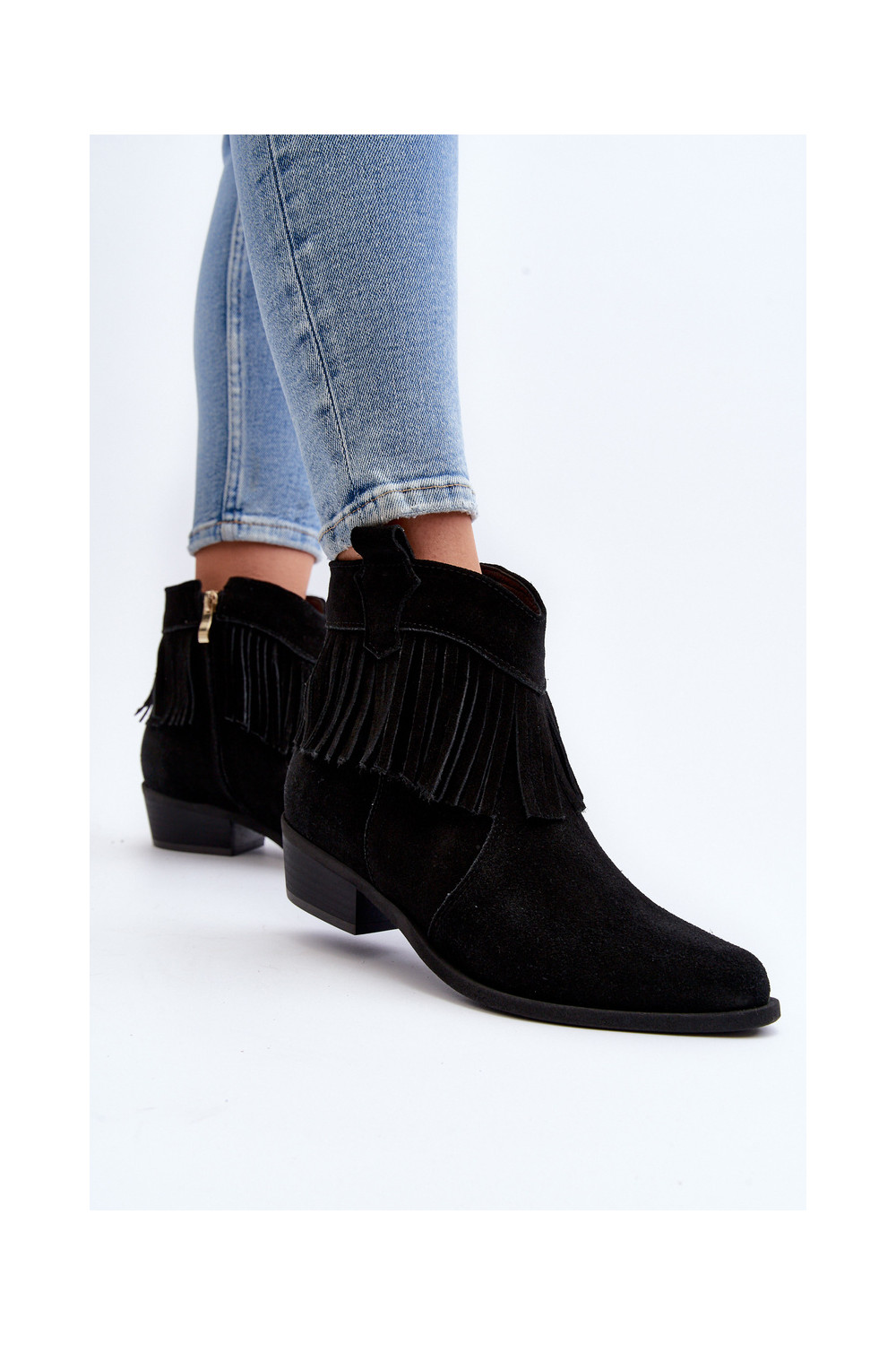 Zazoo 3430 sieviešu zamšādas zābaki ar pušķiem melnā krāsā