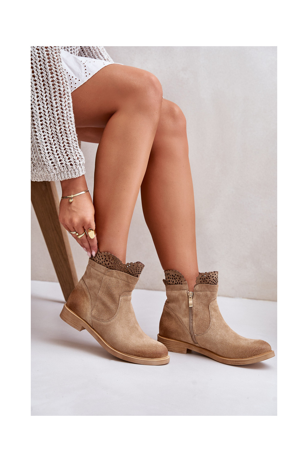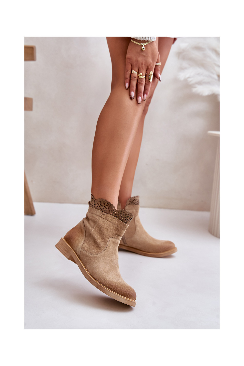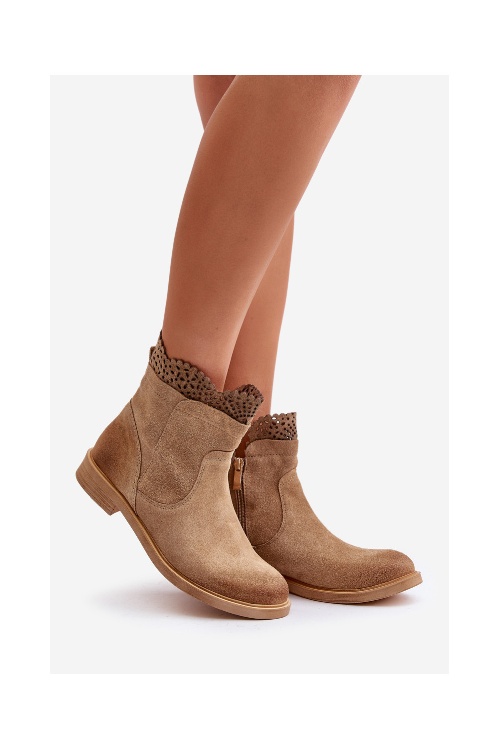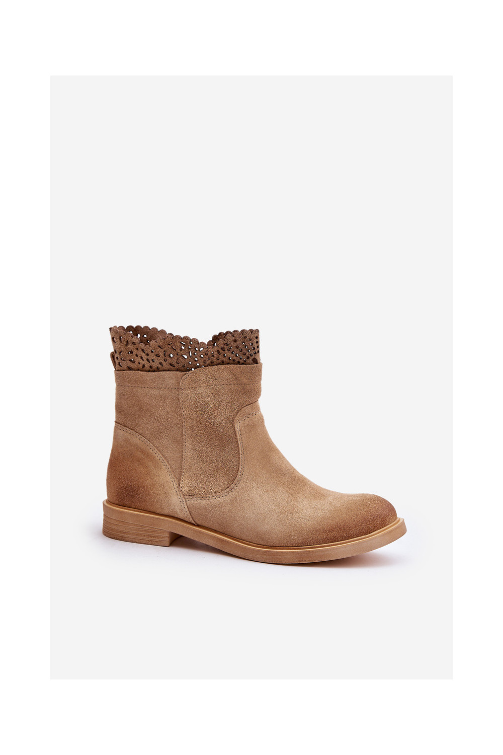 Zemi sieviešu zābaki ar platām papēžiem no zamšas smilšu krāsā LeĮskis 3624