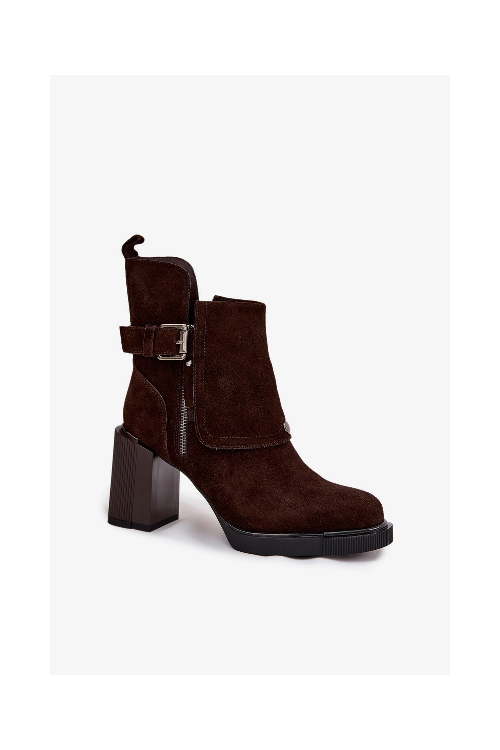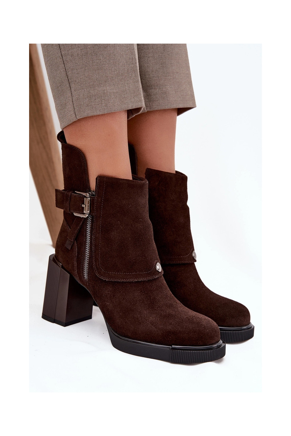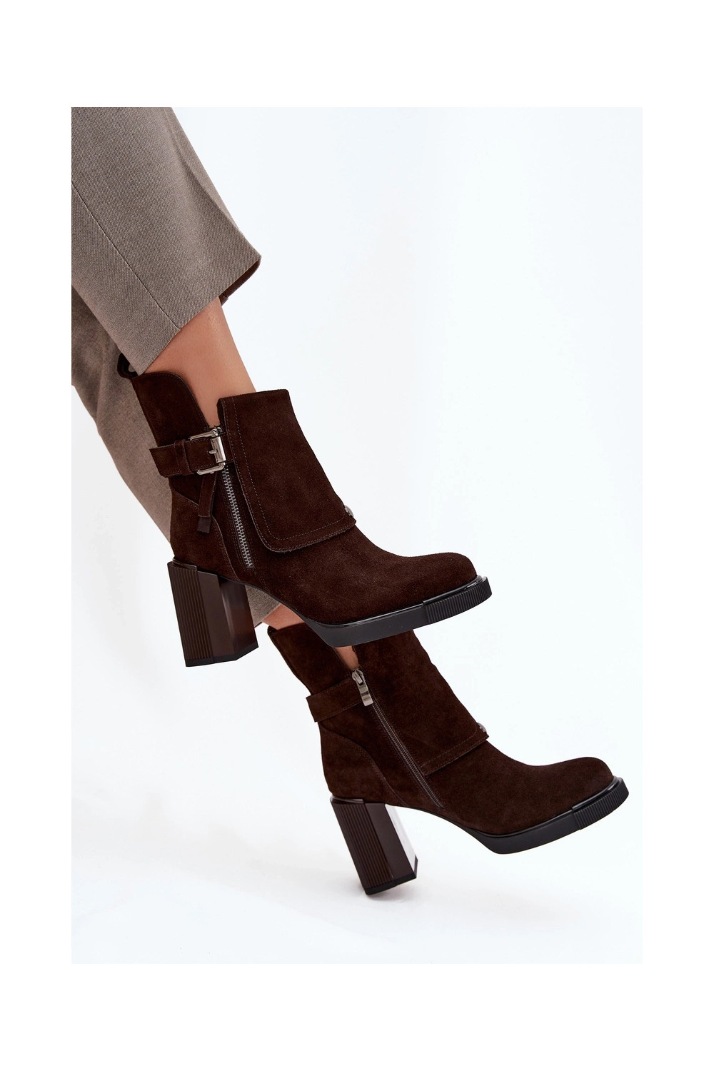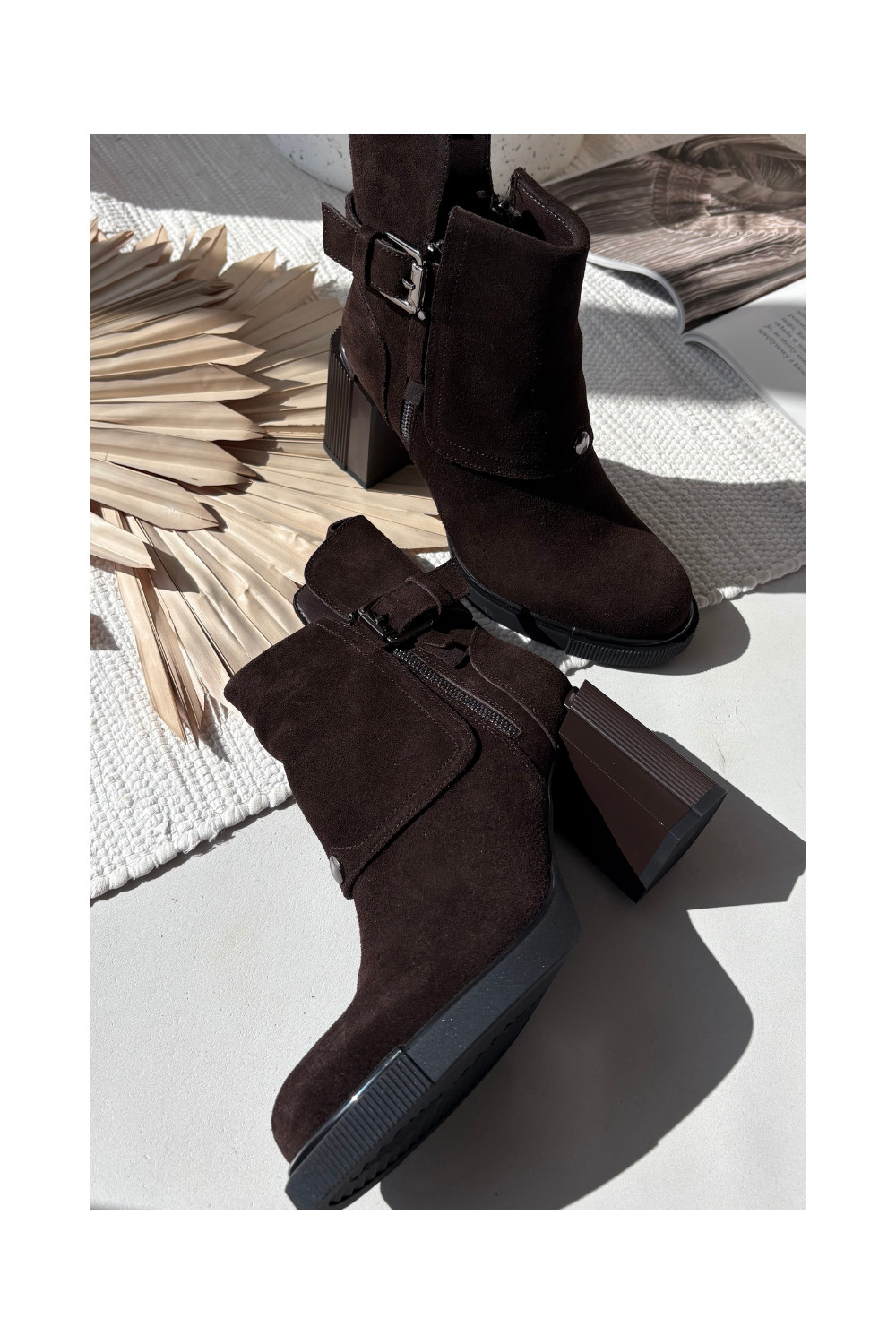 Zābaki no dabīgā zamšas ar papēžiem un sprādzēm, Vinceza 91152, šokolādes krāsā