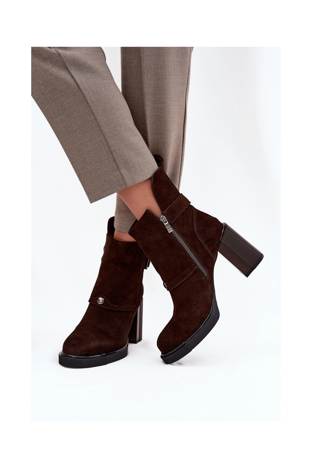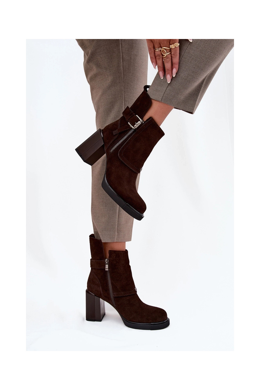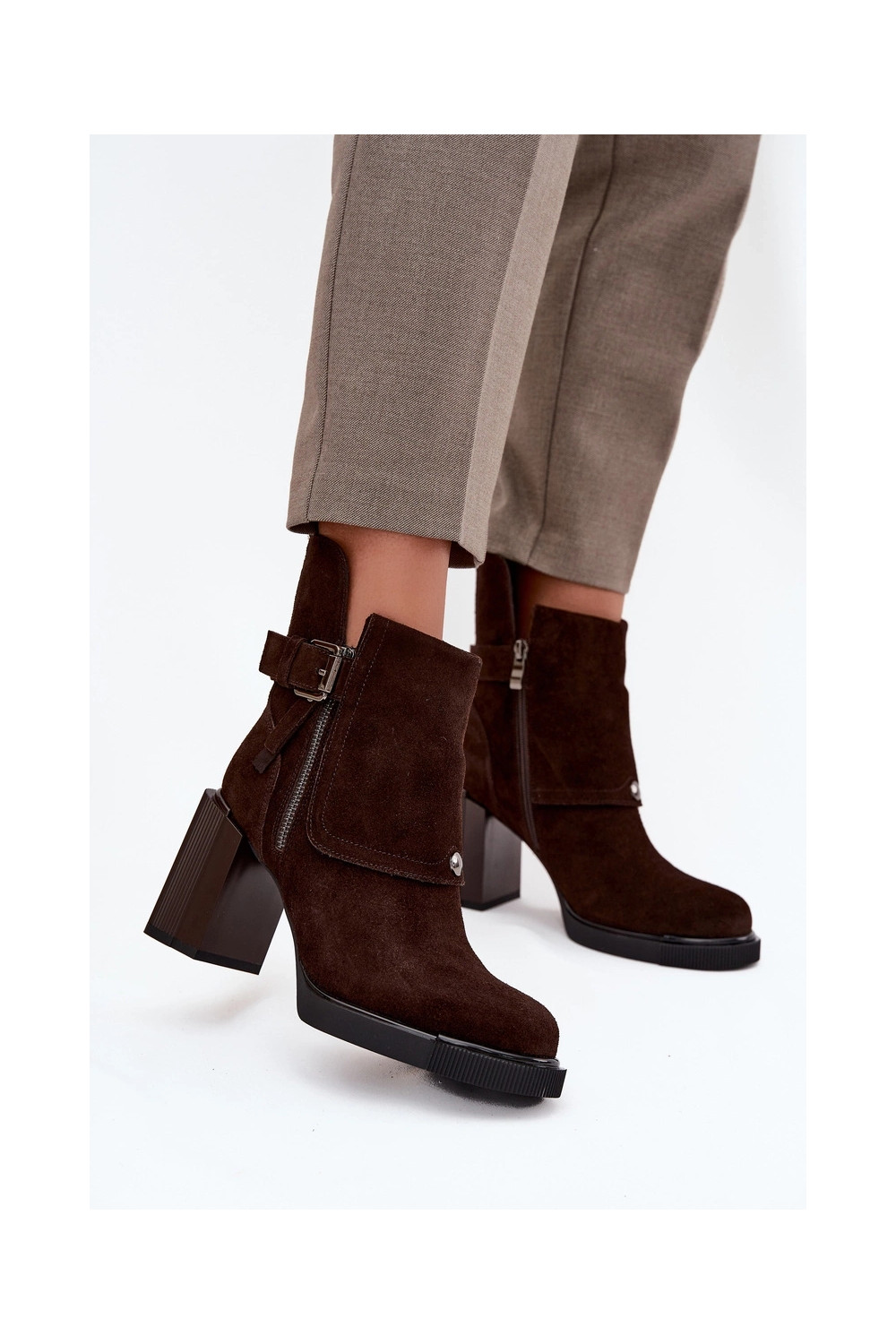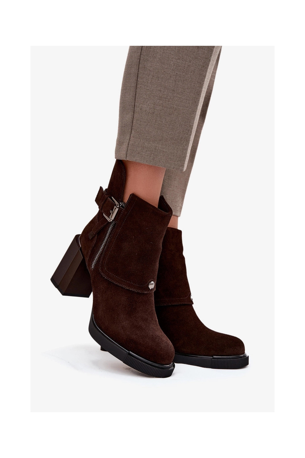 Zābaki no dabīgā zamšas ar papēžiem un sprādzēm, Vinceza 91152, šokolādes krāsā