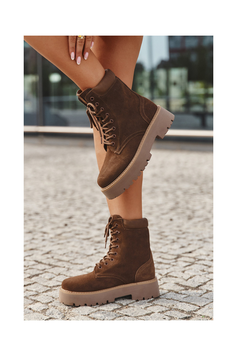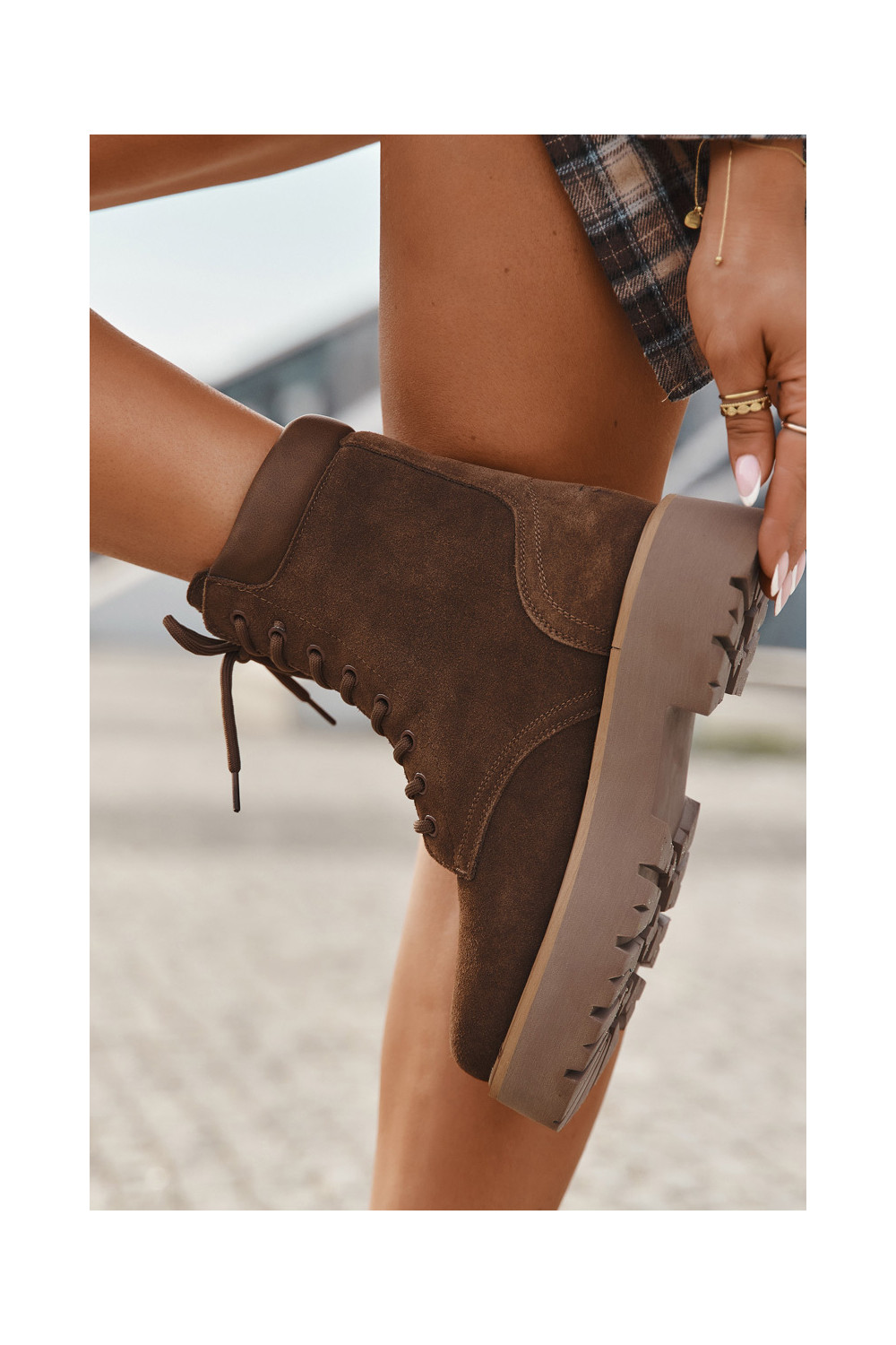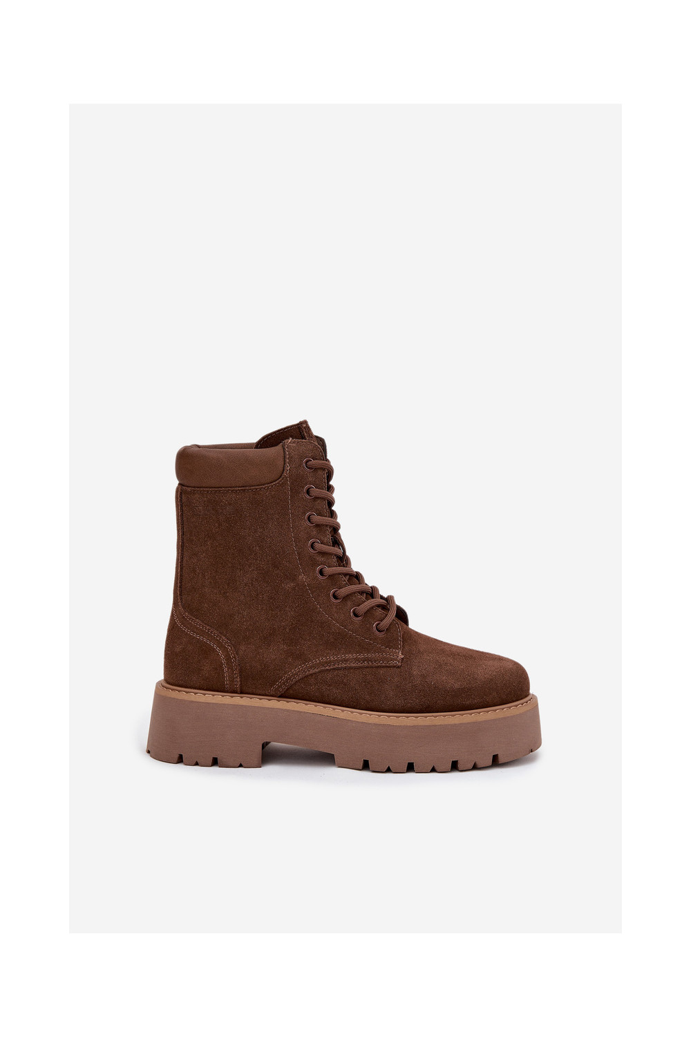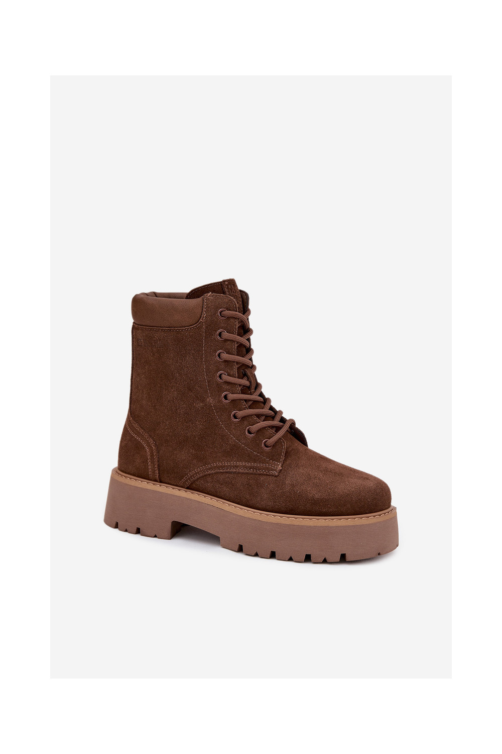 Zomšiniai sieviešu zābaki ar šņorēm Big Star SS274792 brūnā krāsā
