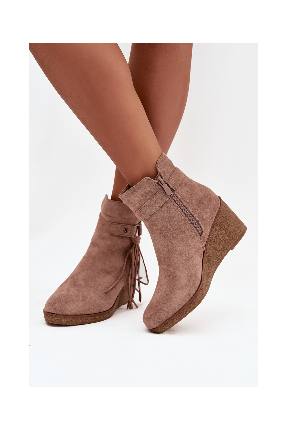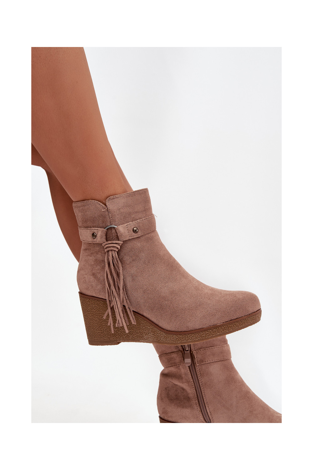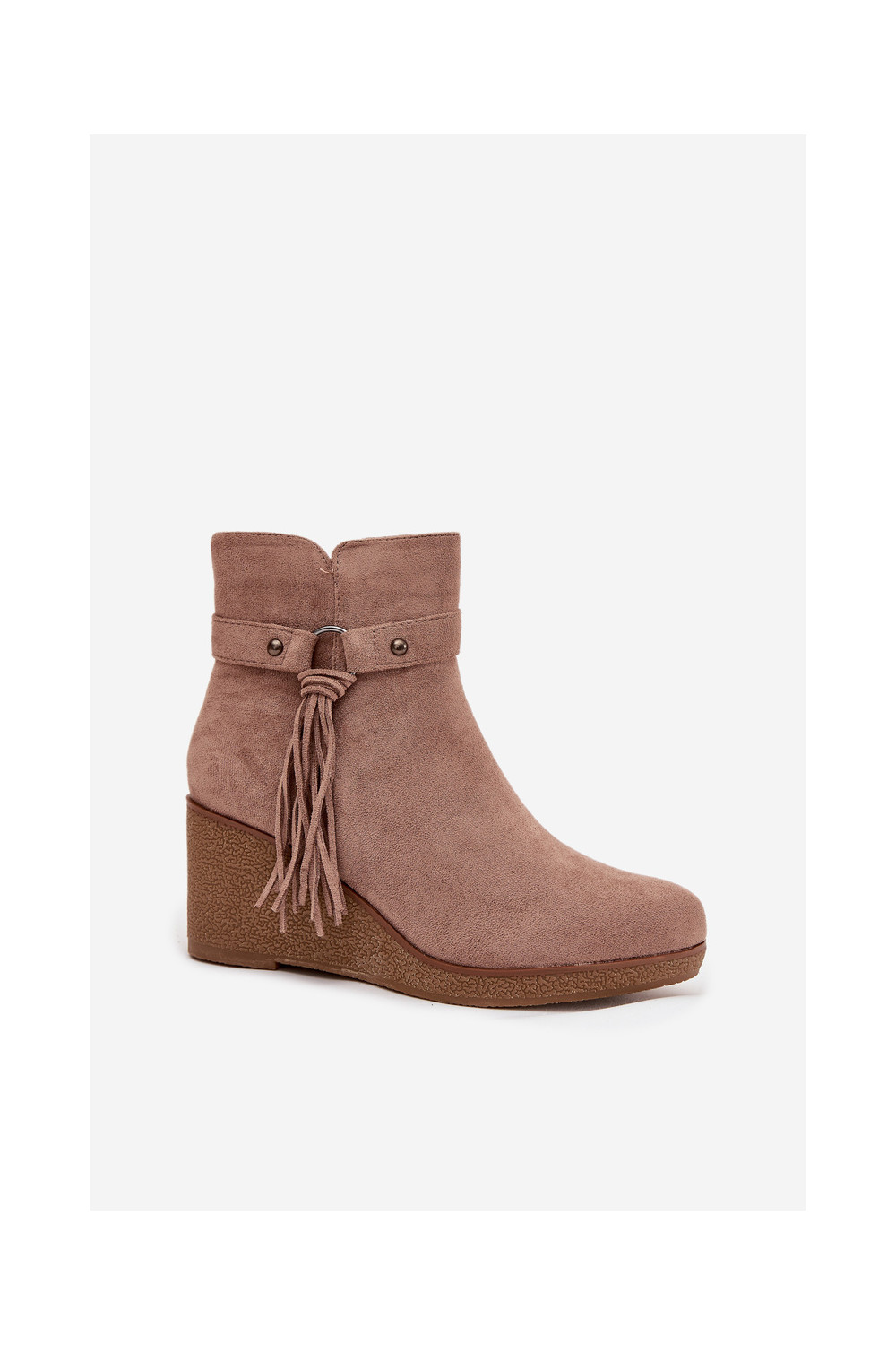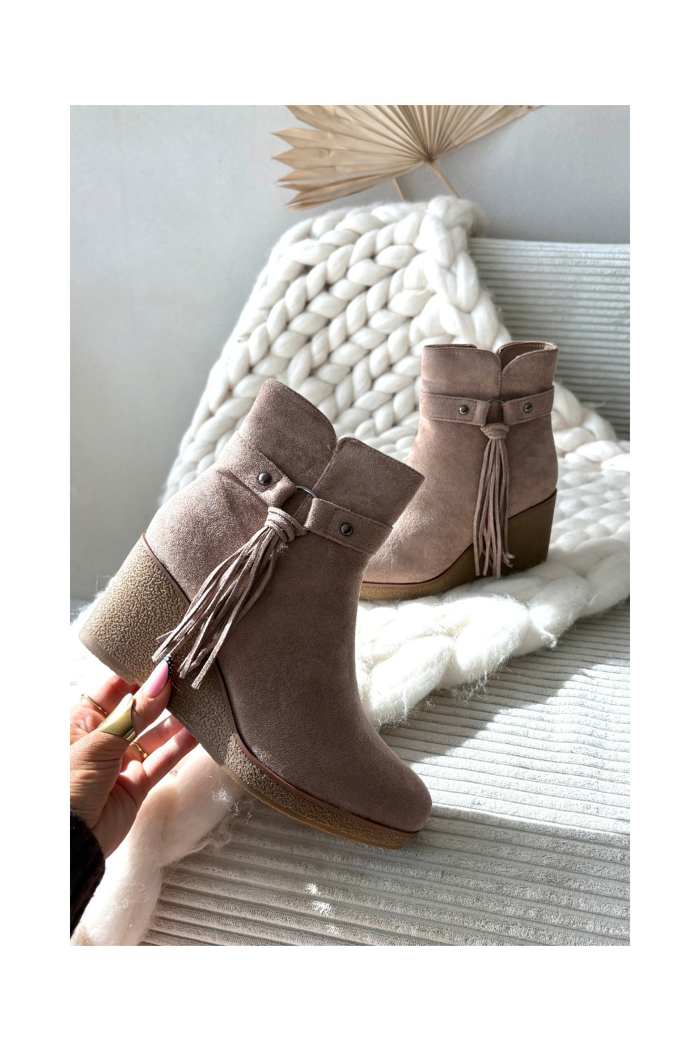siltināti Sieviešu puszābaki Uz Ķīļa ar bārkstīm smilšu krāsas Olivarae
