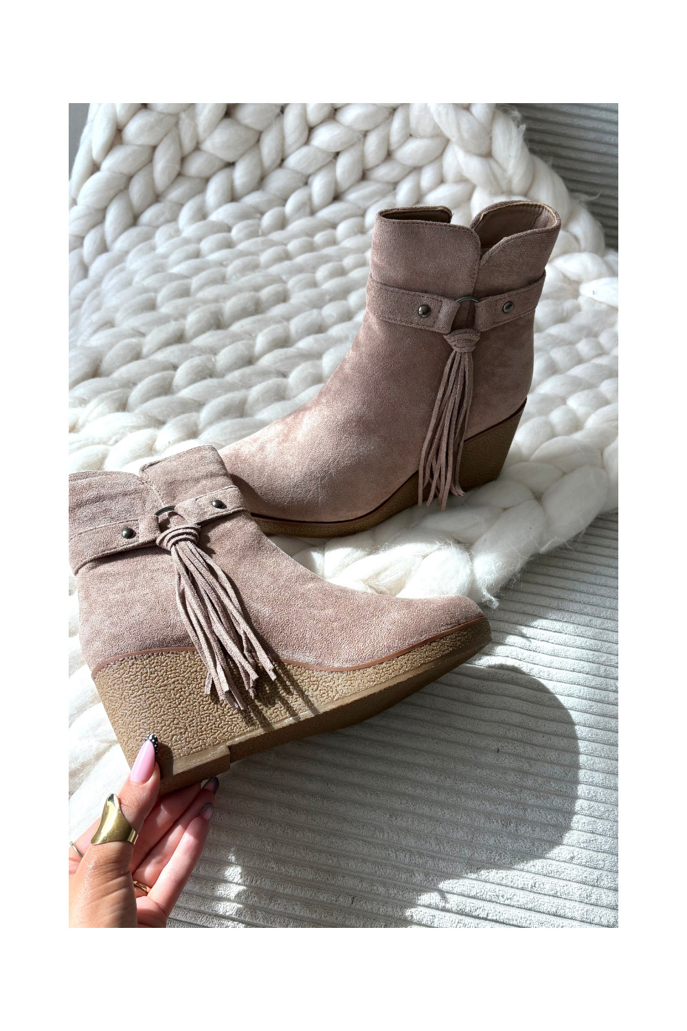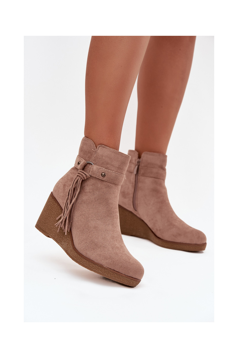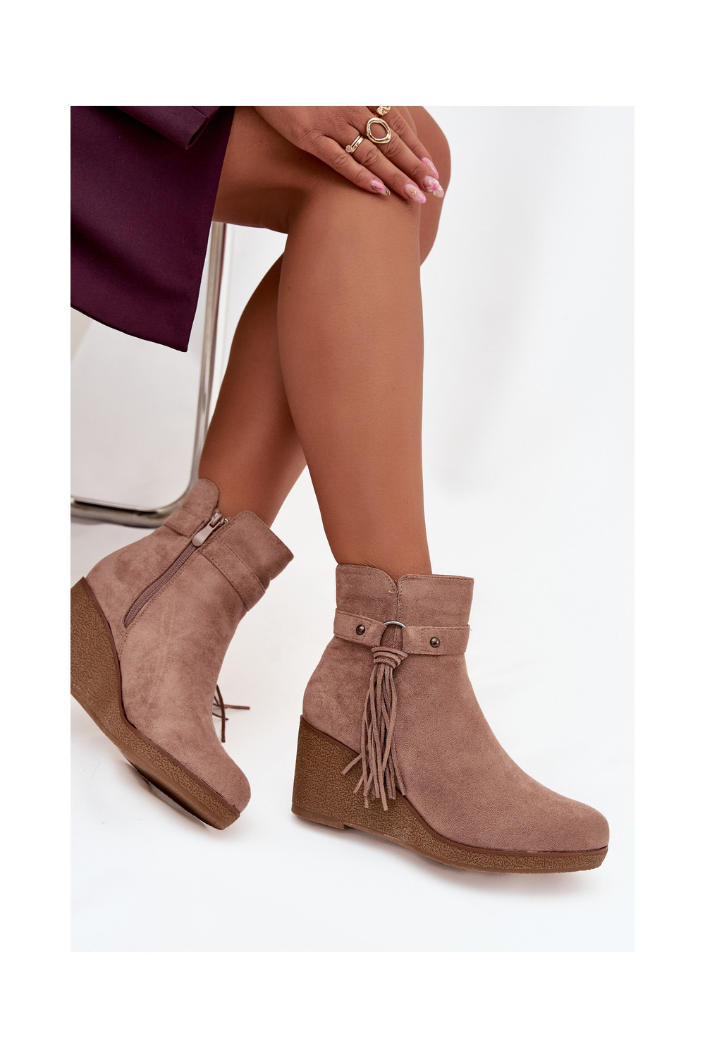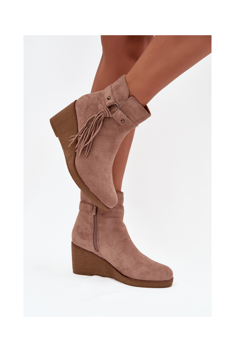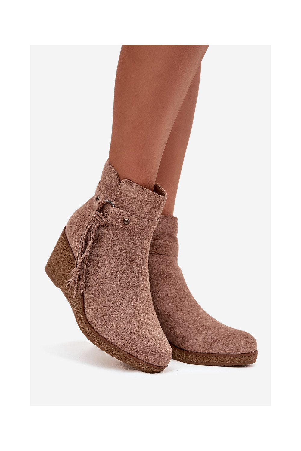siltināti Sieviešu puszābaki Uz Ķīļa ar bārkstīm smilšu krāsas Olivarae