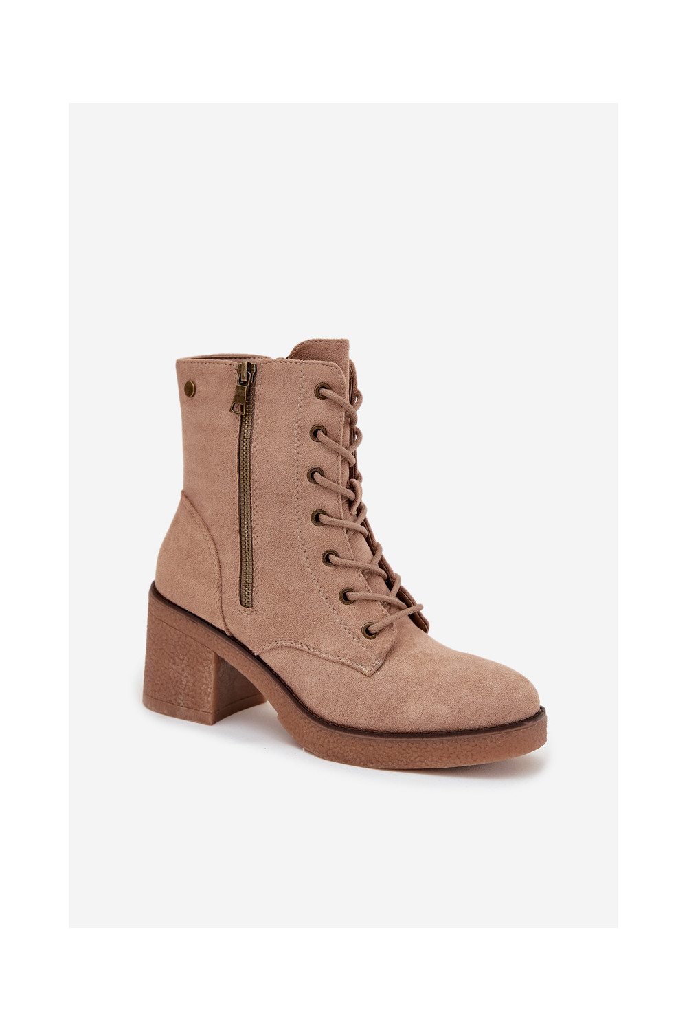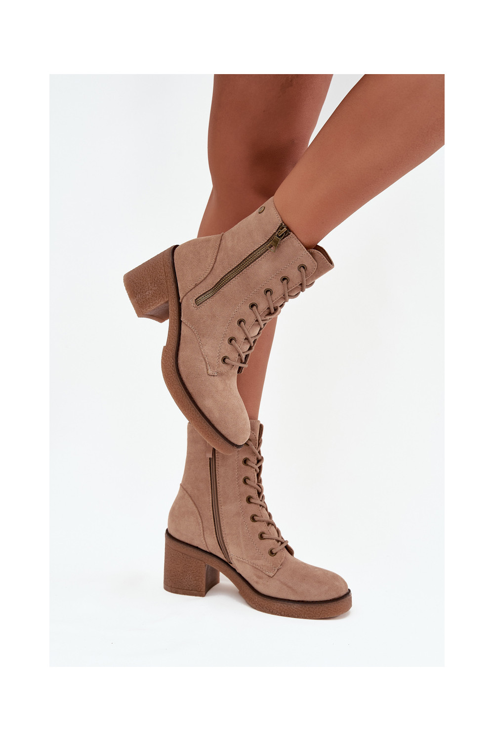 LOVED sieviešu zābaki. Mežģīņu zābaki no zamšādas imitācijas ir ideāls piedāvājums šai sezonai! Tie ir uz biezas zoles. Modelis nav siltināts. Ideāli piemēroti rudens un ziemas stilam.