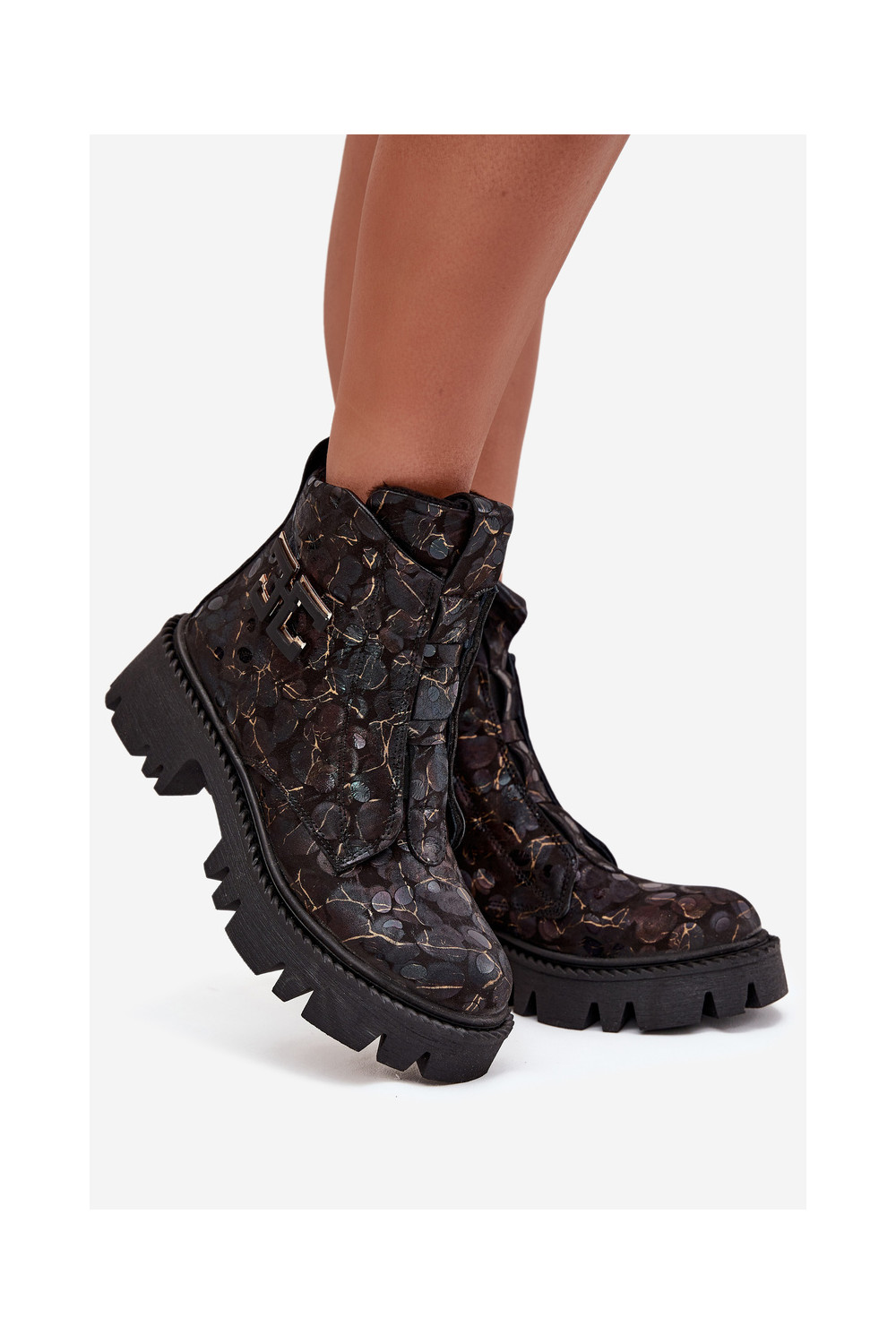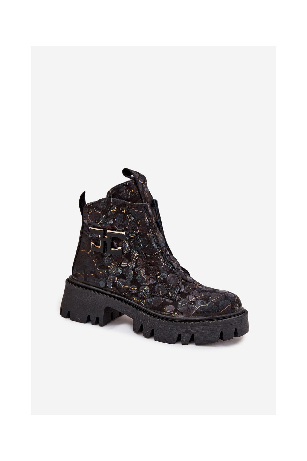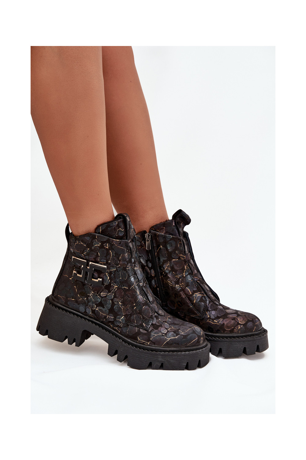 Melnas un zelta krāsas ādas siltie sieviešu zābaki ar ornamentiem Artiker 57C2084