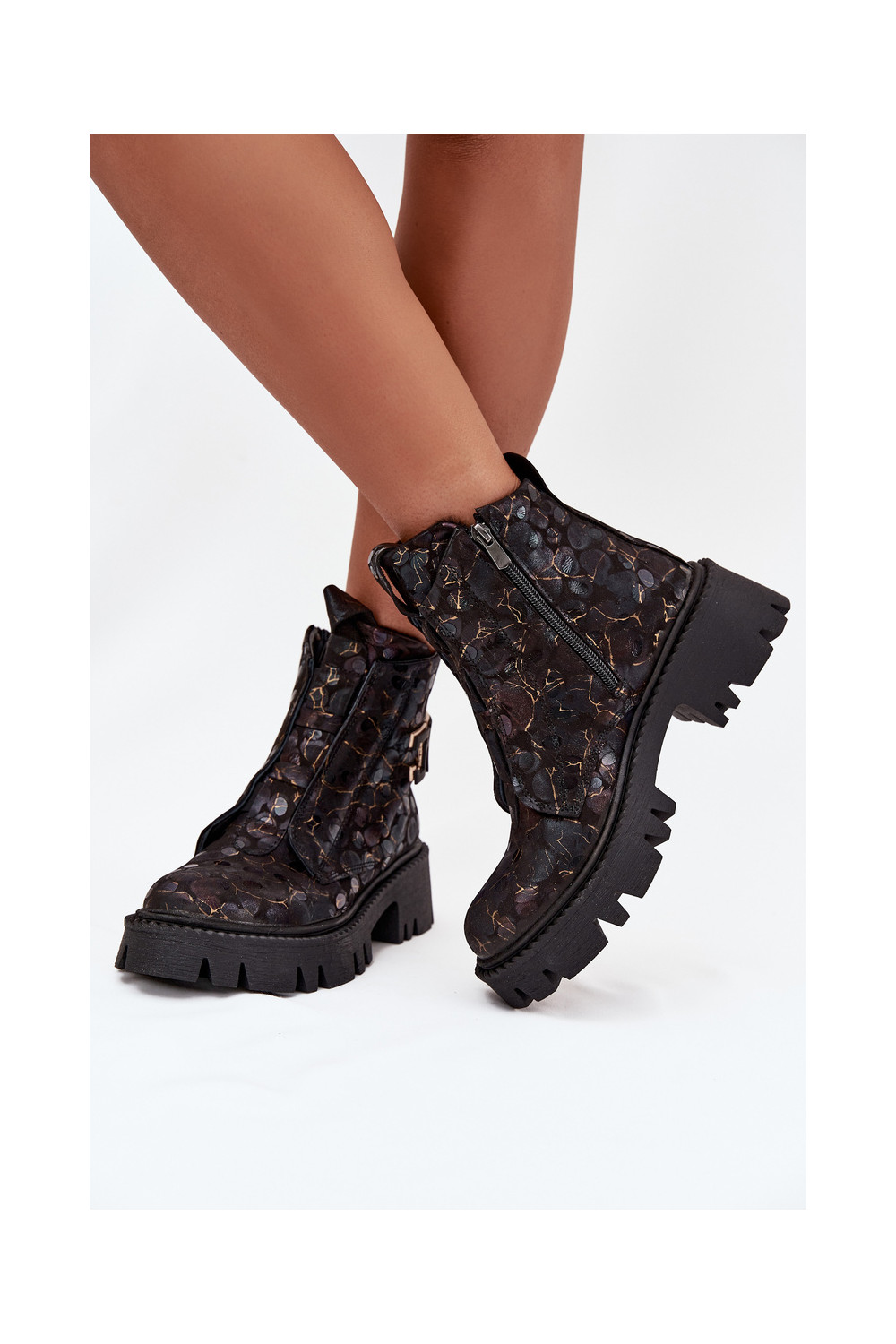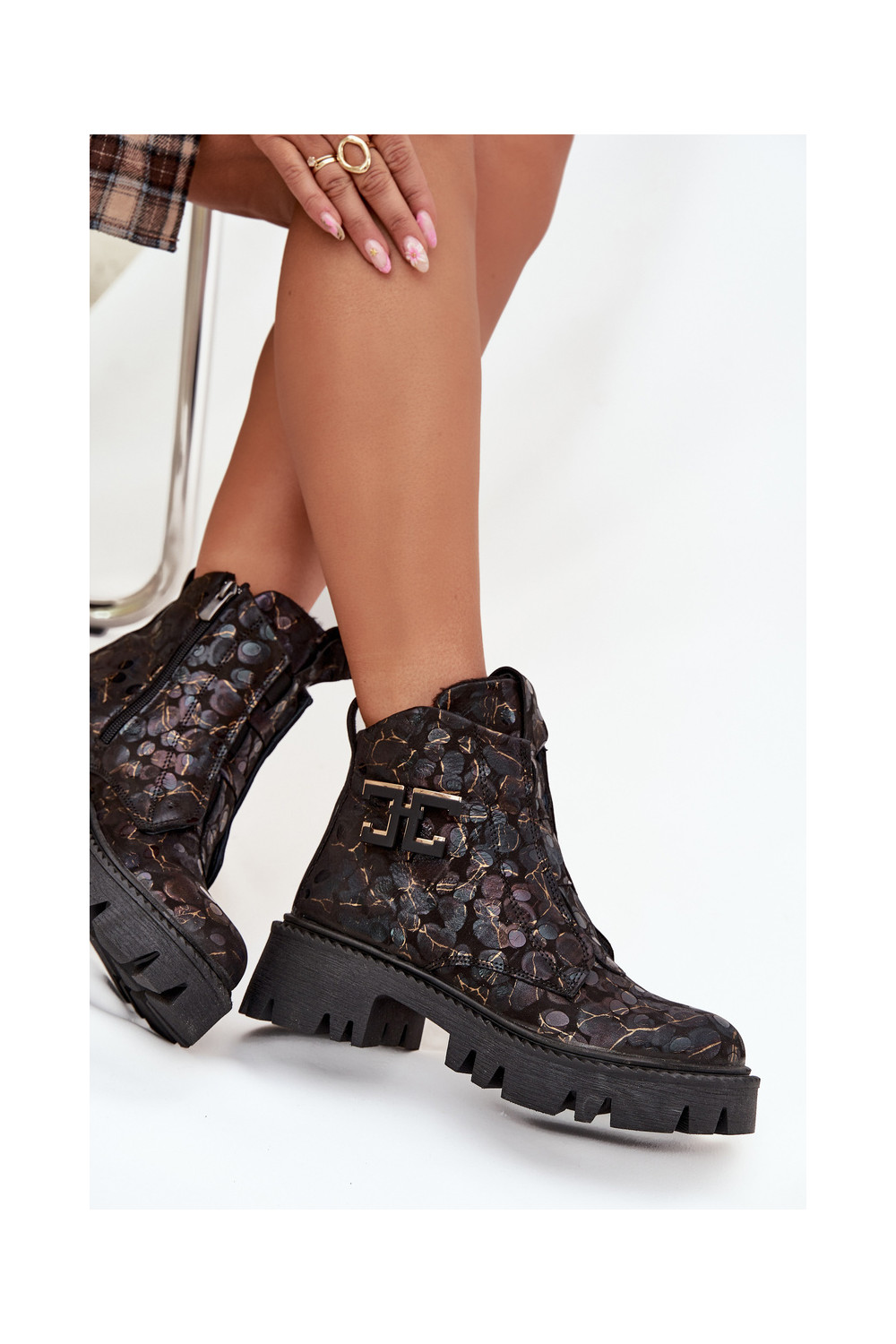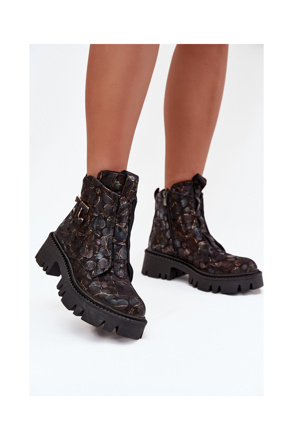 Melnas un zelta krāsas ādas siltie sieviešu zābaki ar ornamentiem Artiker 57C2084
