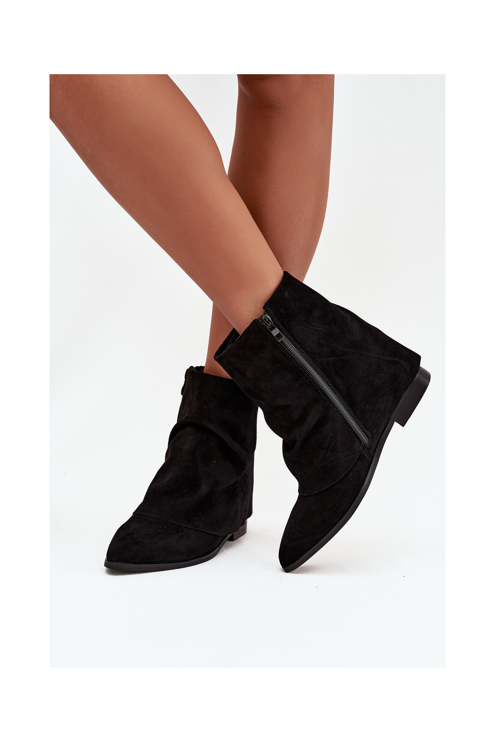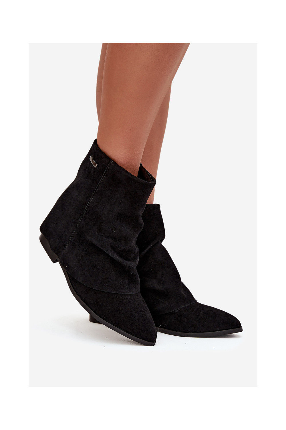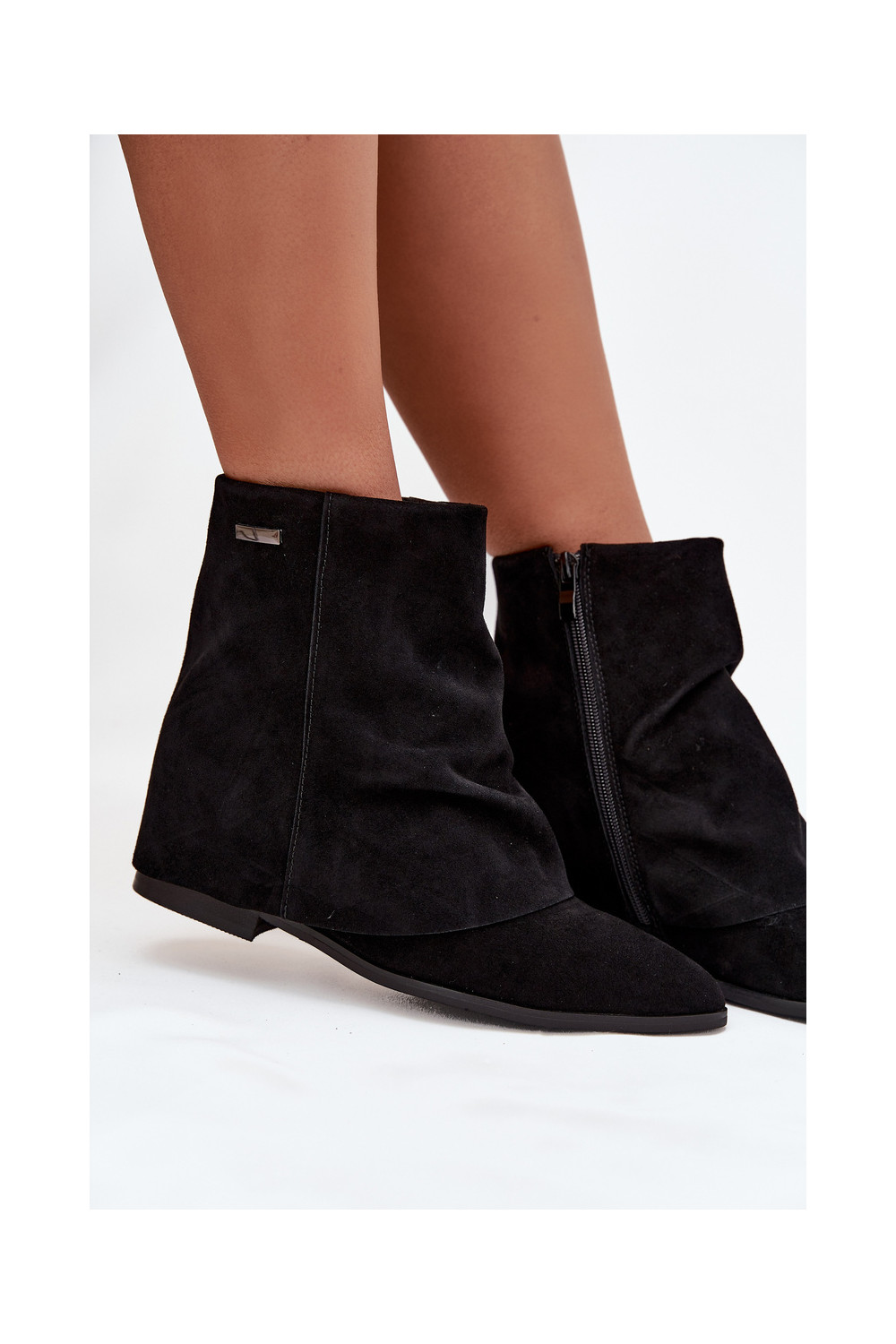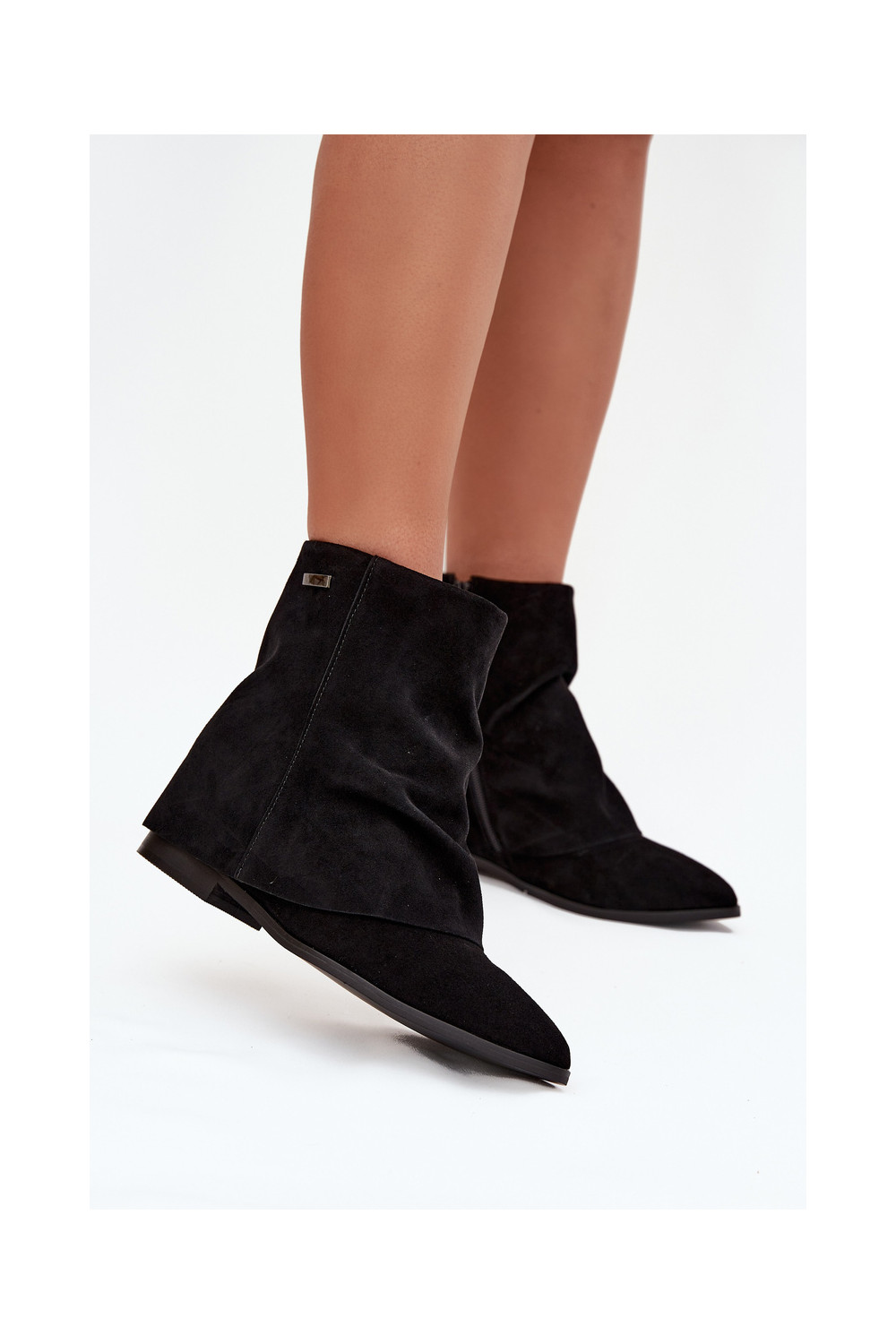 Melnas krāsas siltie zābaki ar slēptu mežģīti no eko zamša Tavella