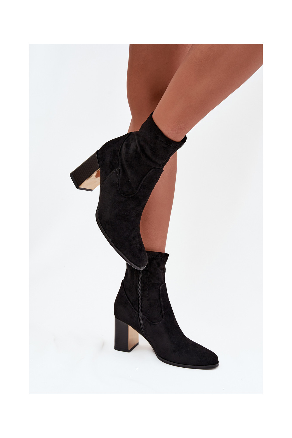 Melnas krāsas sieviešu zābaki ar zelta krāsas elementu, siltie Amelisse