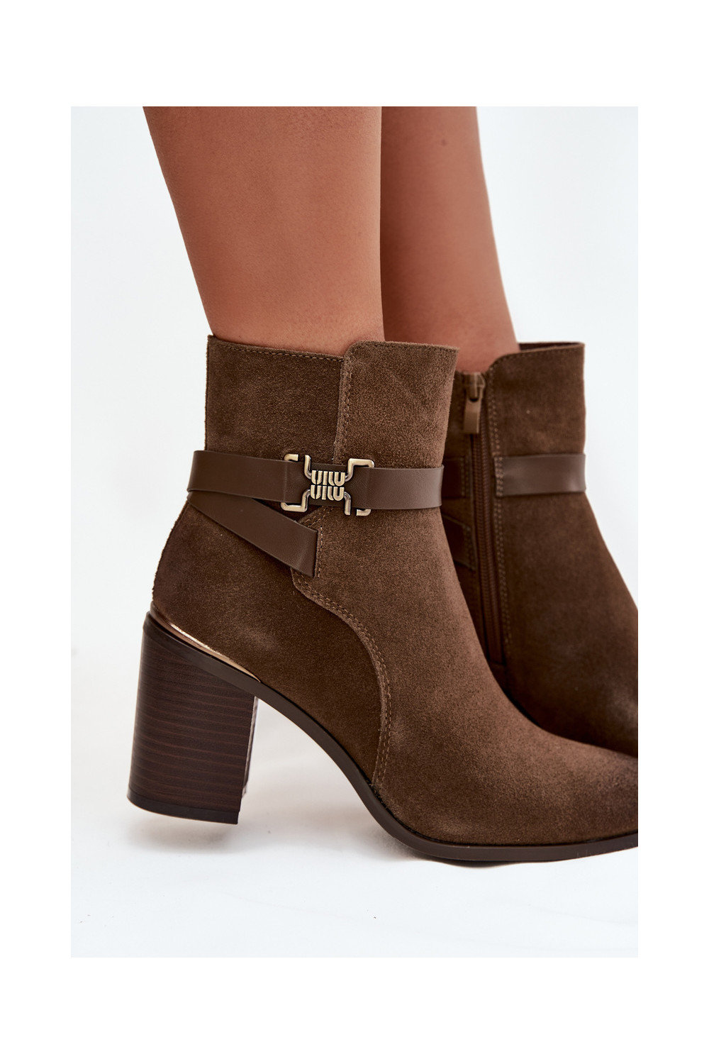 Haki krāsas sieviešu siltie zamša zābaki ar papēžiem no dabīgās ādas Sergio Leone BT25384-S