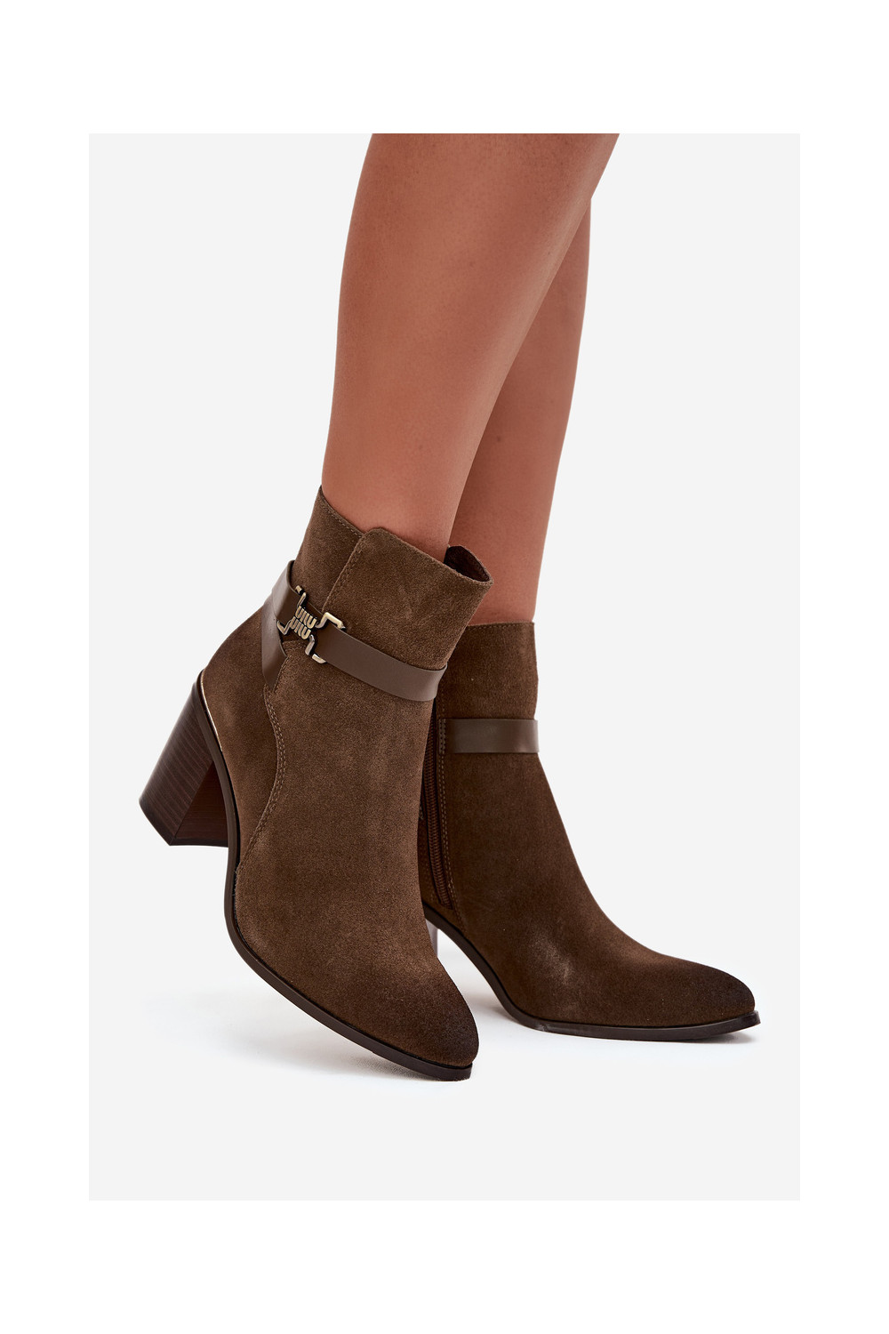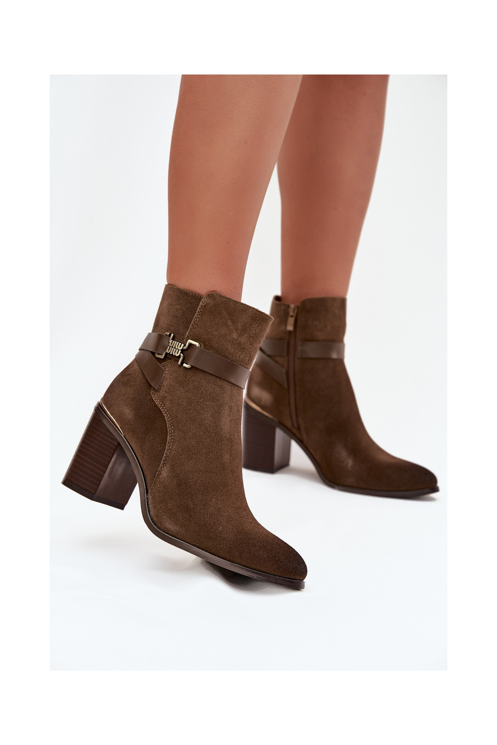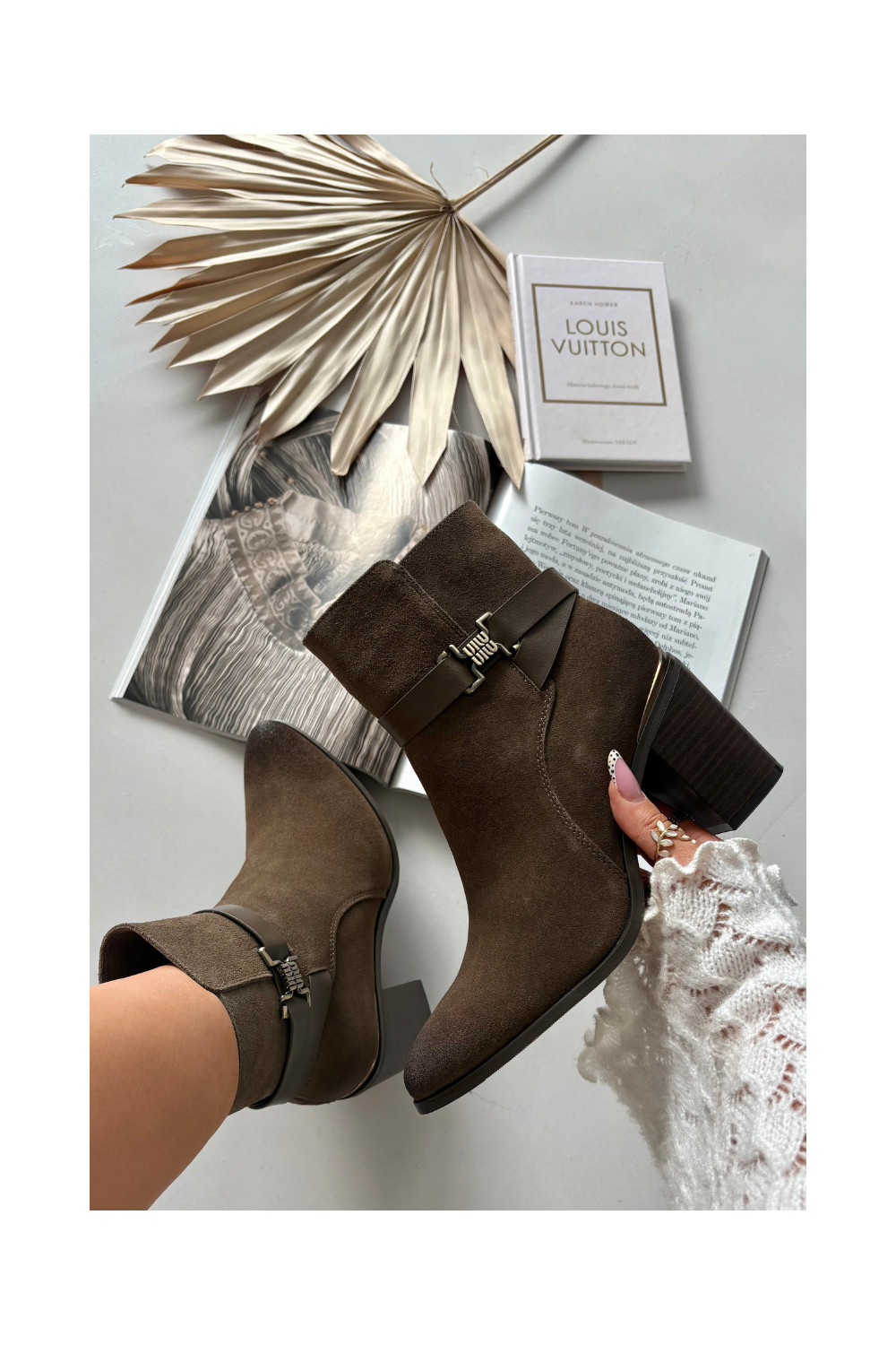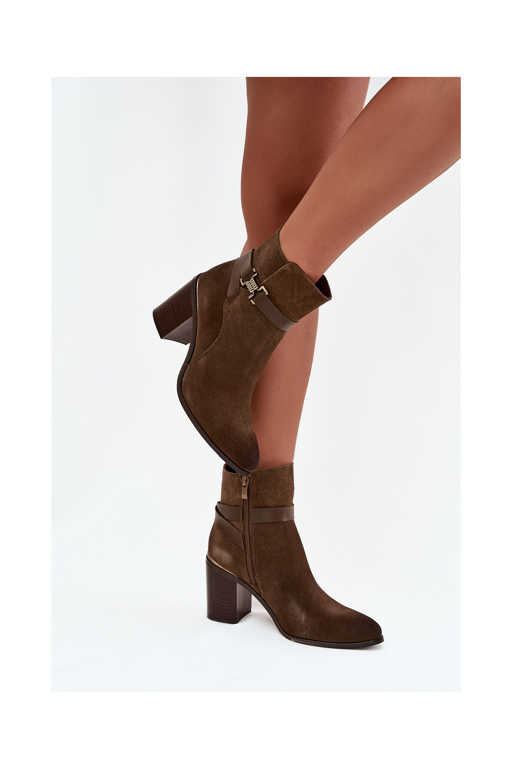 Haki krāsas sieviešu siltie zamša zābaki ar papēžiem no dabīgās ādas Sergio Leone BT25384-S