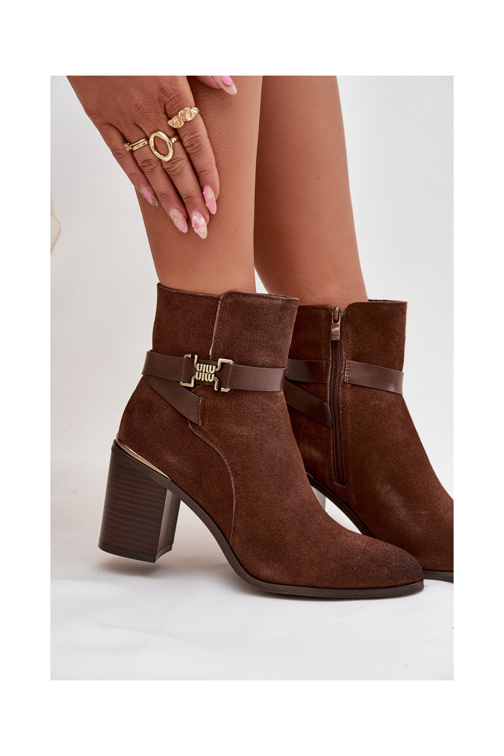 Brūnas krāsas sieviešu siltie zamša zābaki ar papēžiem no dabīgās ādas Sergio Leone BT25384-S