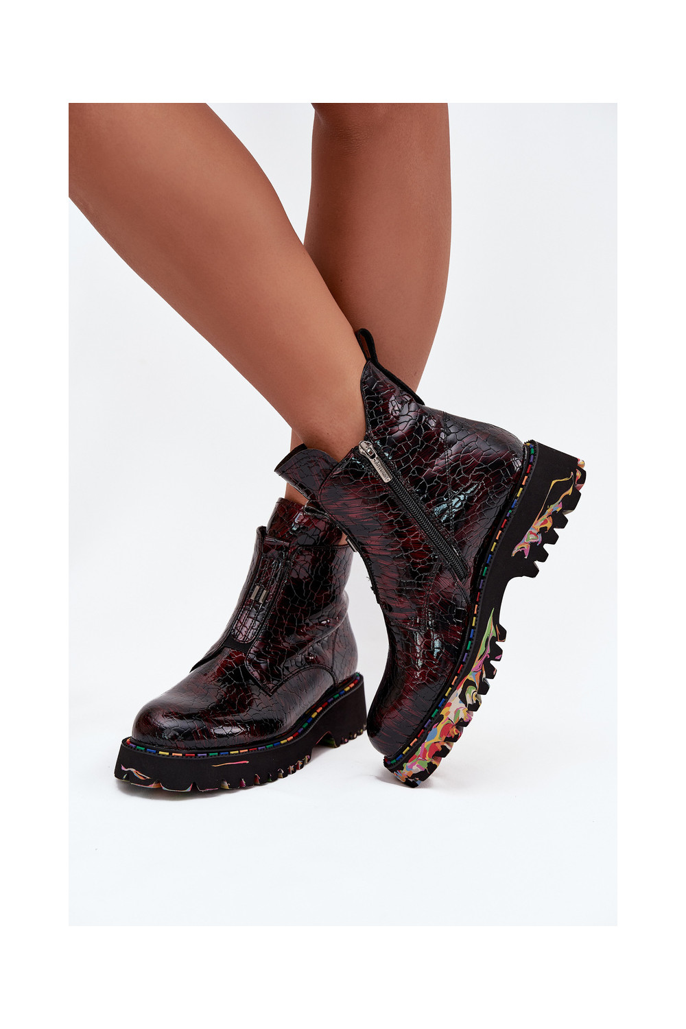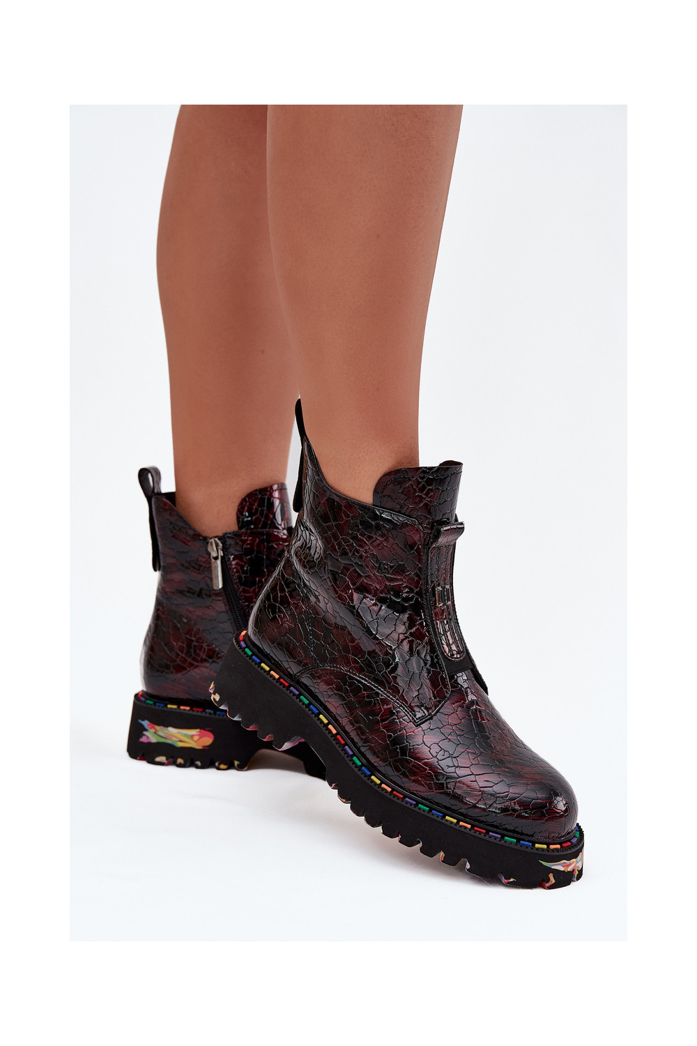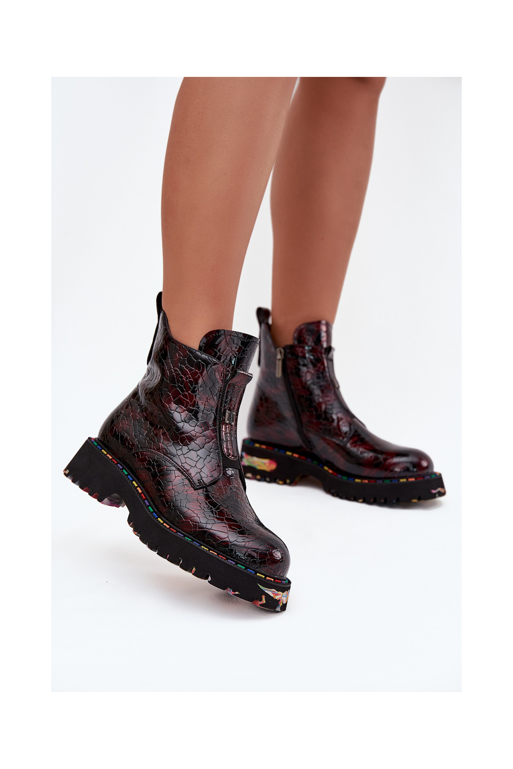 Siltināti sieviešu zābaki no dabīgās ādas ar lakota efekta Artiker 57C0165 bordo krāsā