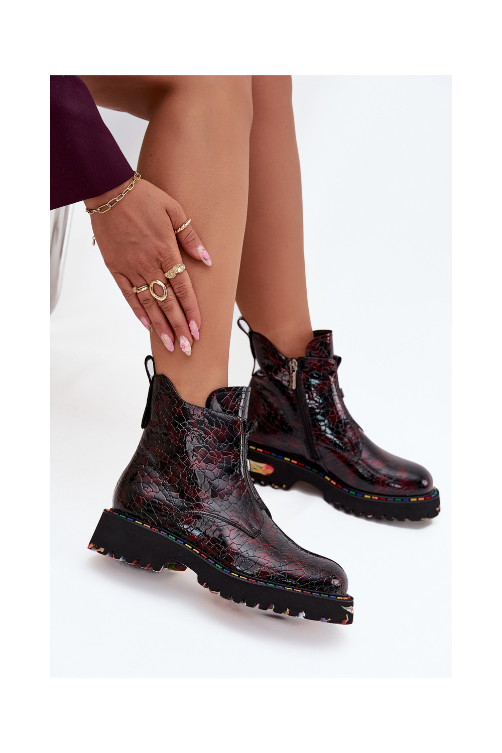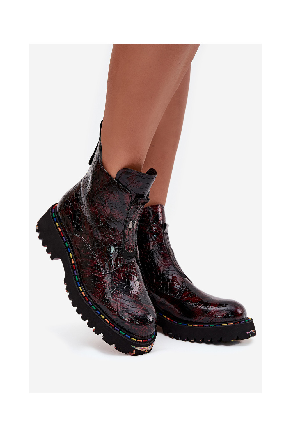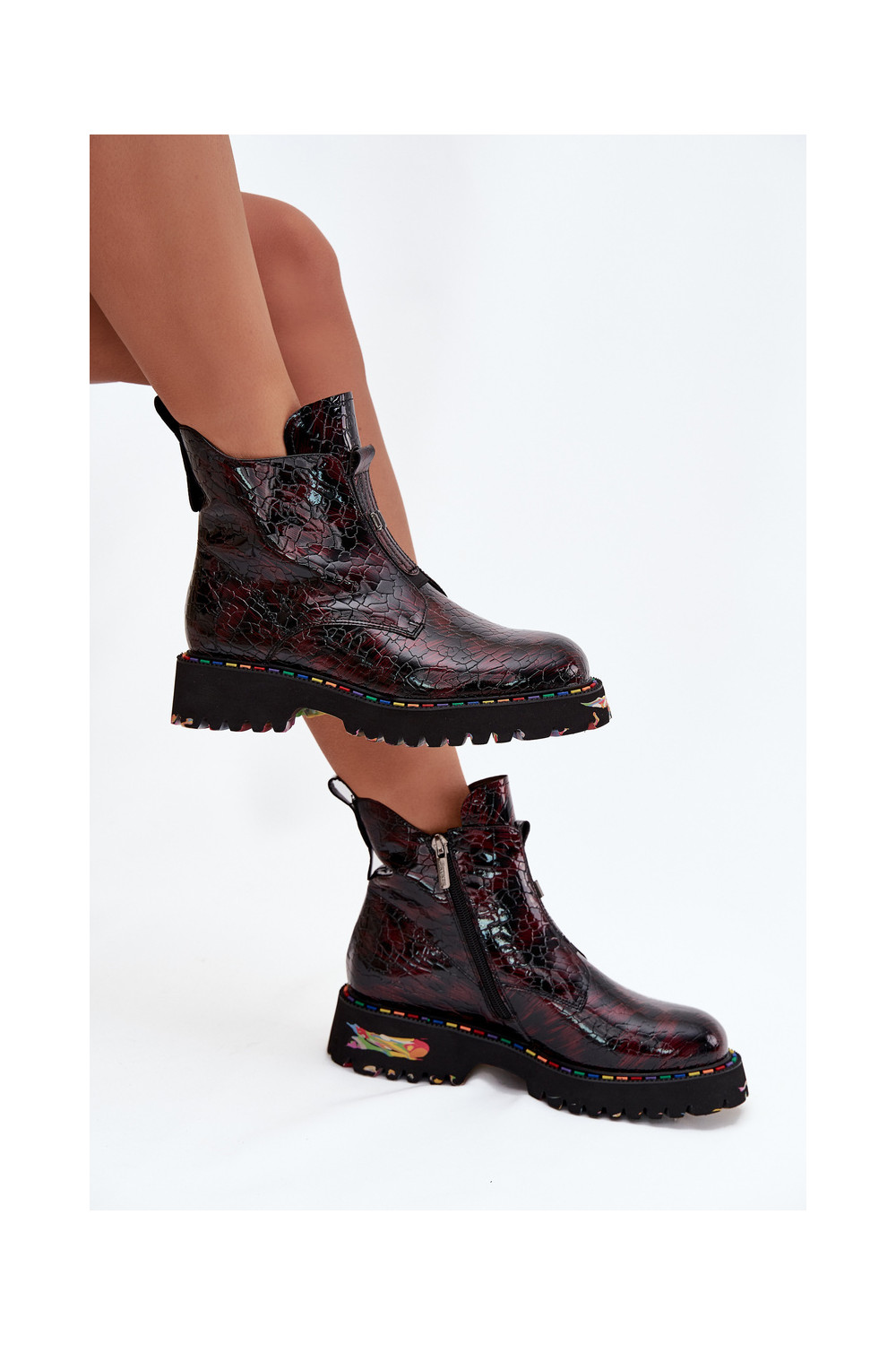 Siltināti sieviešu zābaki no dabīgās ādas ar lakota efekta Artiker 57C0165 bordo krāsā