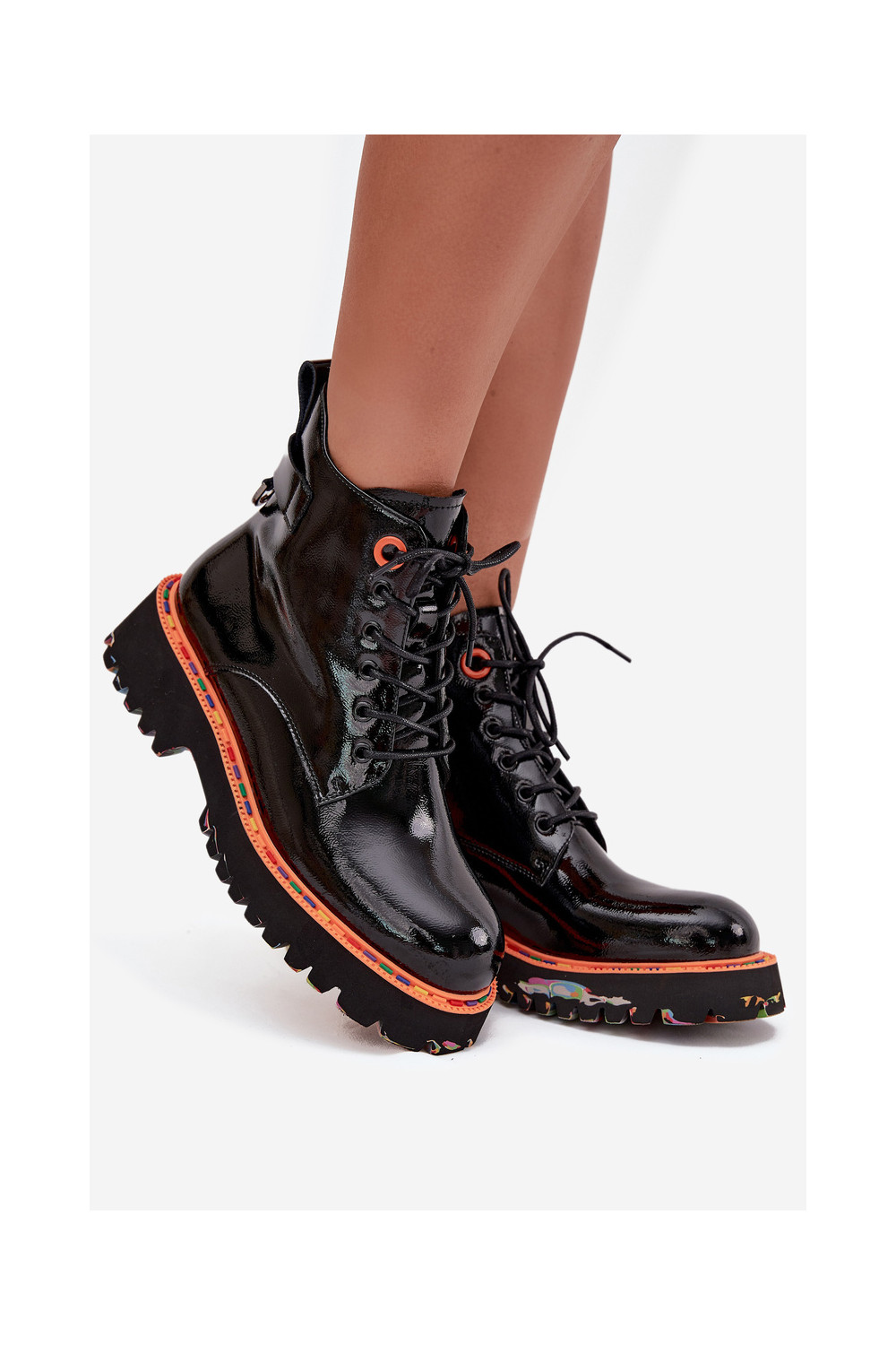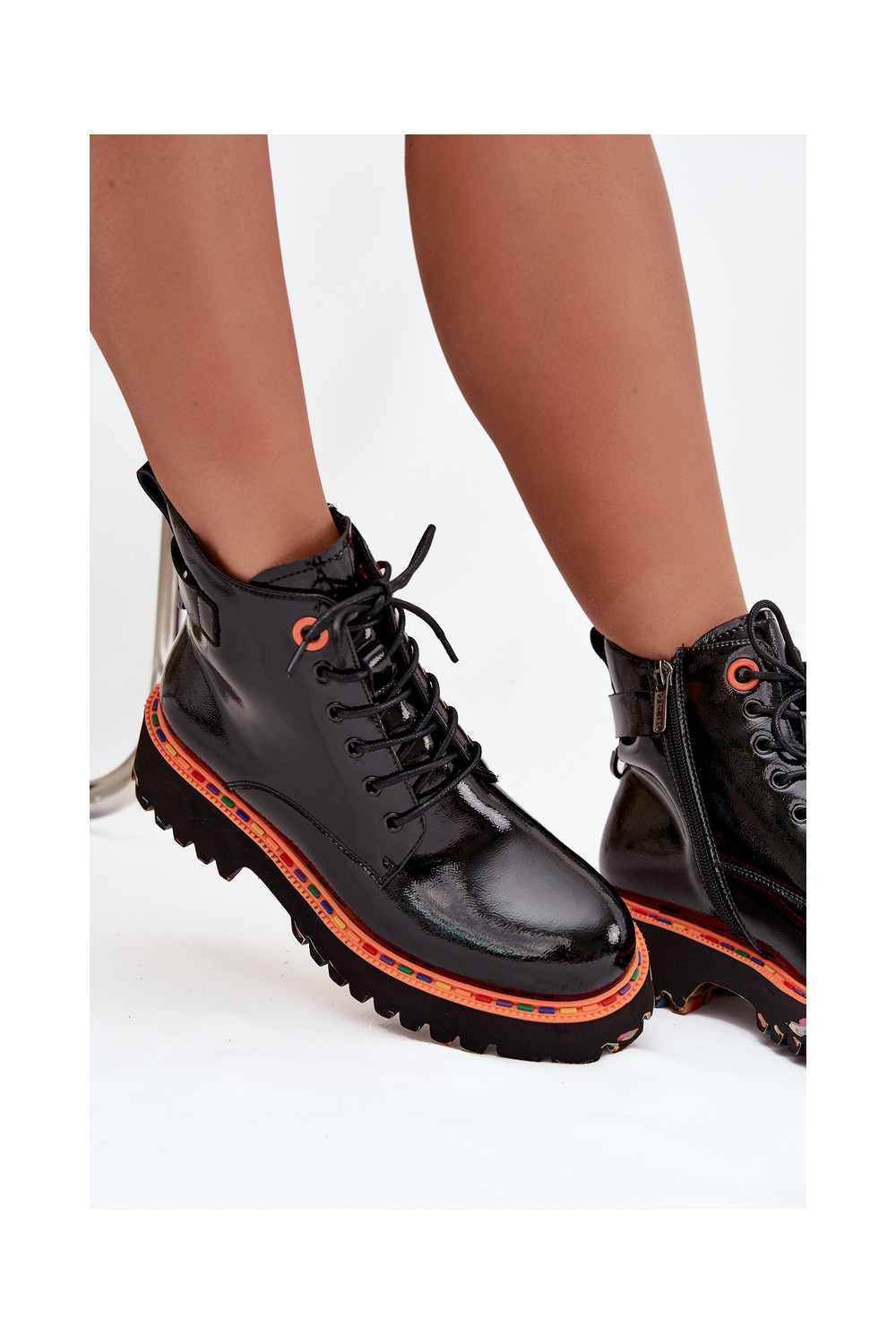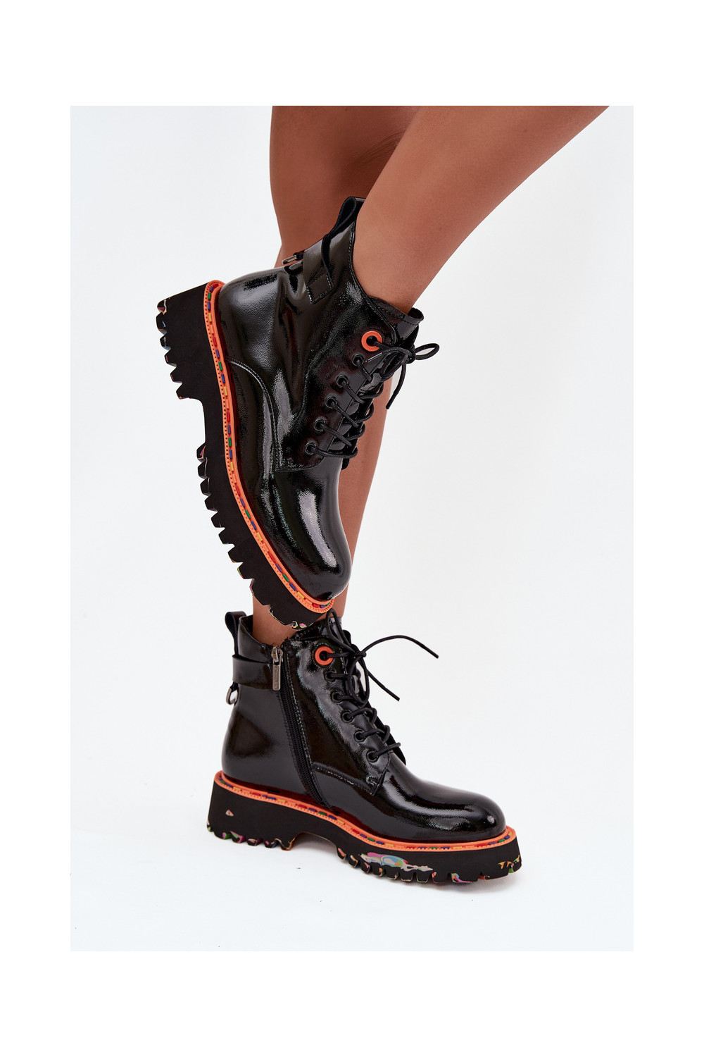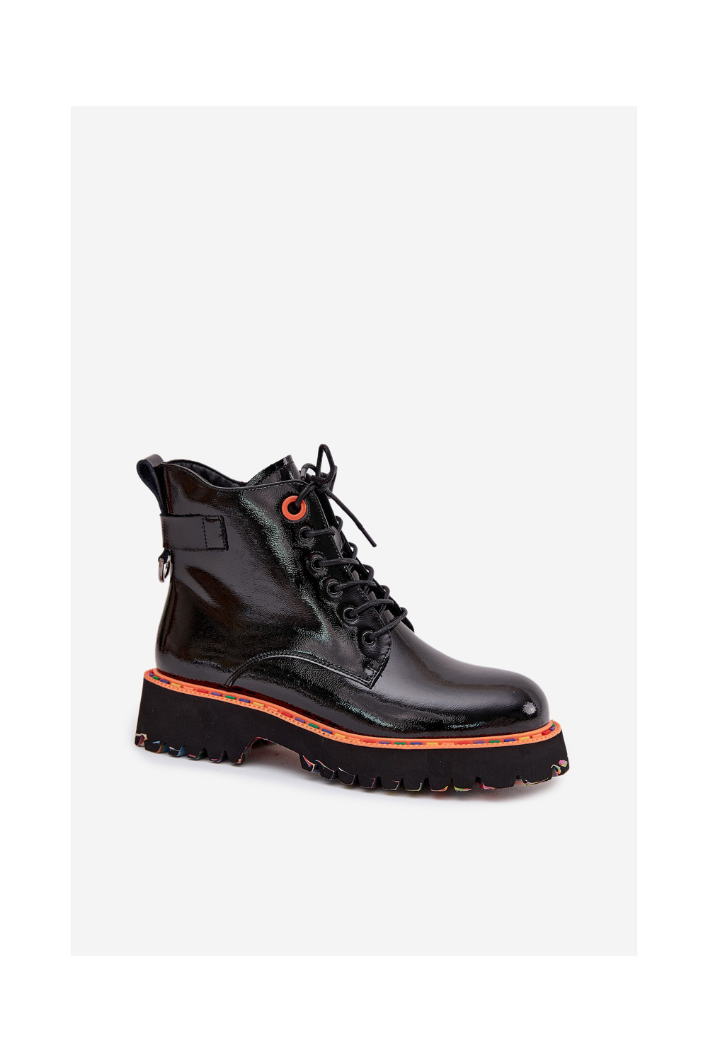 Siltināti sieviešu zābaki no dabīgās lakuotas ādas Artiker 57C0061 melnā krāsā