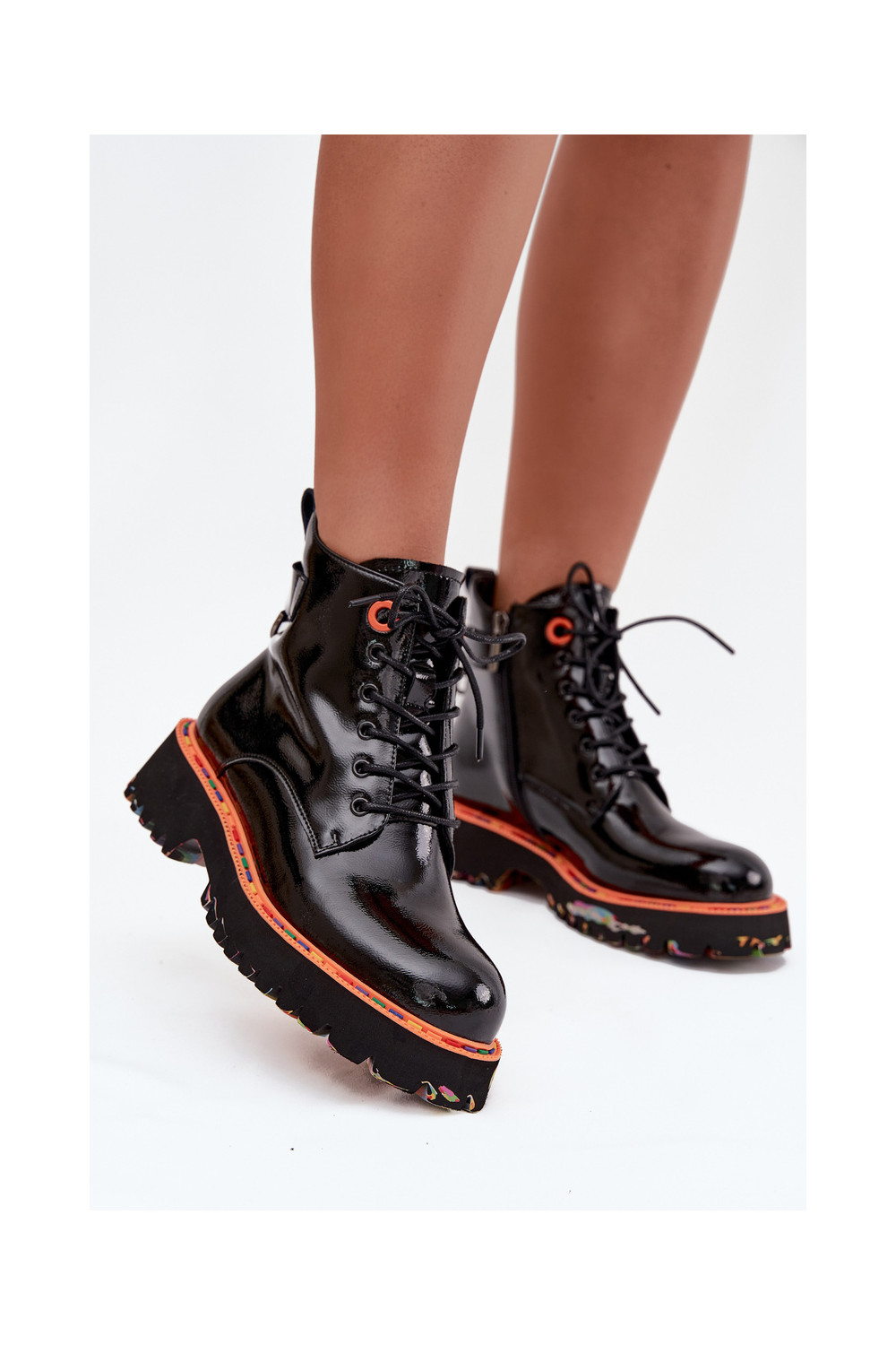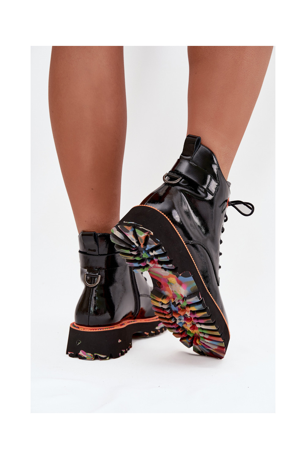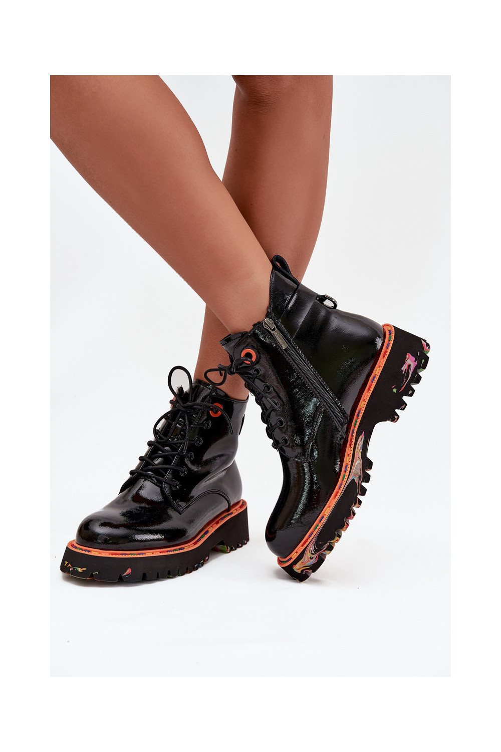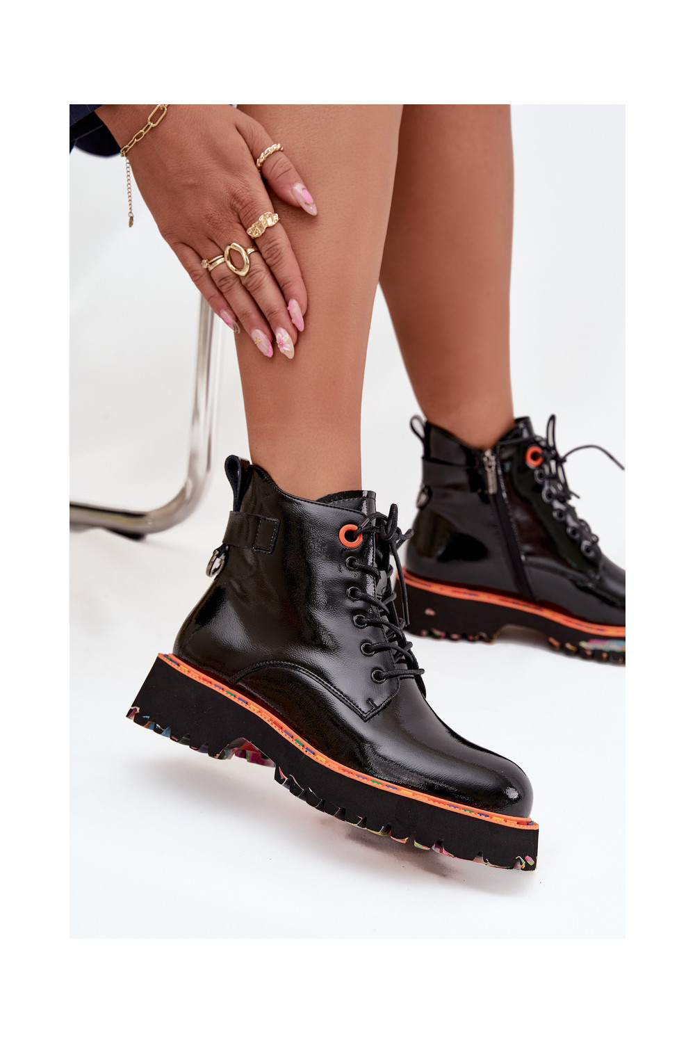 Siltināti sieviešu zābaki no dabīgās lakuotas ādas Artiker 57C0061 melnā krāsā
