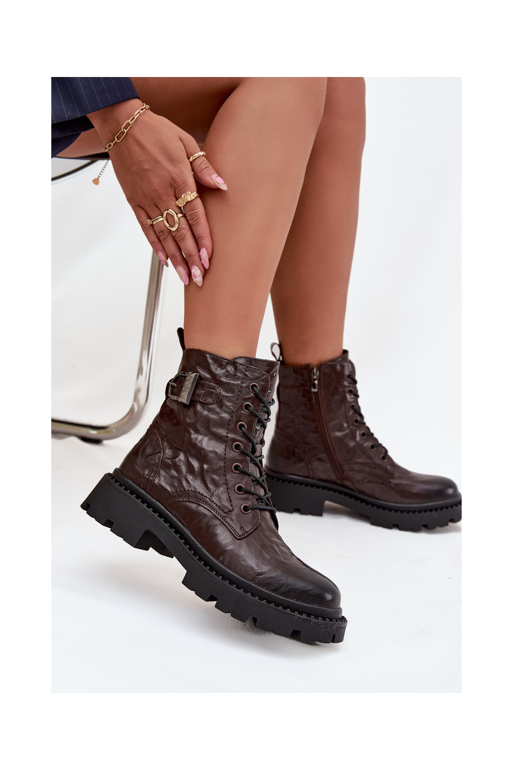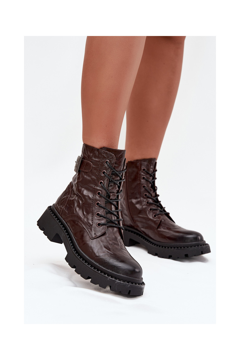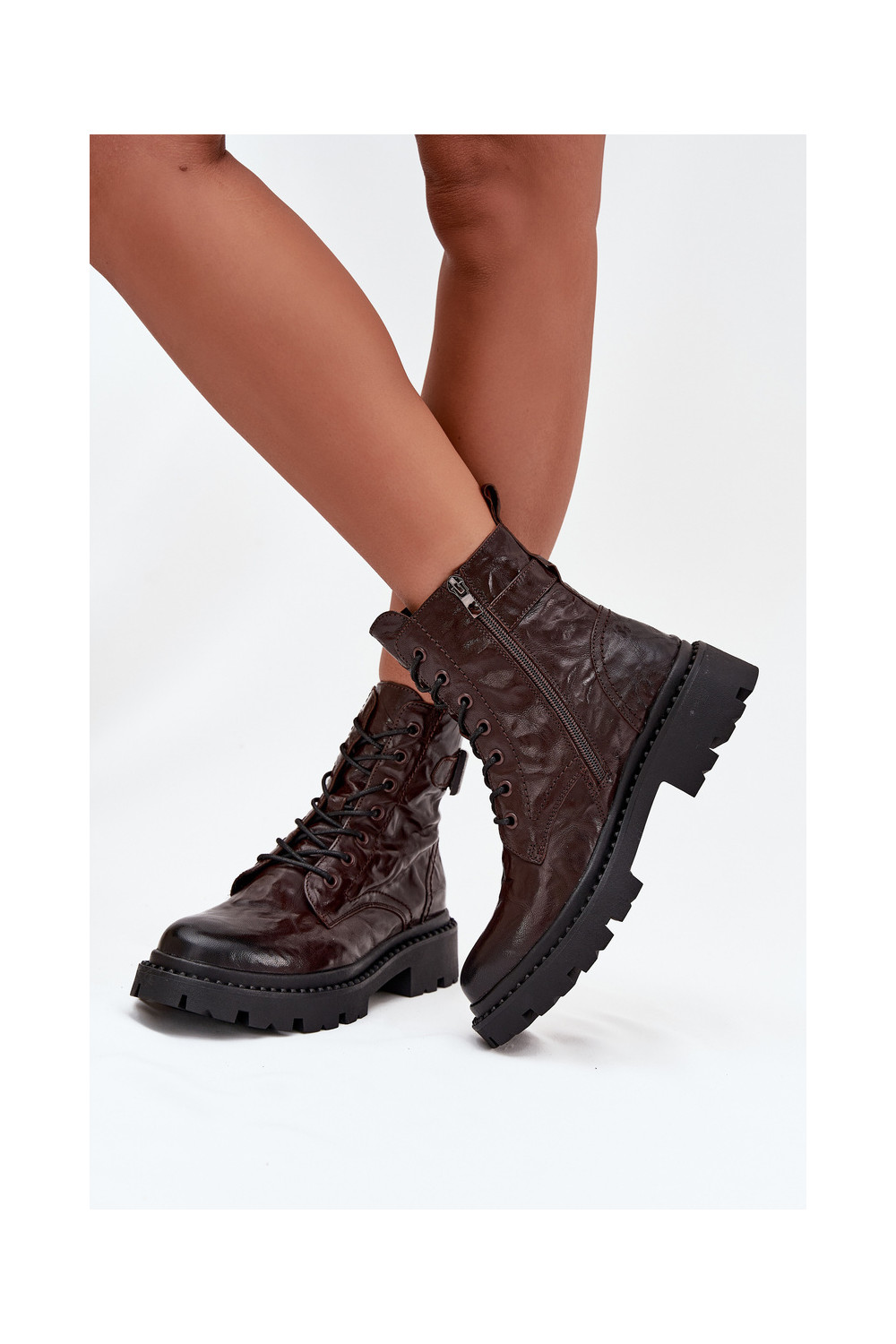 Ādas sieviešu zābaki ar pogām Artiker 57C1007 šokolādes krāsā