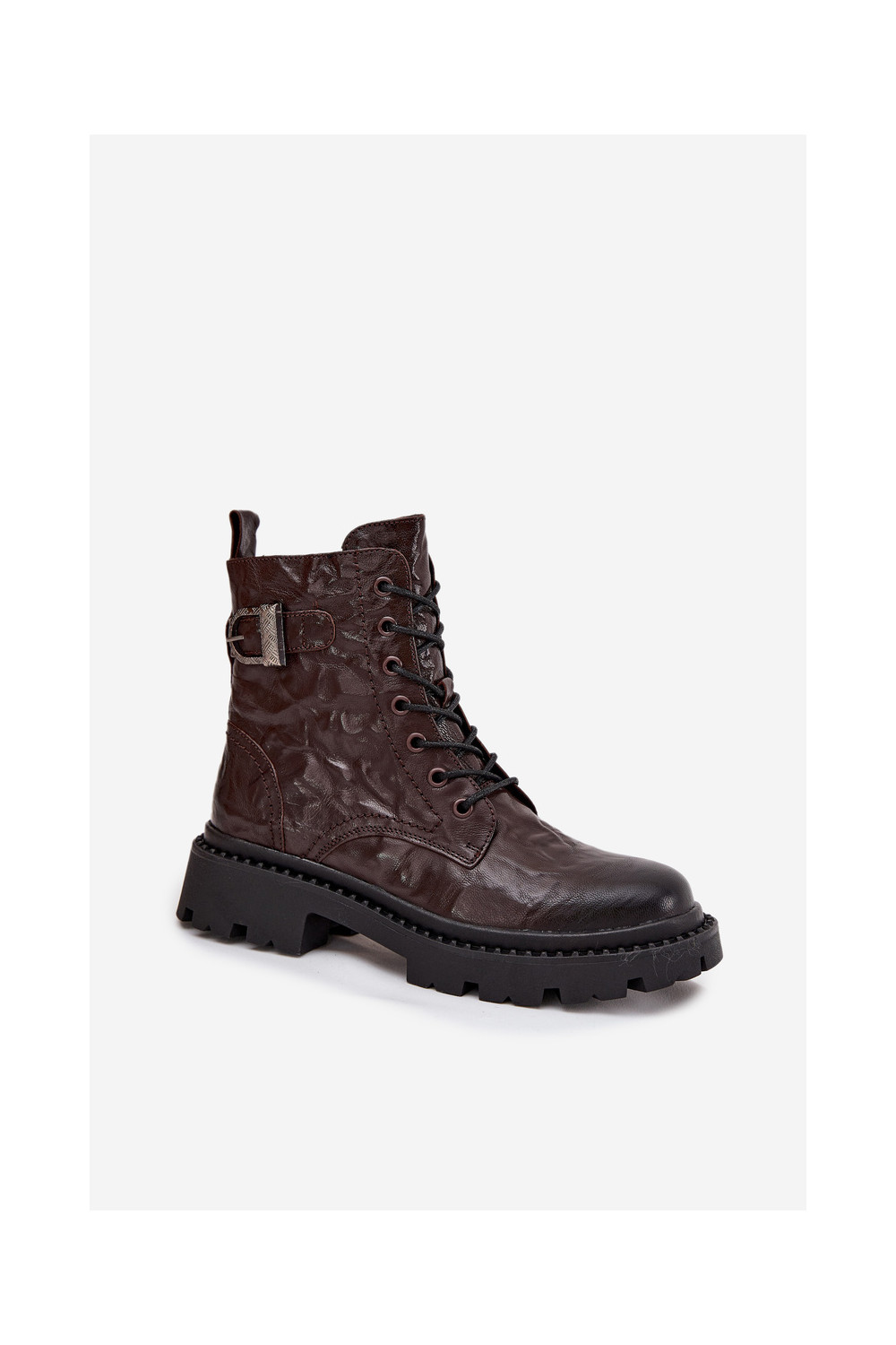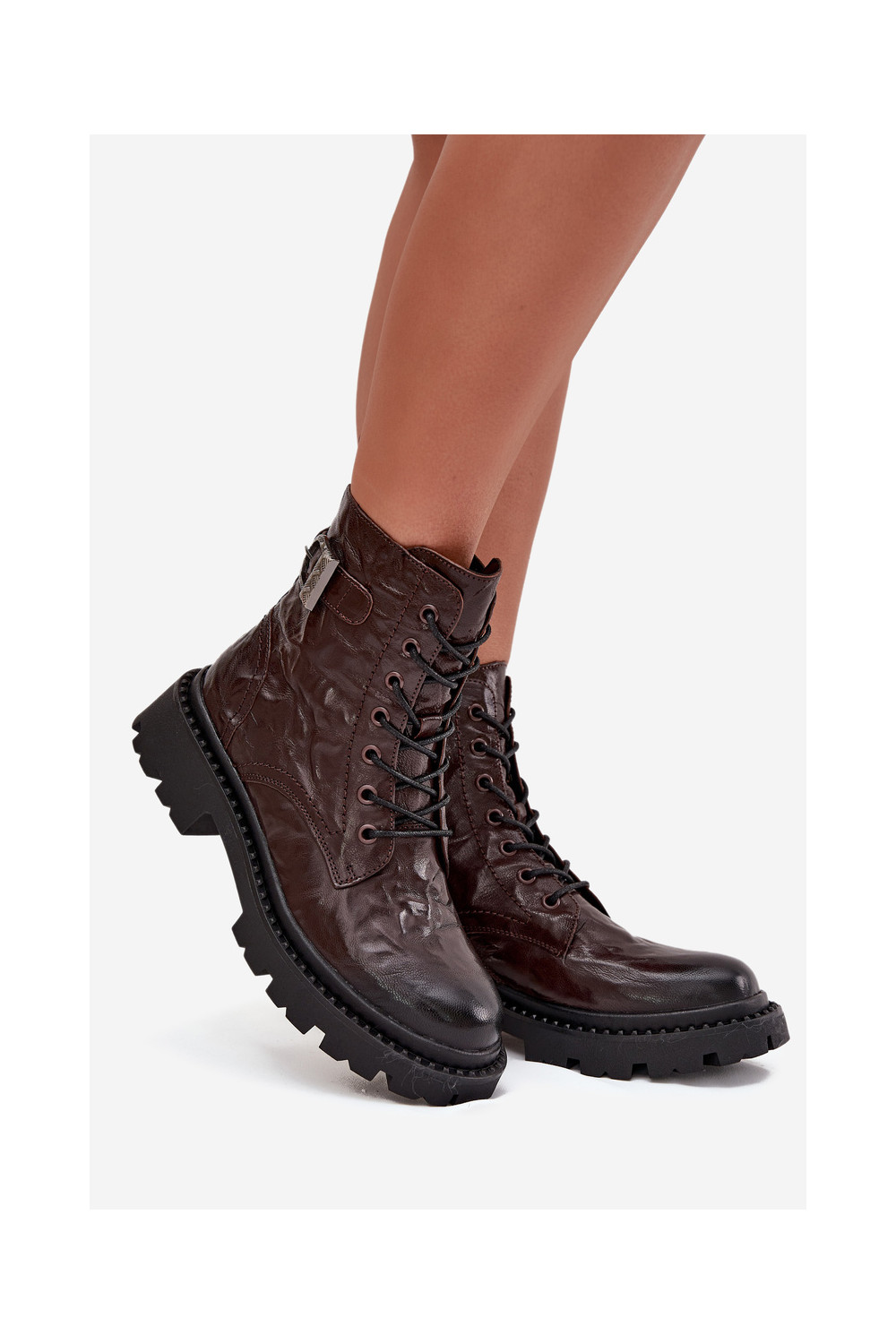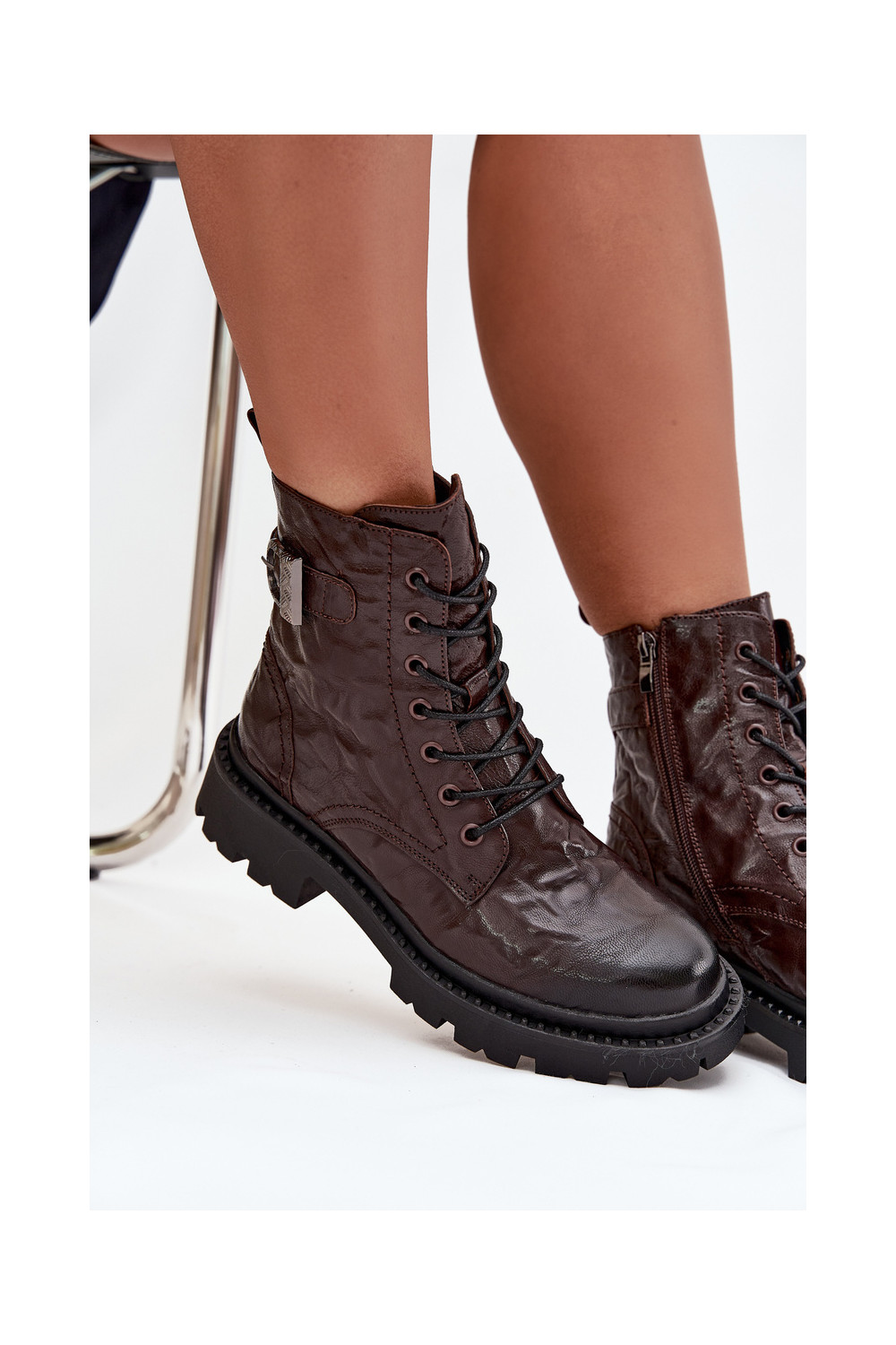 Ādas sieviešu zābaki ar pogām Artiker 57C1007 šokolādes krāsā