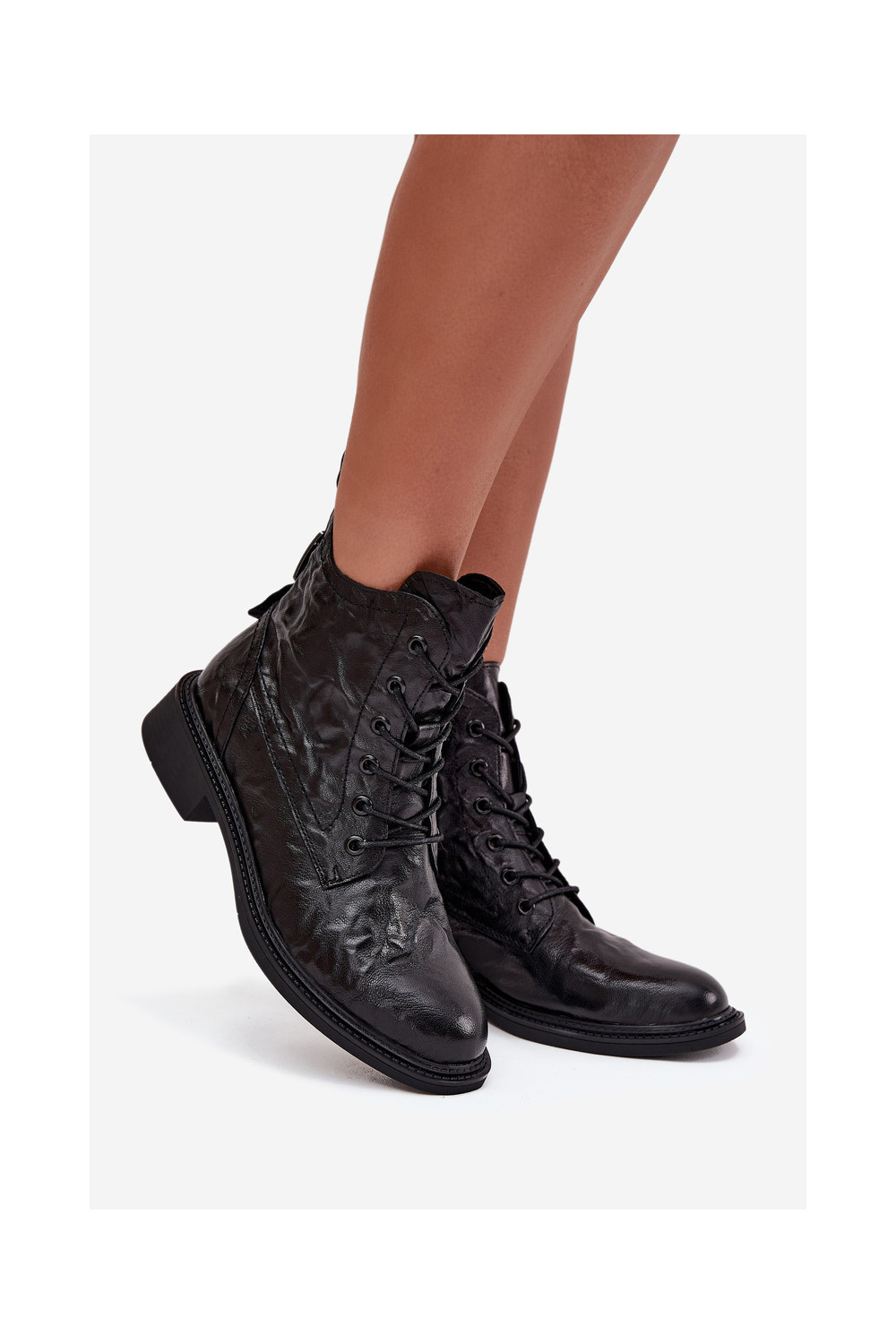 Siltināti sieviešu zābaki no dabīgās ādas Artiker 57C1006 melnā krāsā