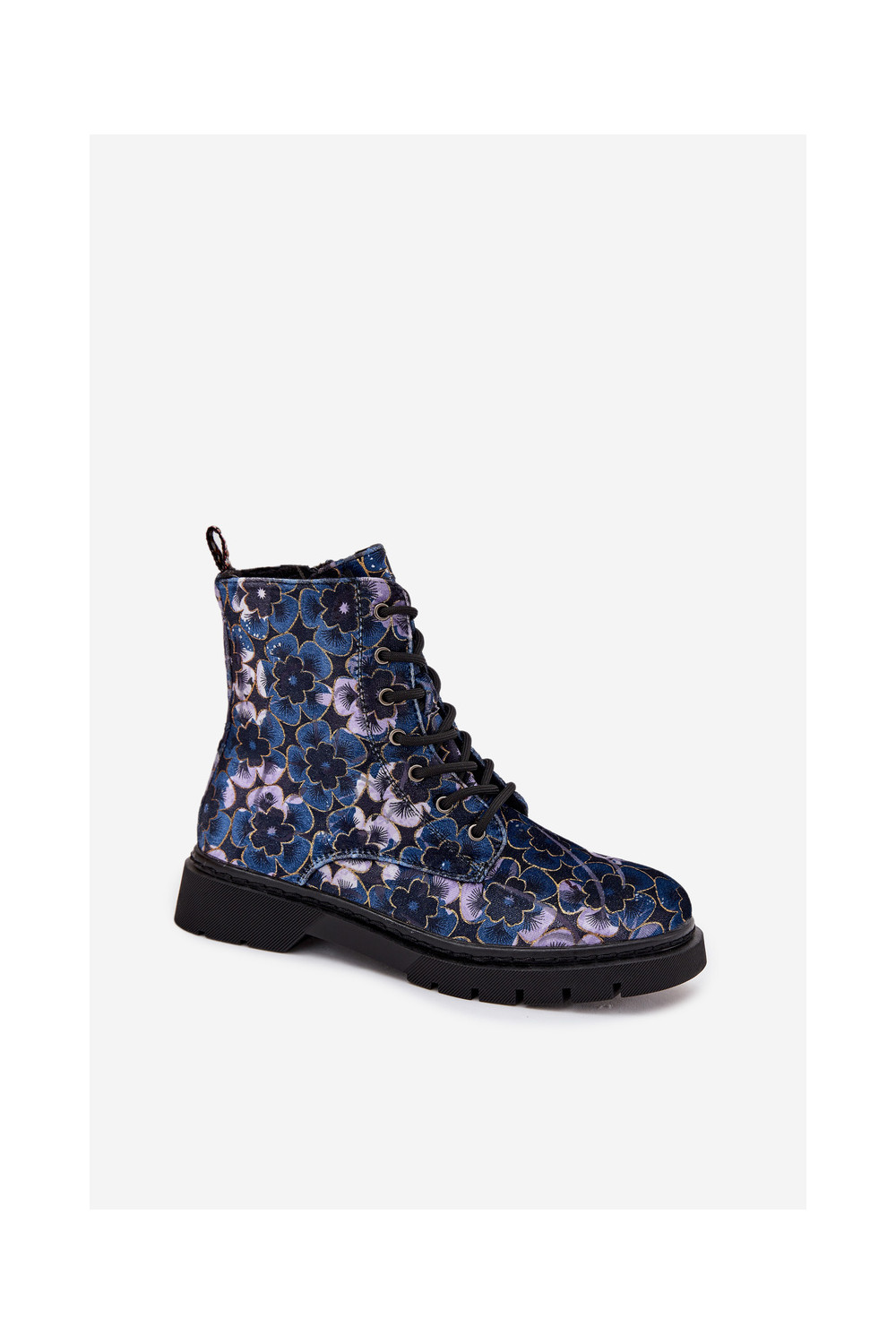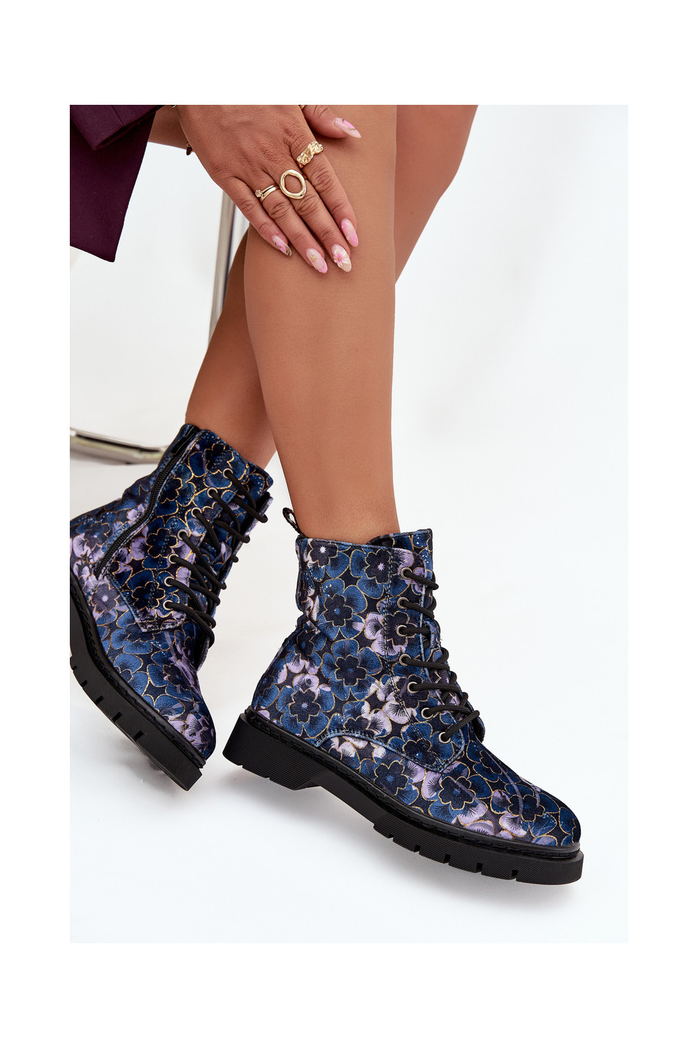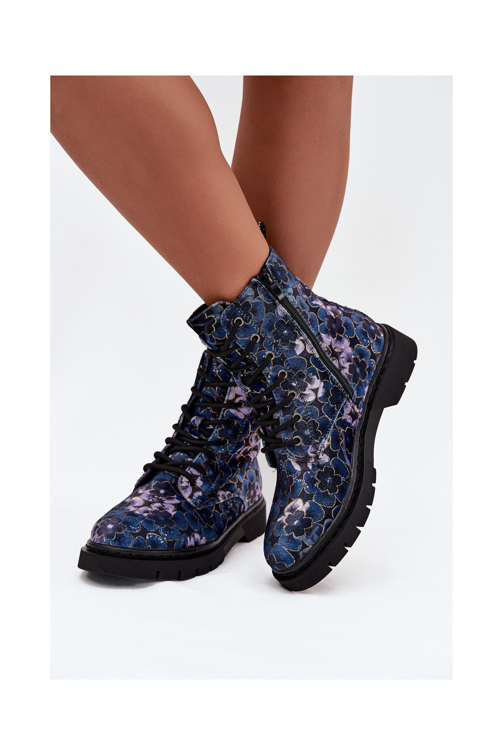 Sieviešu siltinātie zābaki ar puķītēm Artiker 57C1052 tumši zilā krāsā