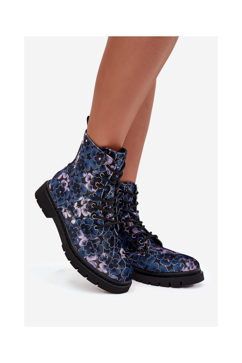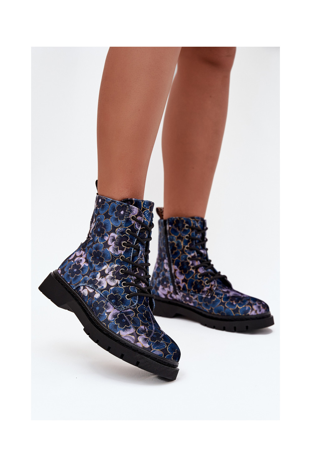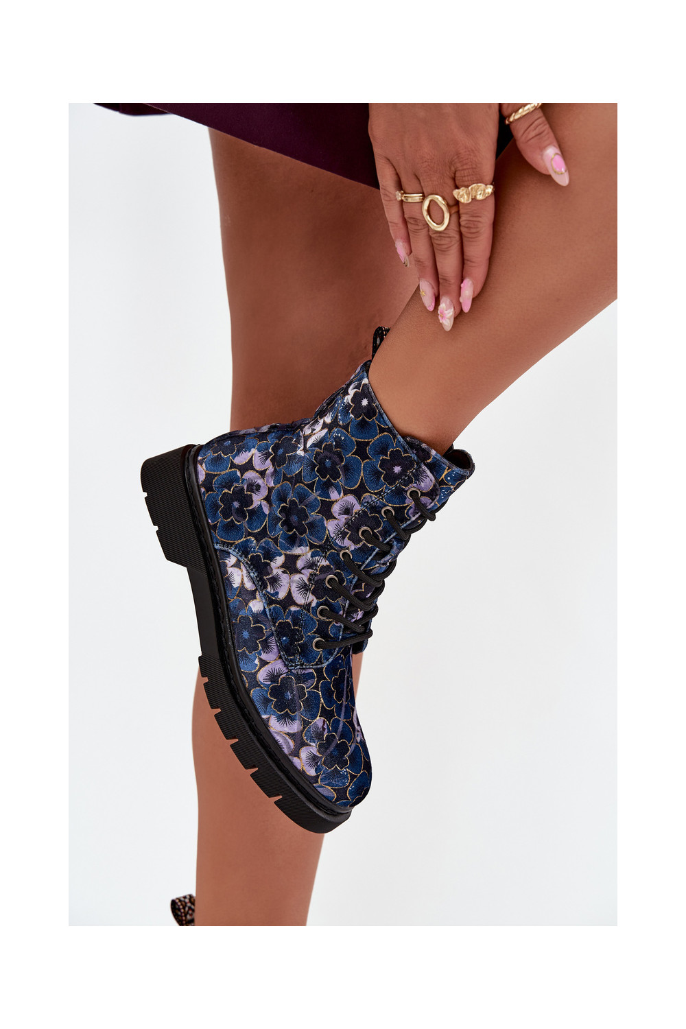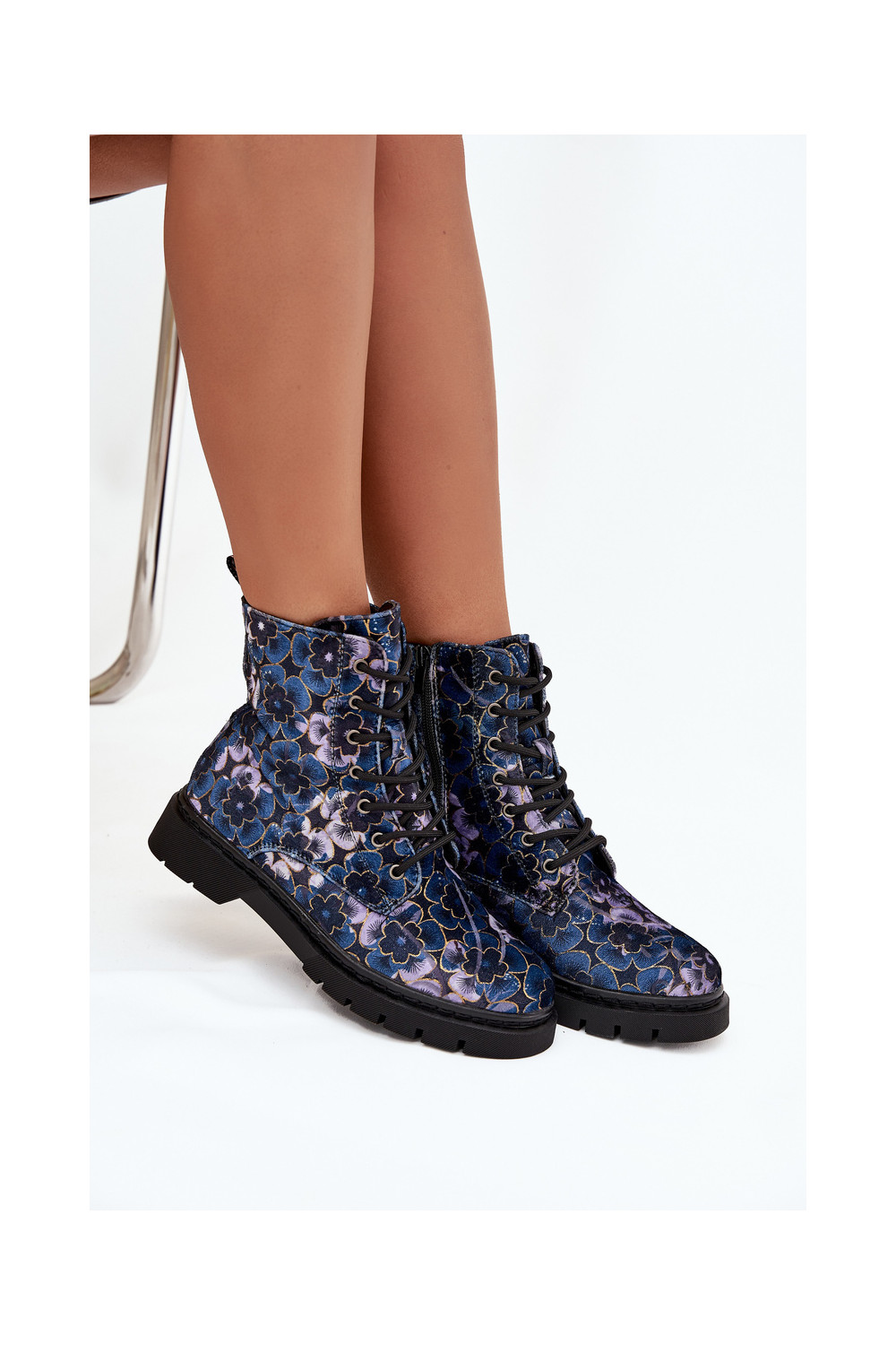 Sieviešu siltinātie zābaki ar puķītēm Artiker 57C1052 tumši zilā krāsā
