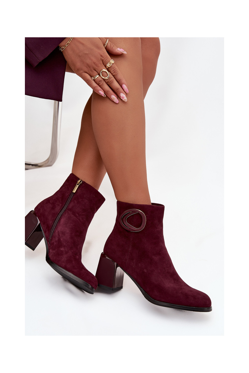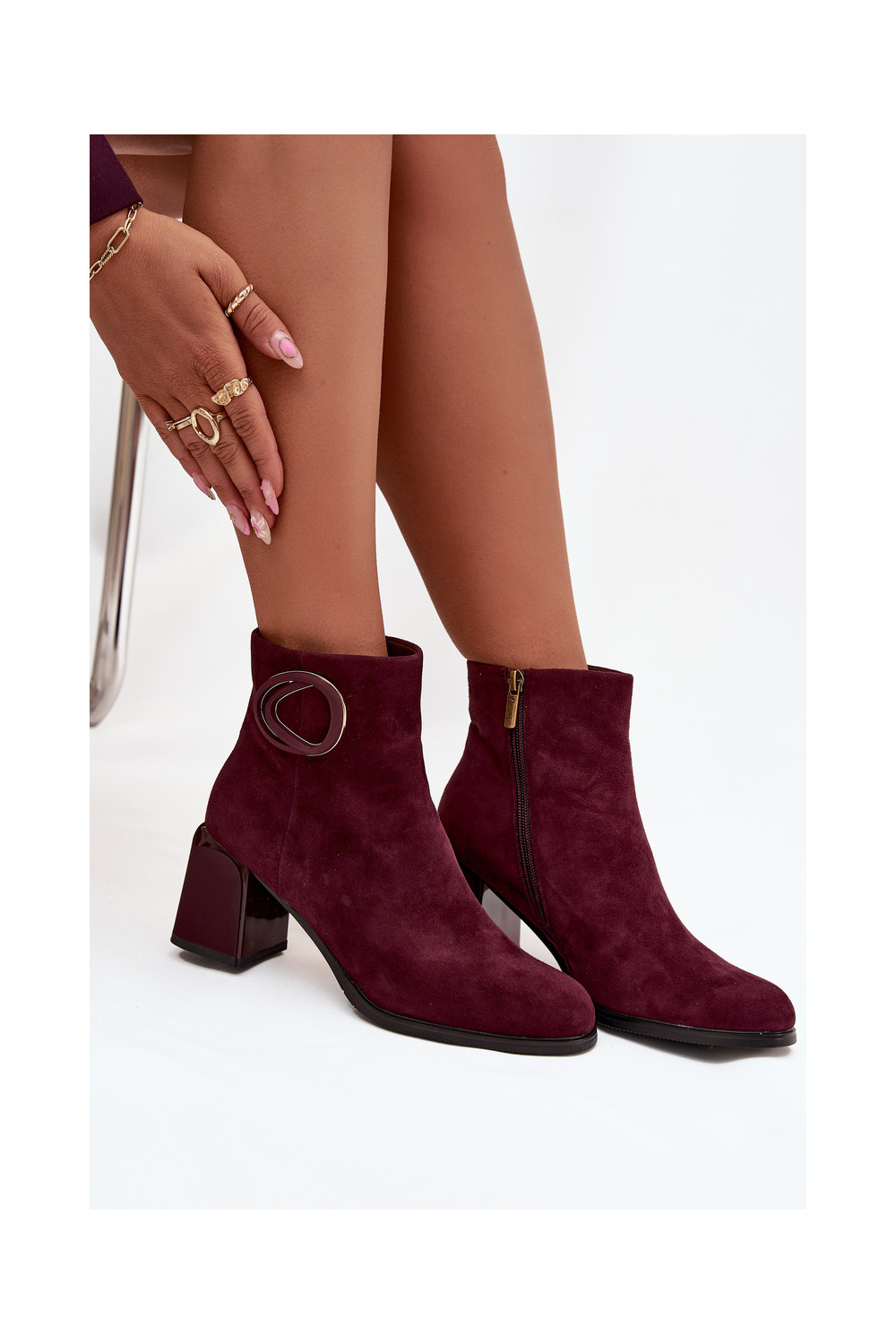zamšādas Sieviešu puszābaki Ar greznu Detalem Artiker 57C0016 bordo krāsas