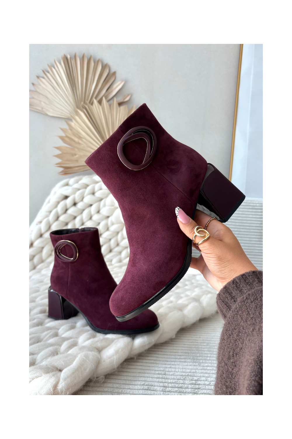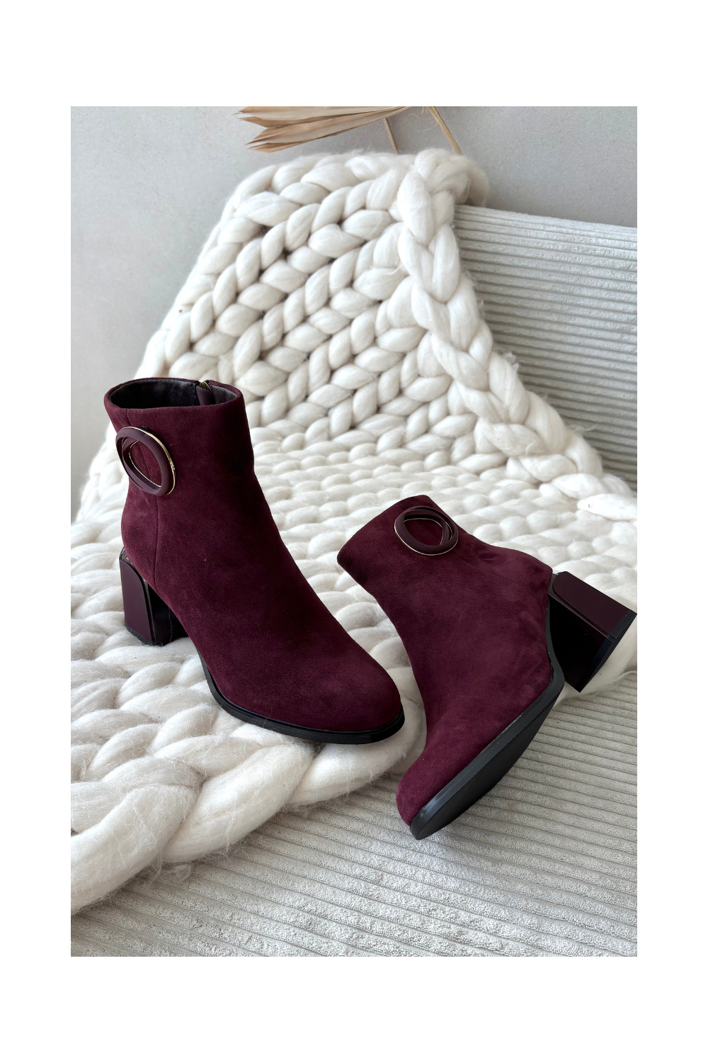 Zamšādas siltie zābaki uz papēžiem ar greznām detaļām Artiker 57C0016 bordo krāsā