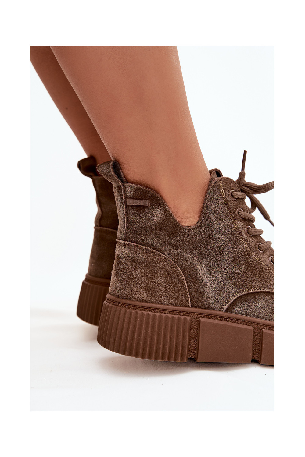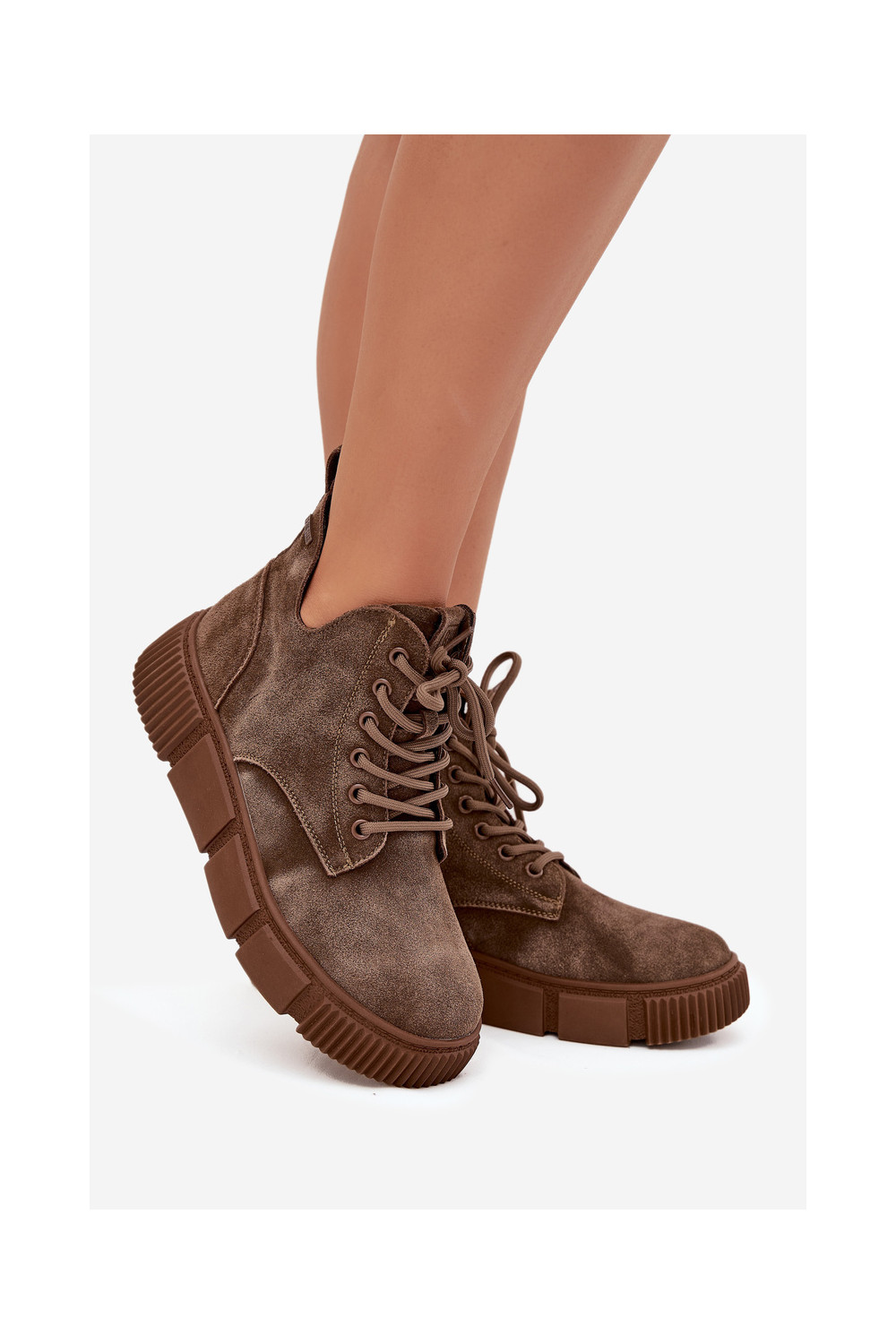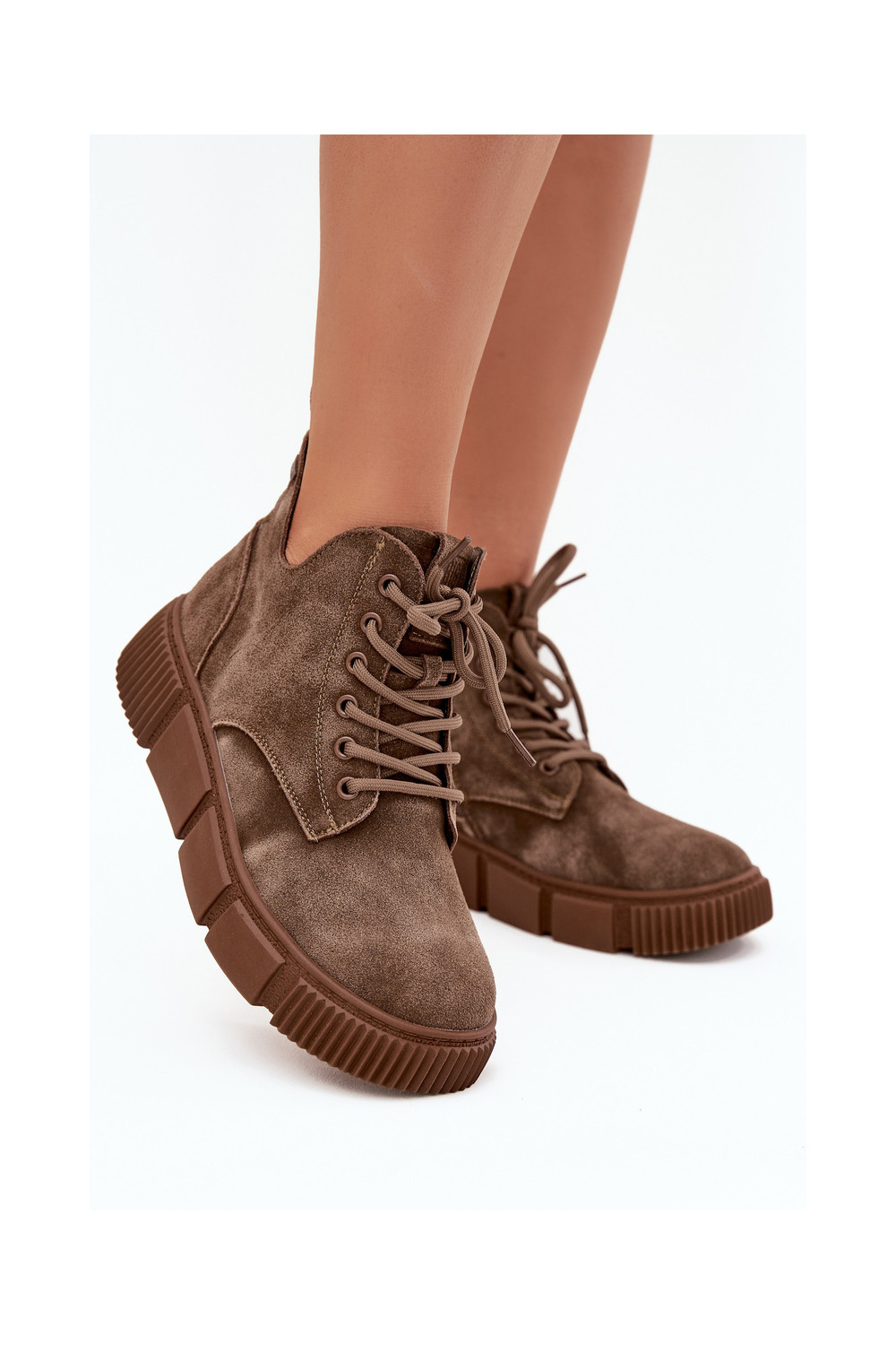 Zamšādas sieviešu zemu zābaki ar platformu Big Star SS274594 smilšu krāsā