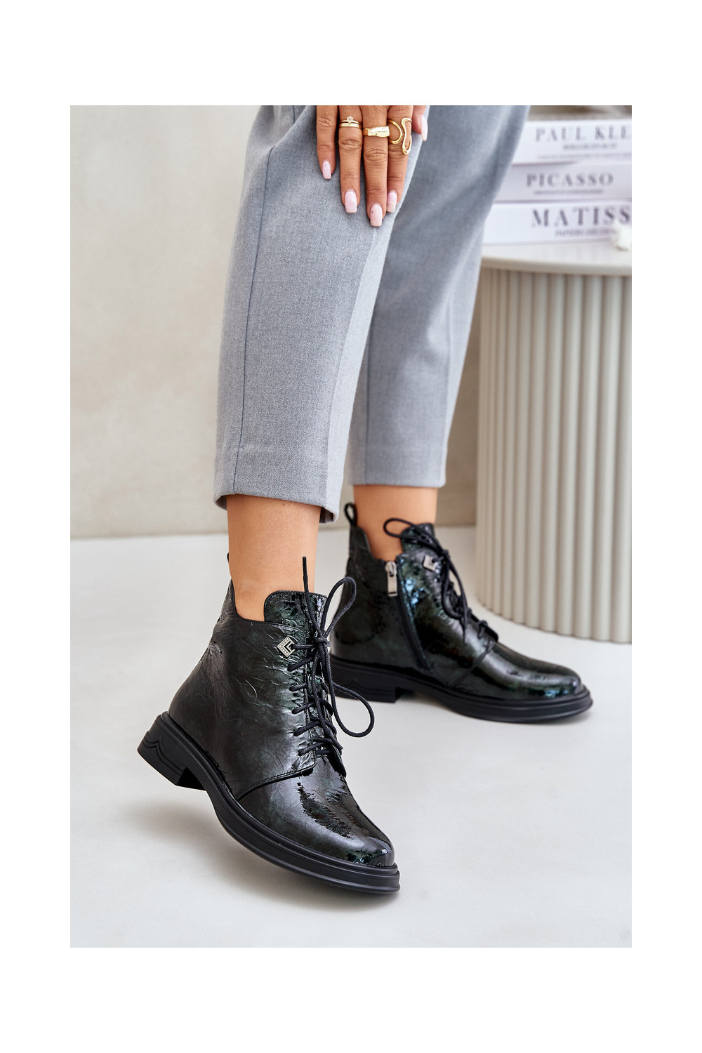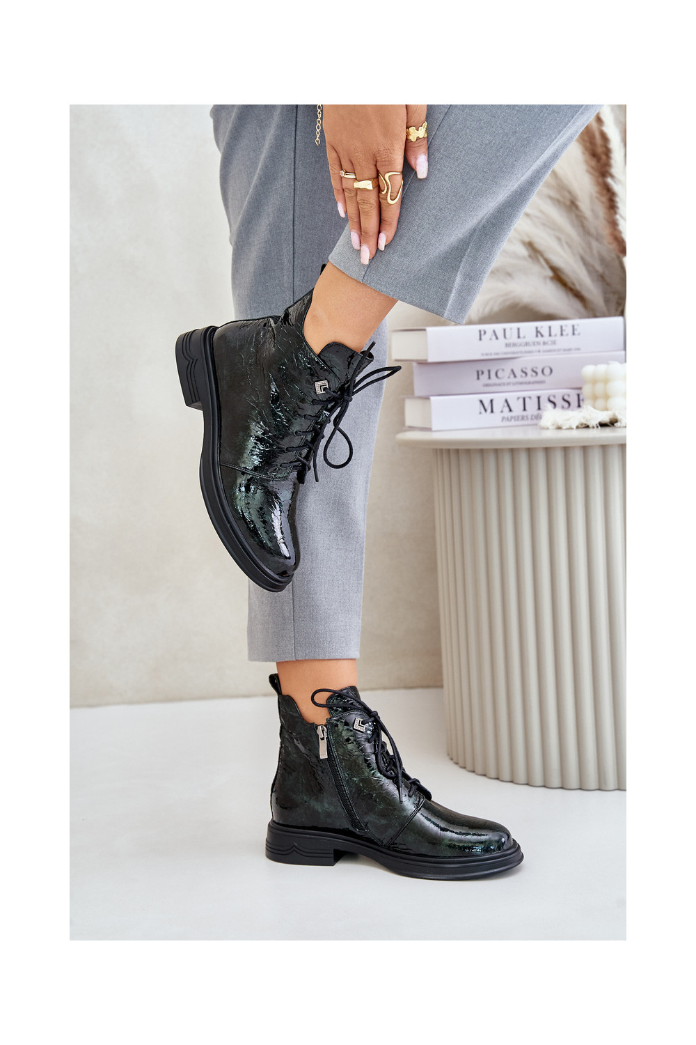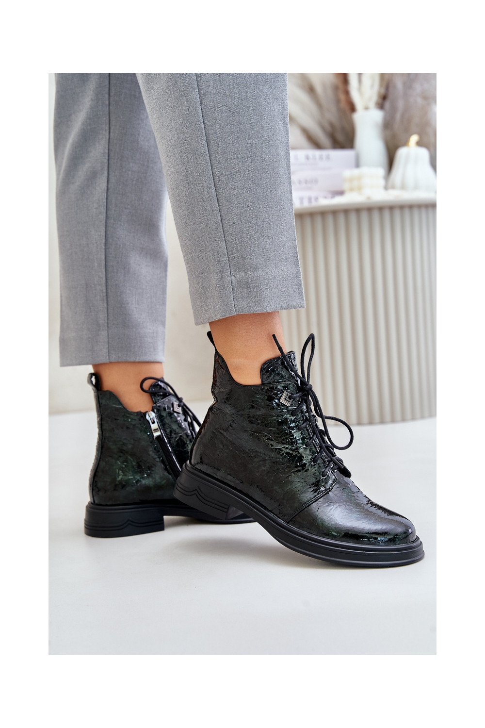 Ādas siltināti sieviešu zābaki ar lakota efekta D&A LZ42-042 chaki krāsā