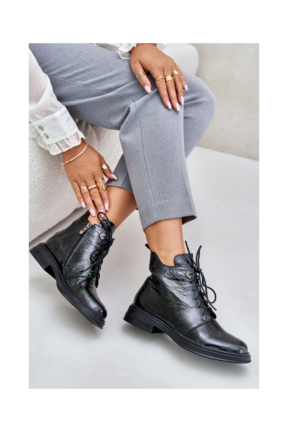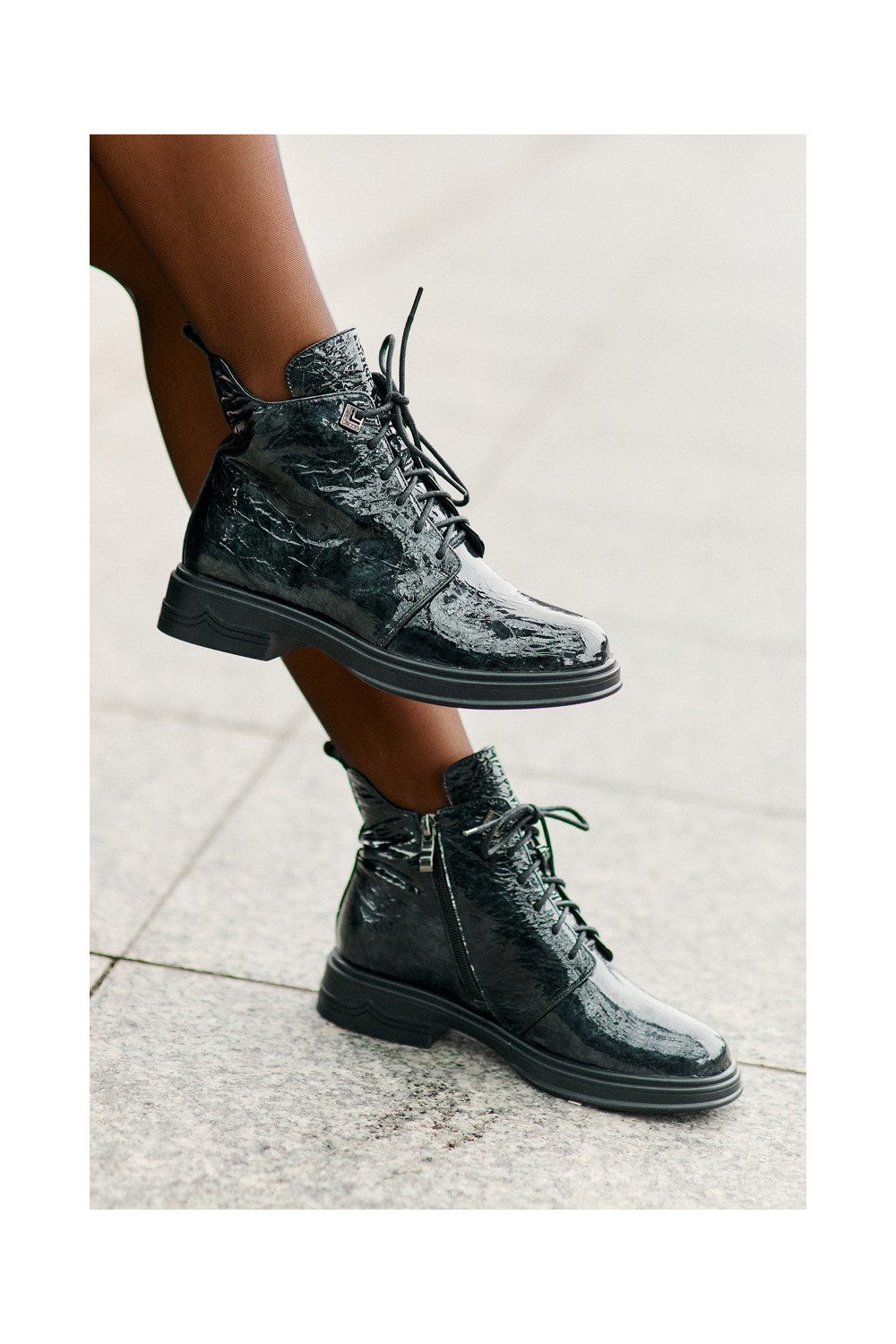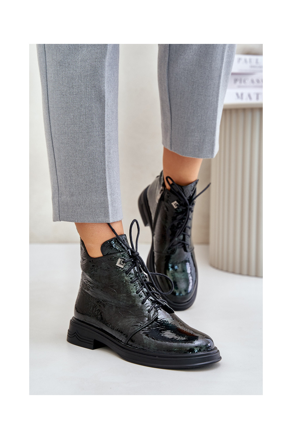 Ādas siltināti sieviešu zābaki ar lakota efekta D&A LZ42-042 chaki krāsā
