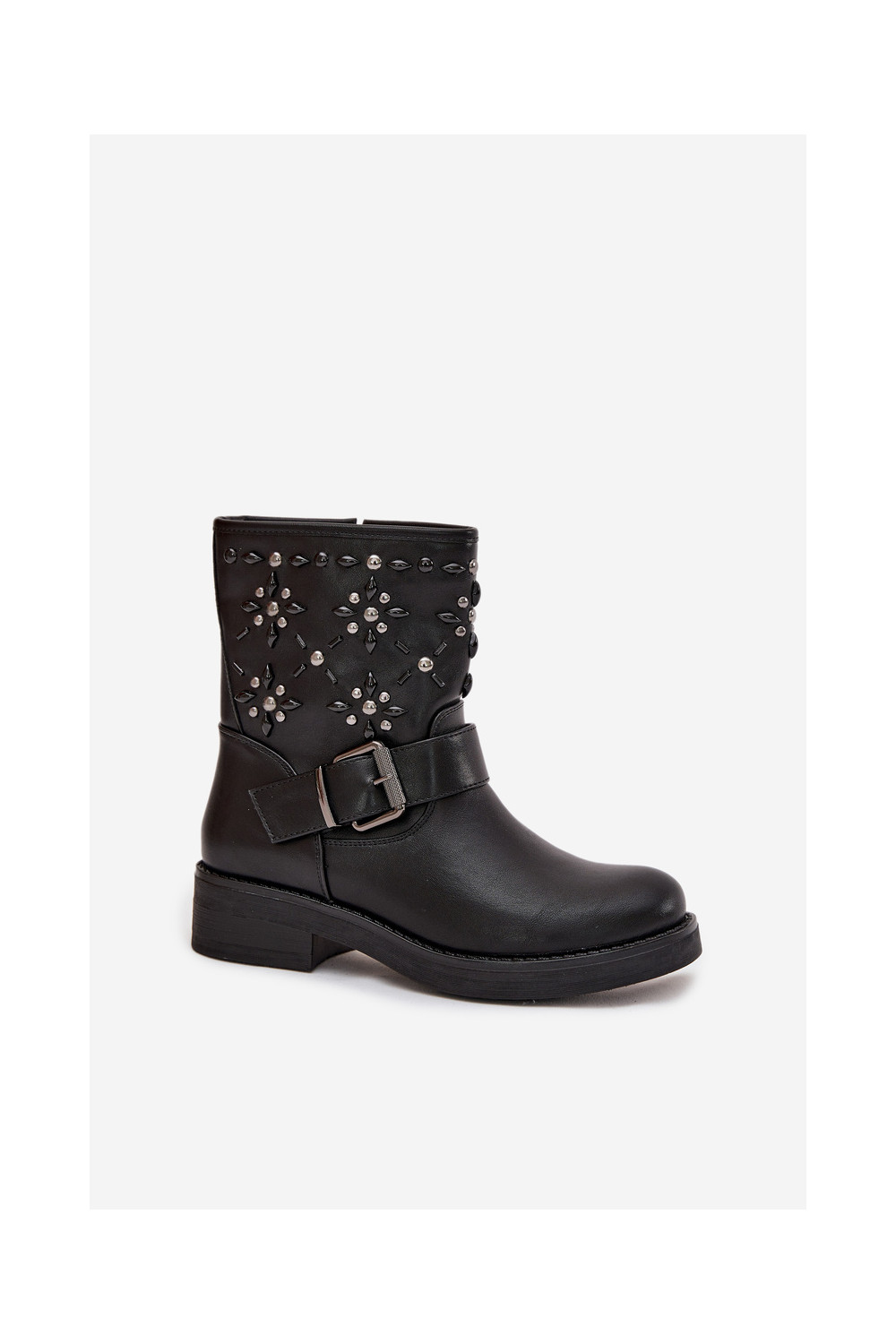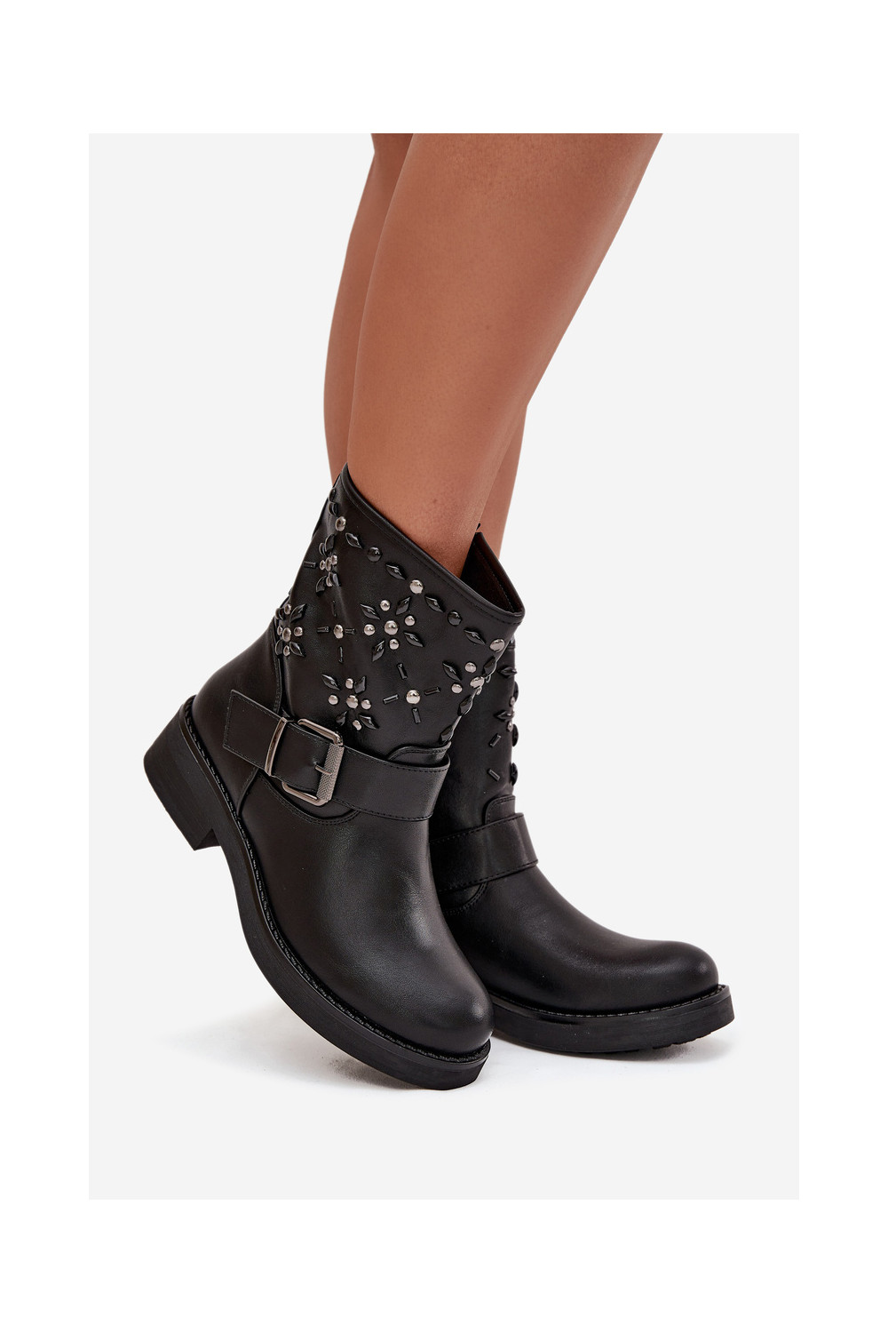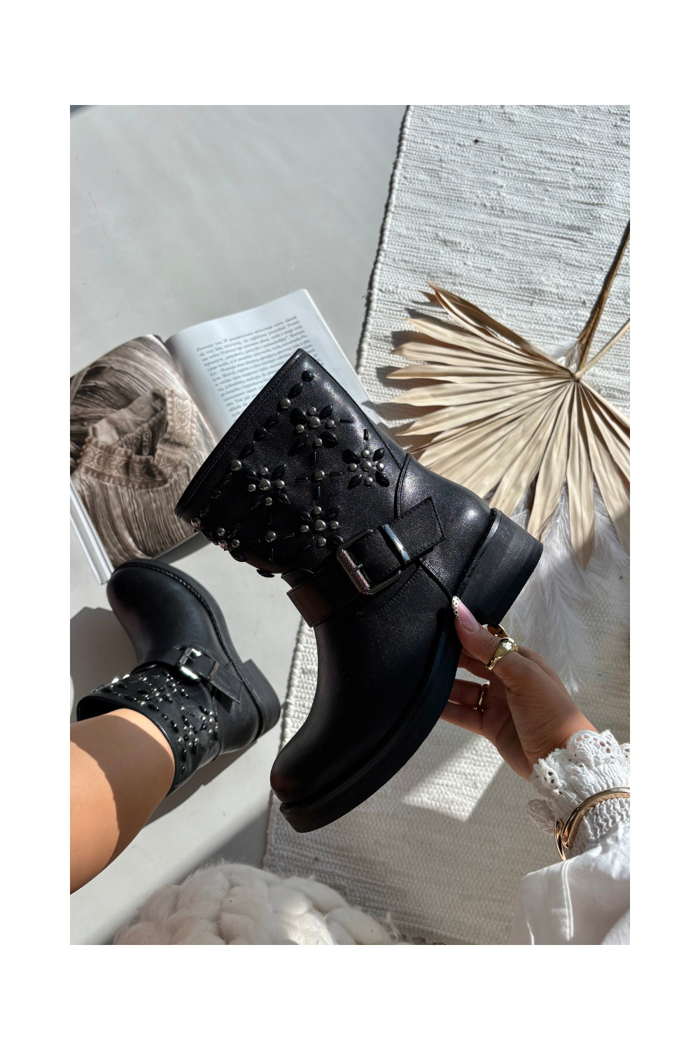 Dekorēti sieviešu zābaciņi ar sprādzēm melnā krāsā Mivana