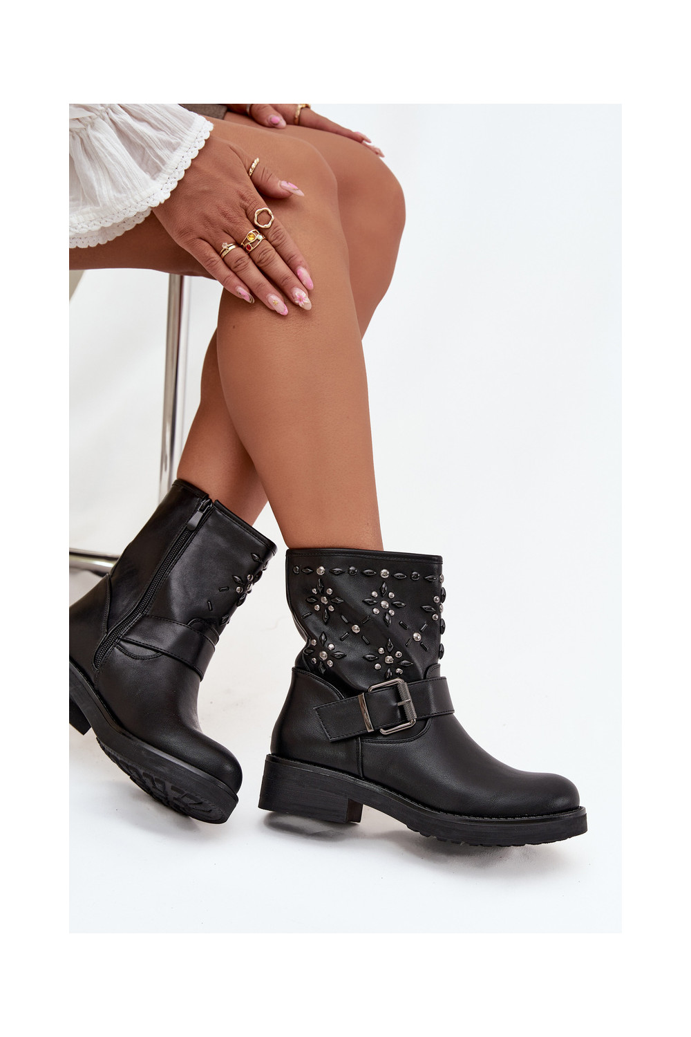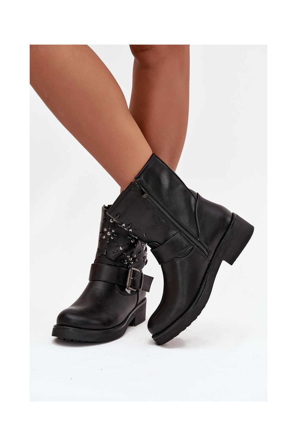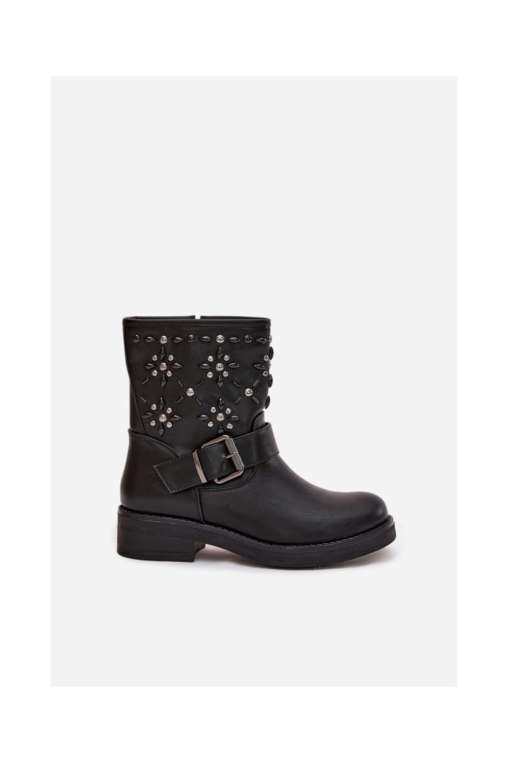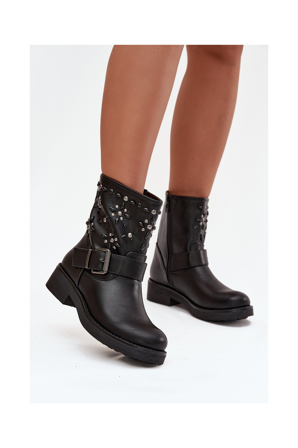 Dekorēti sieviešu zābaciņi ar sprādzēm melnā krāsā Mivana
