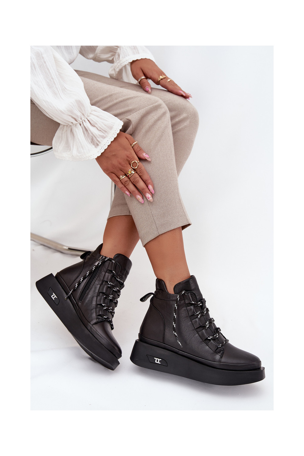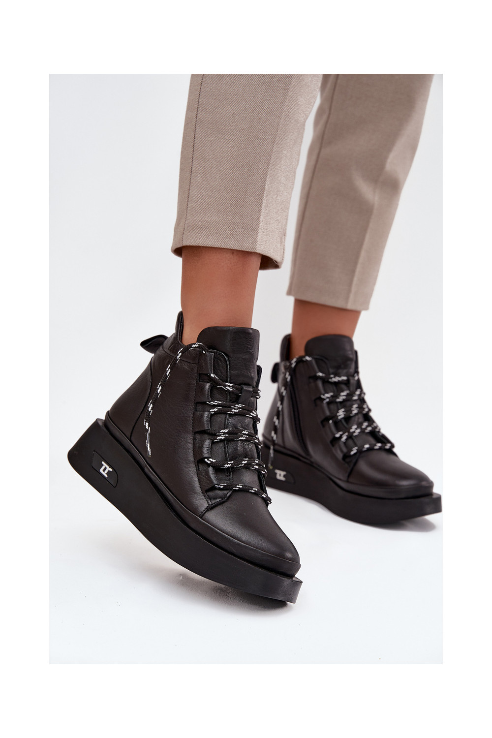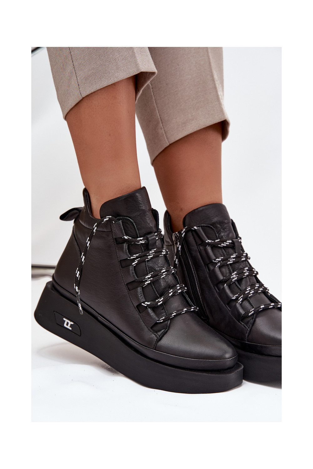 Ādas sieviešu zābaki ar platformu, siltināti, Artiker 55C0809 melnā krāsā