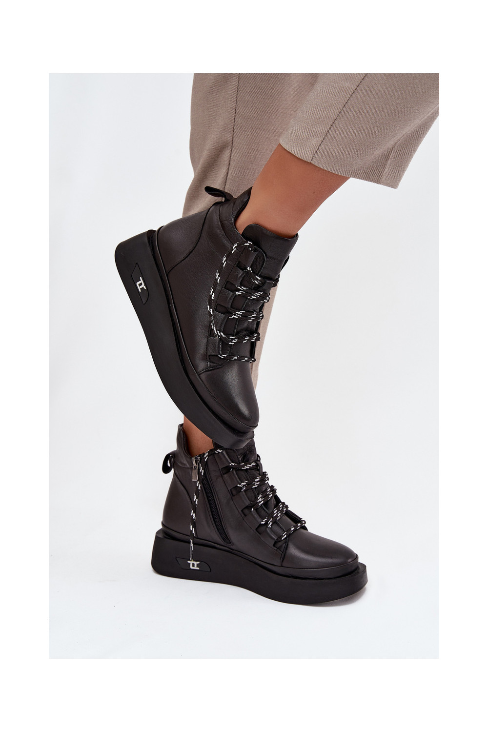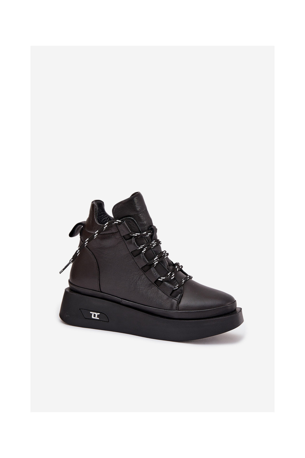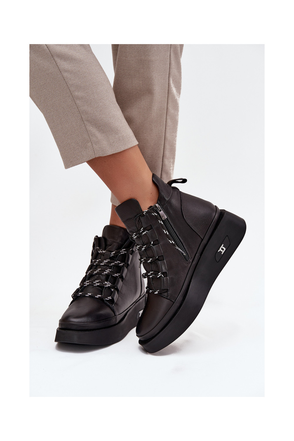 Ādas sieviešu zābaki ar platformu, siltināti, Artiker 55C0809 melnā krāsā