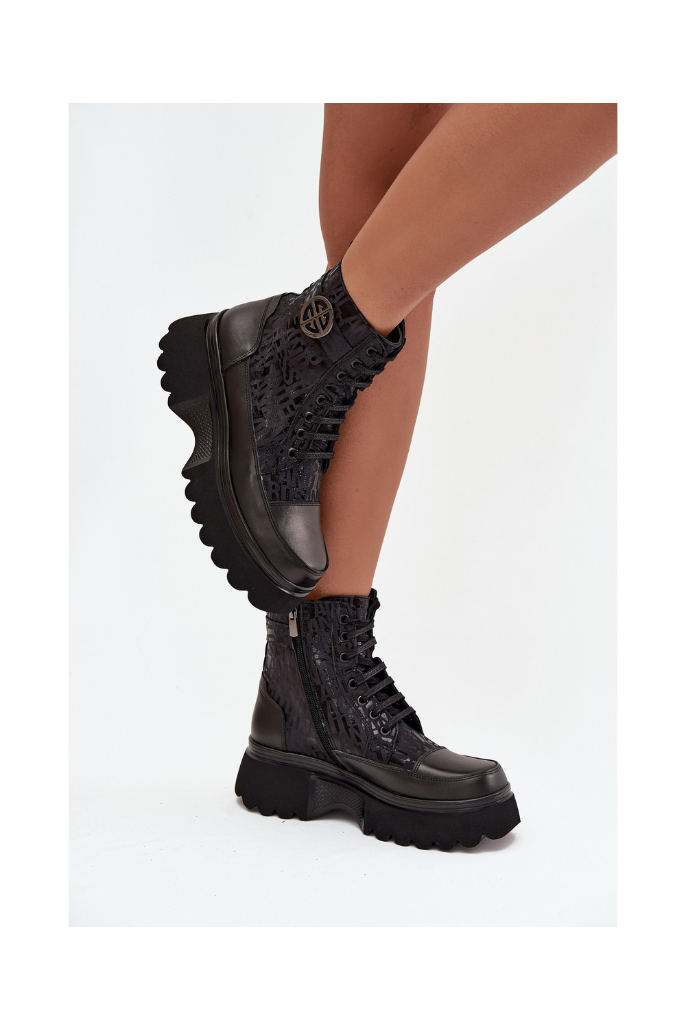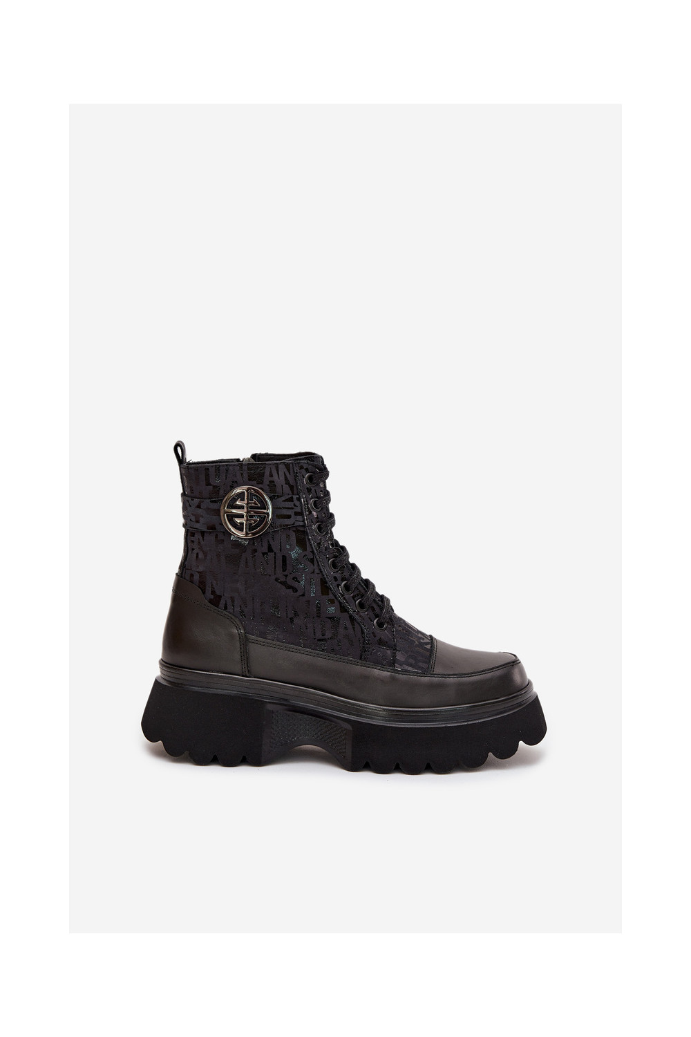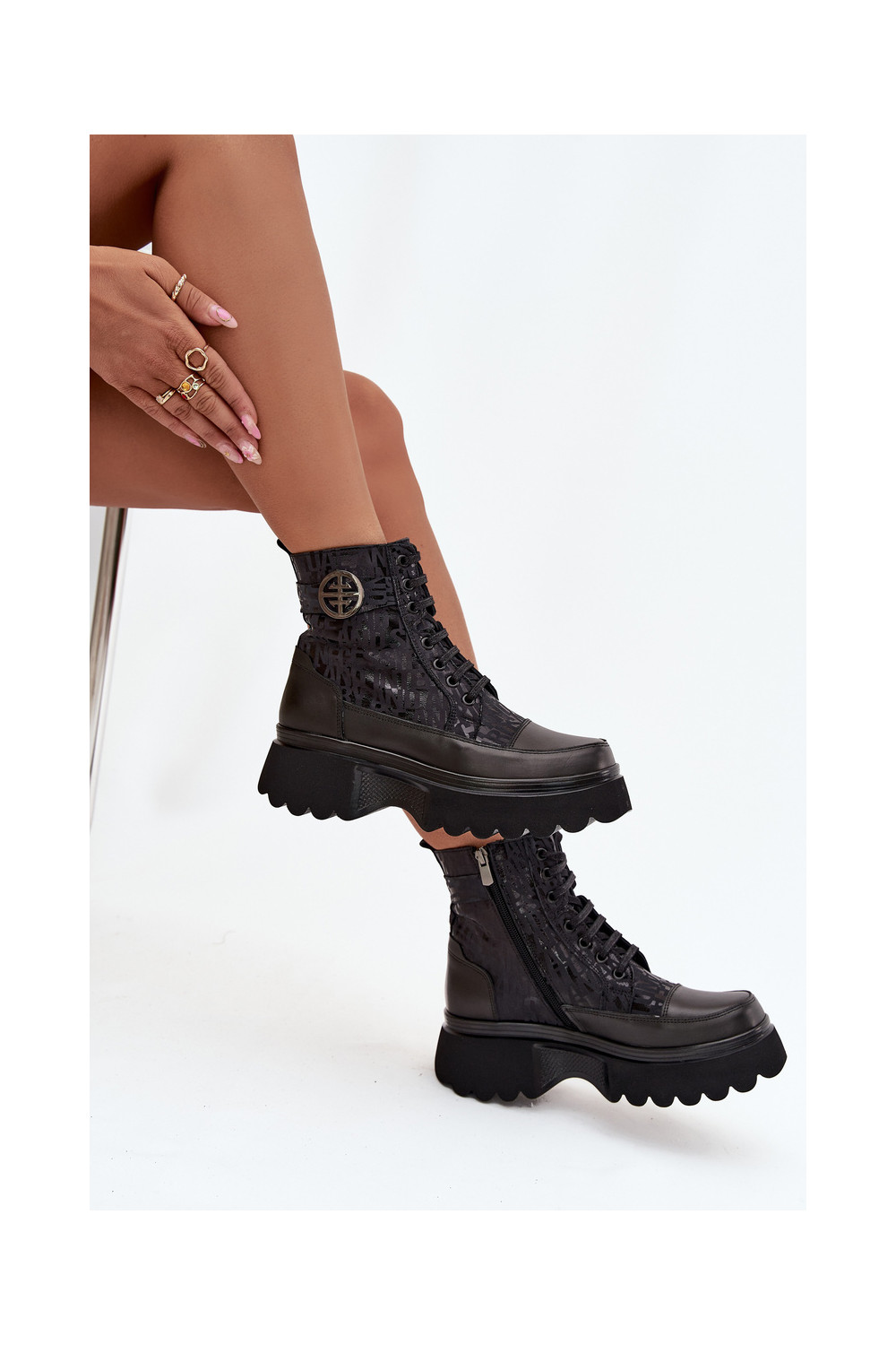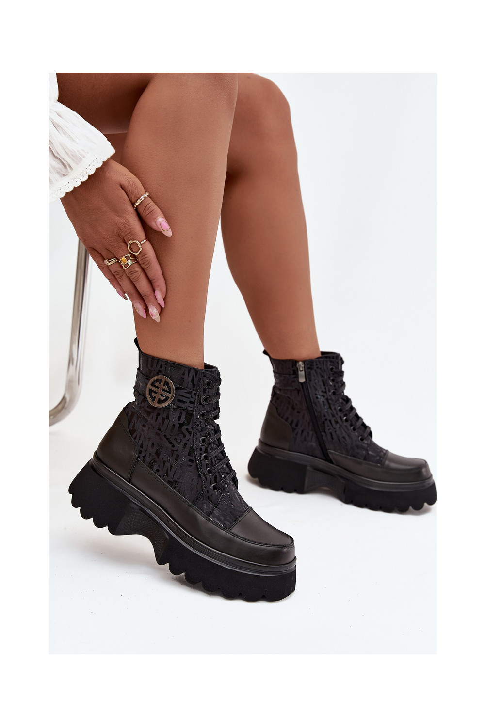 Ādas sieviešu zābaki ar platformu un greznām detaļām, Artiker 57C2273 melnā krāsā