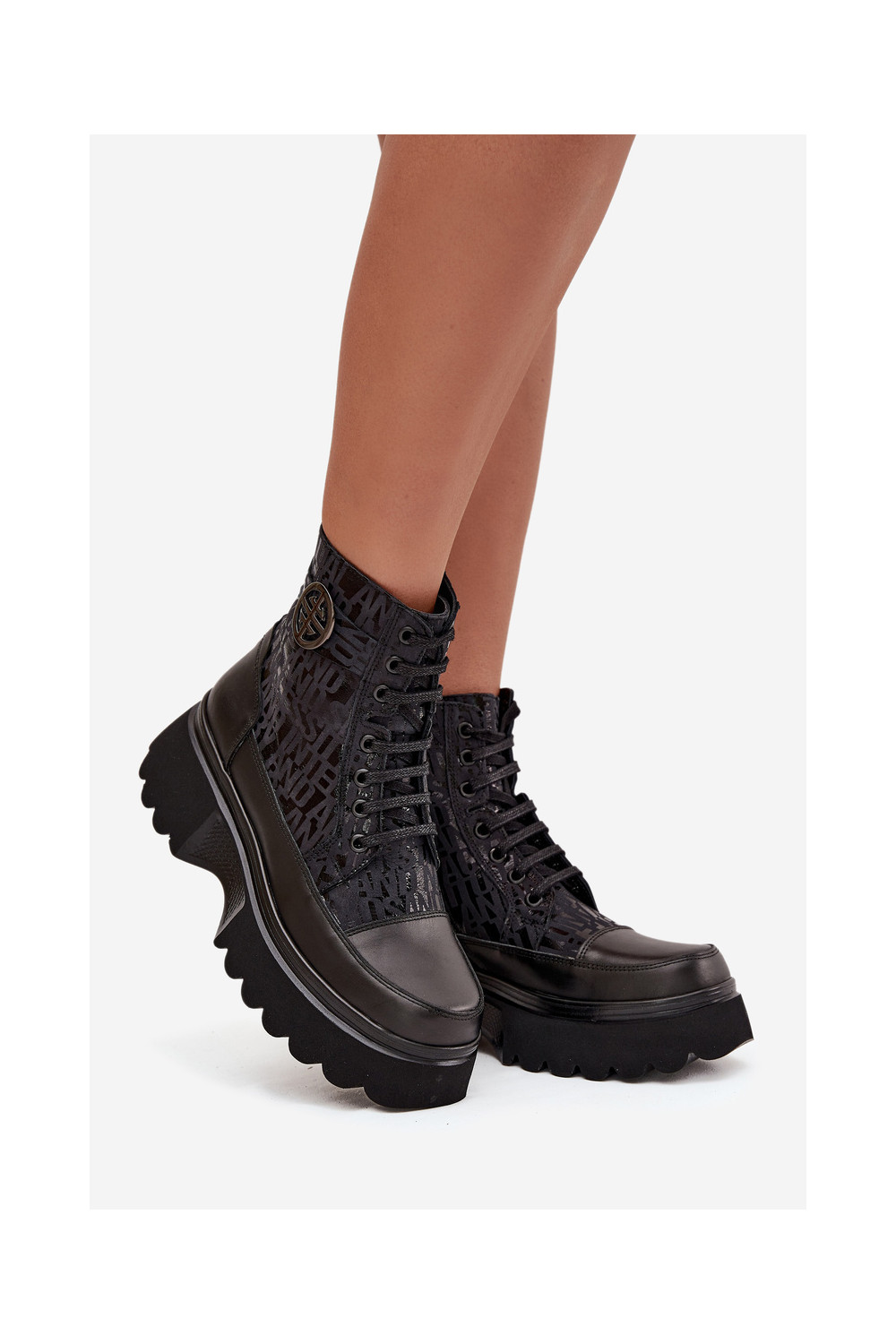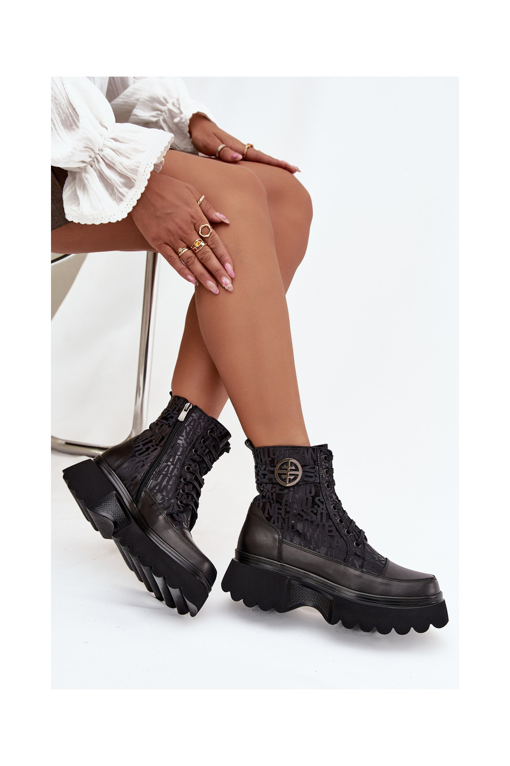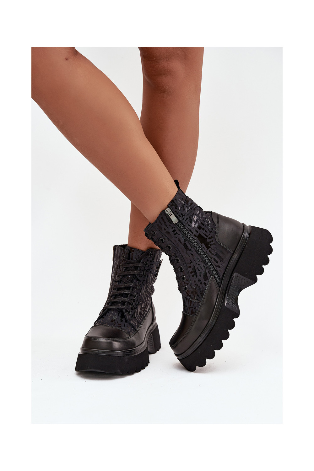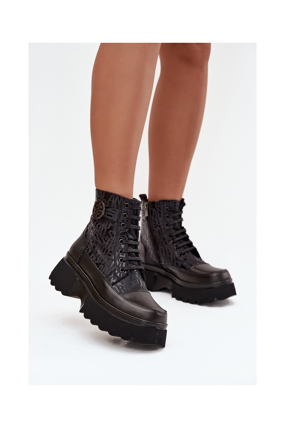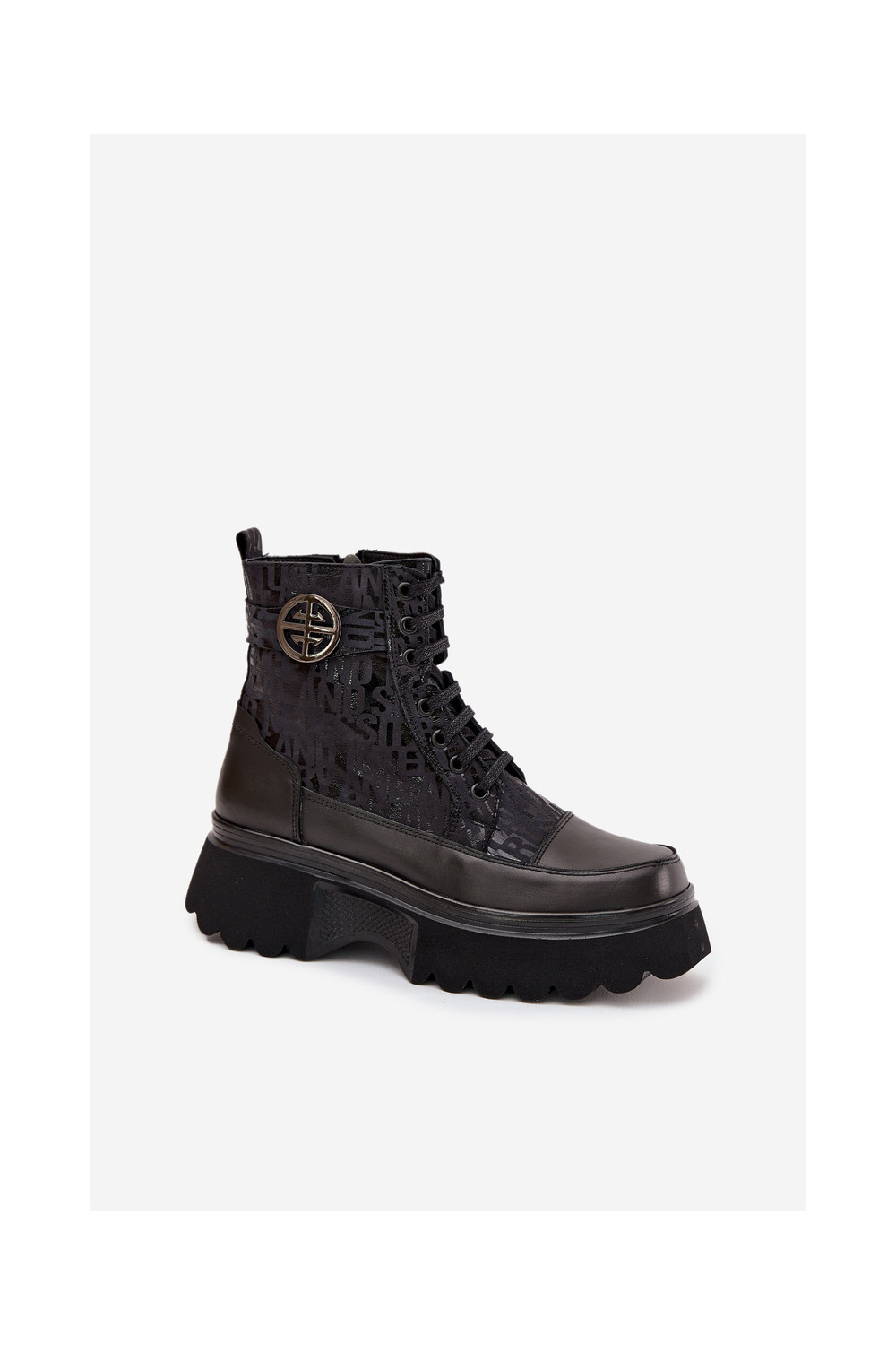 Ādas sieviešu zābaki ar platformu un greznām detaļām, Artiker 57C2273 melnā krāsā