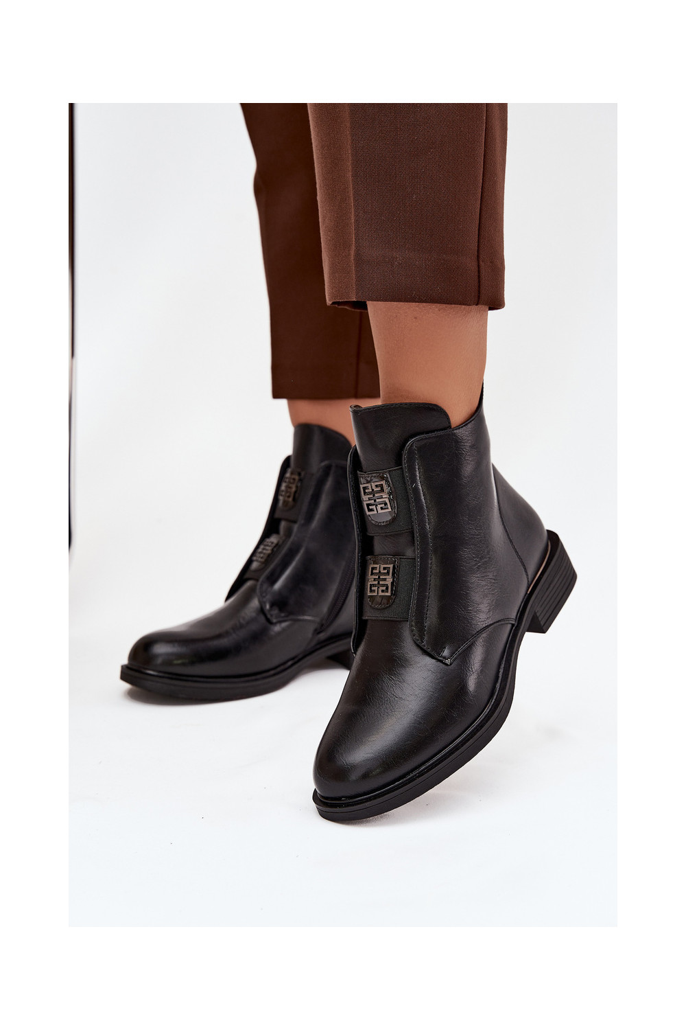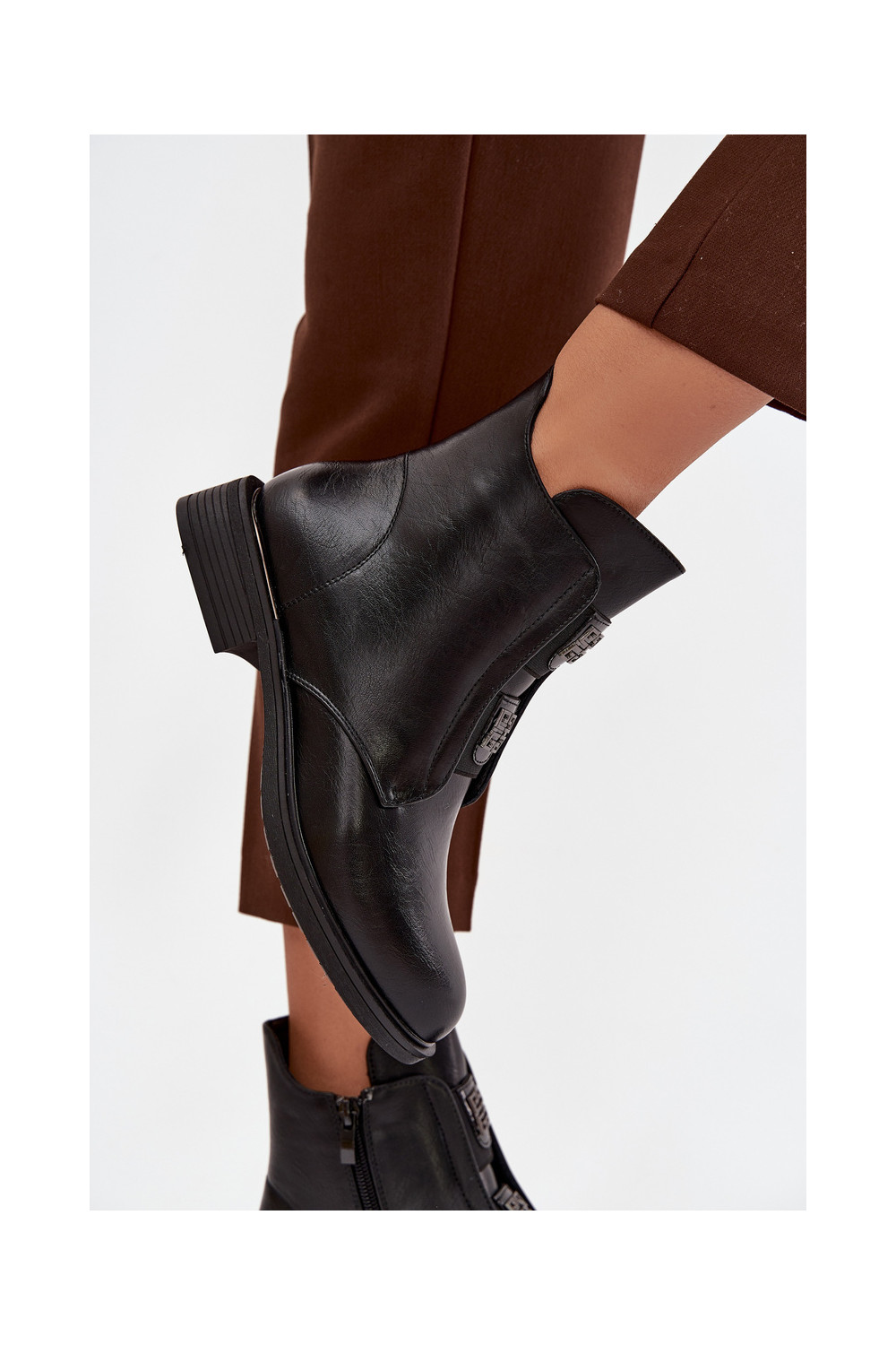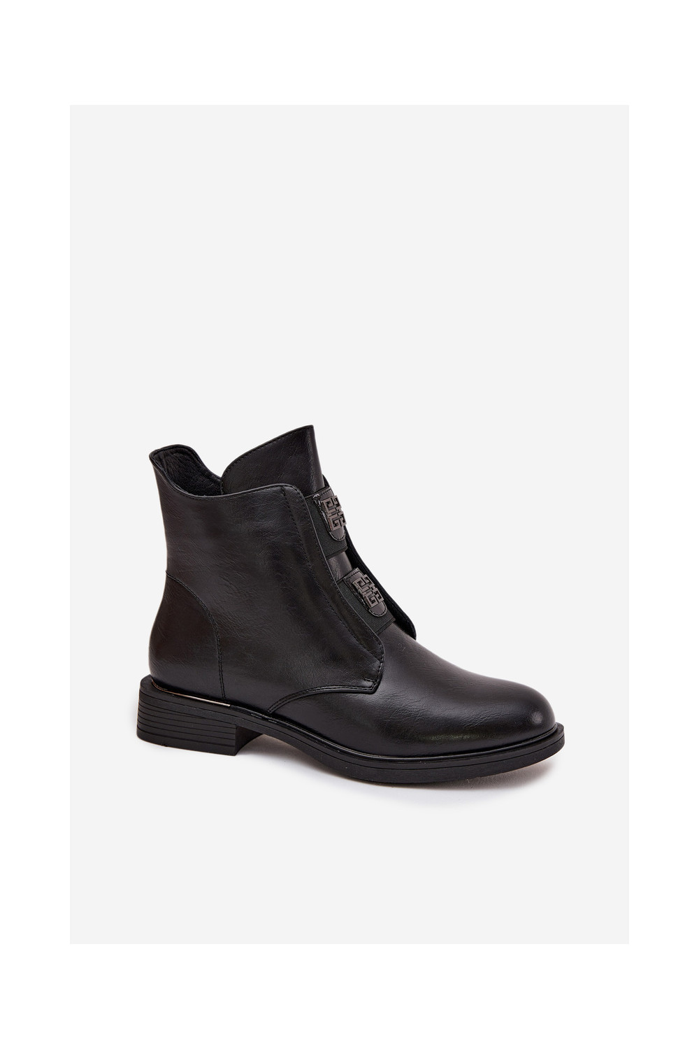 Sieviešu zābaki uz zema papēža ar skaistām detaļām, siltināti, melnā krāsā Tavressa