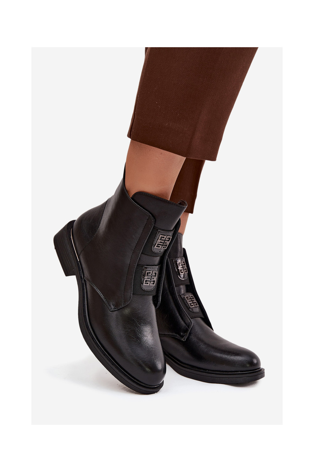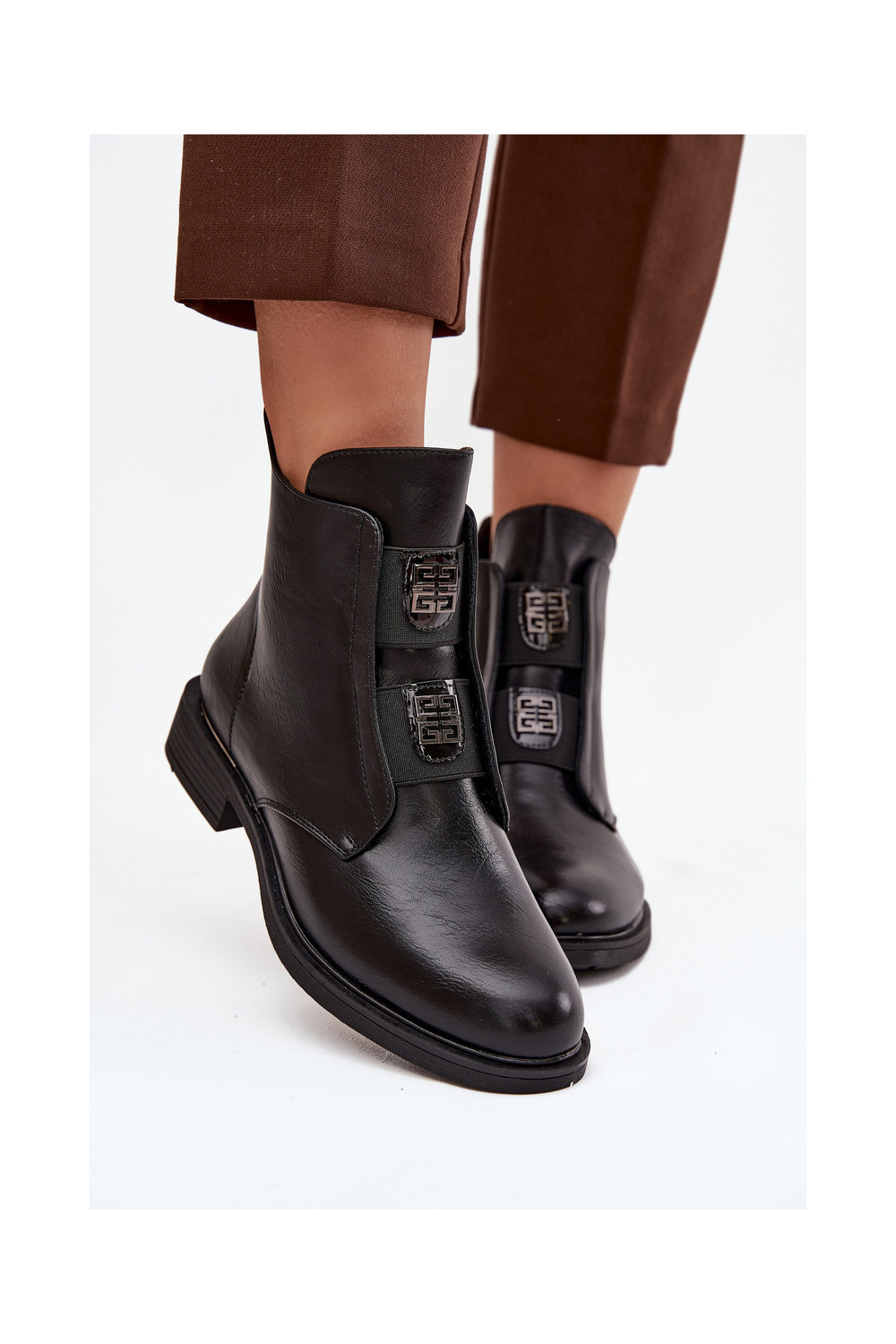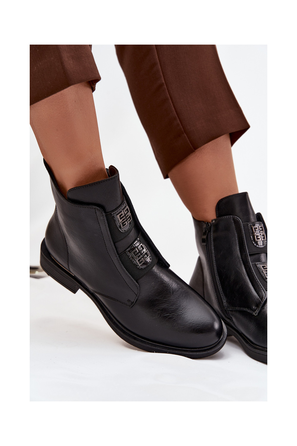 Sieviešu zābaki uz zema papēža ar skaistām detaļām, siltināti, melnā krāsā Tavressa