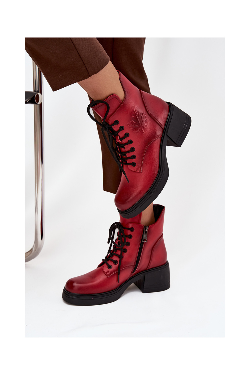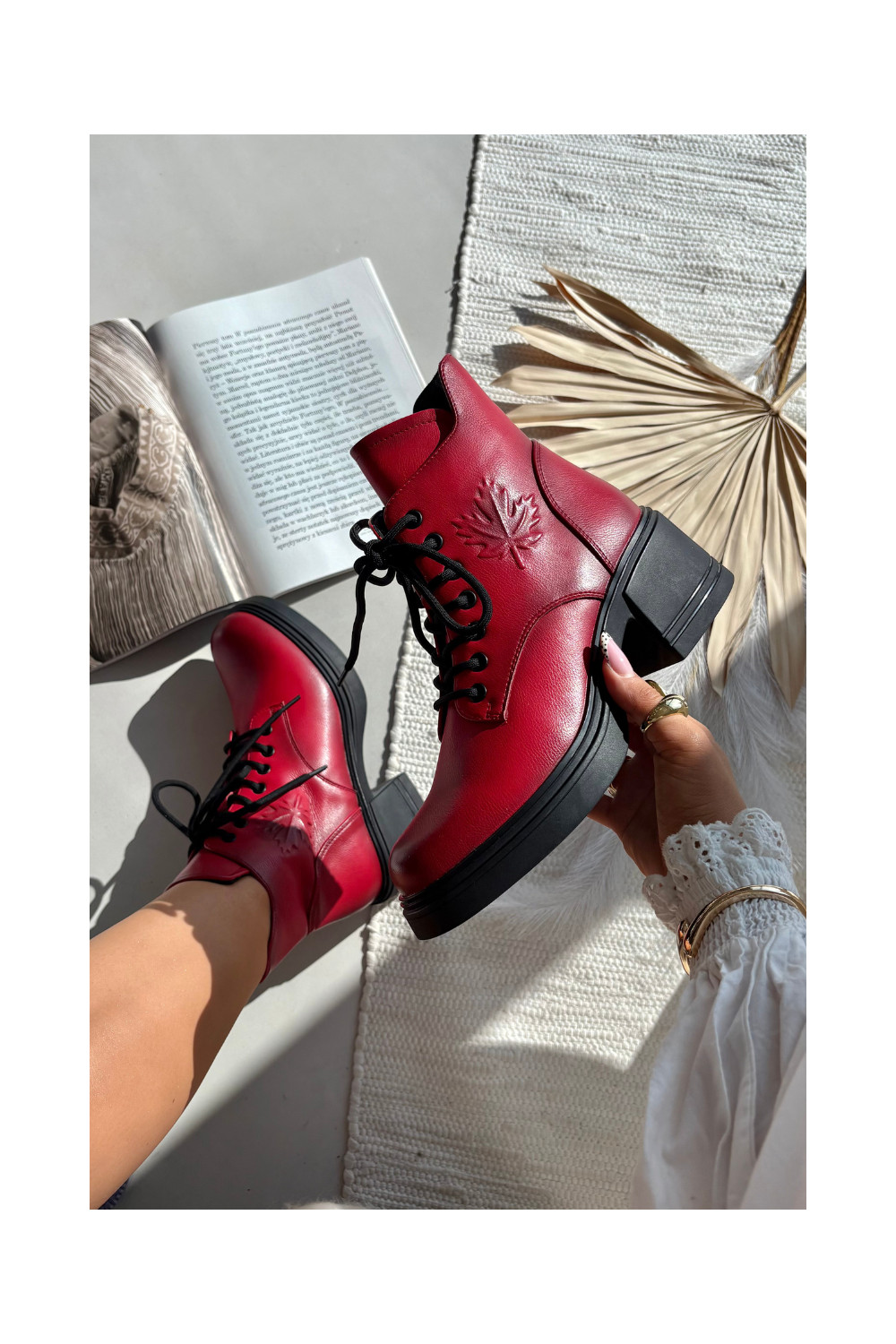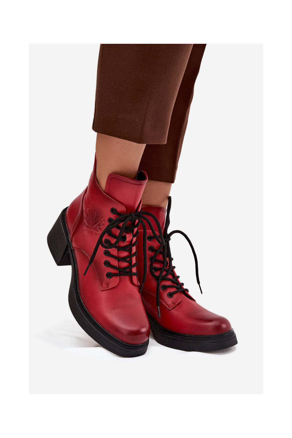 Sieviešu dabīgas ādas zābaki ar platformām, siltināti, Vinceza 39950 sarkanā krāsā