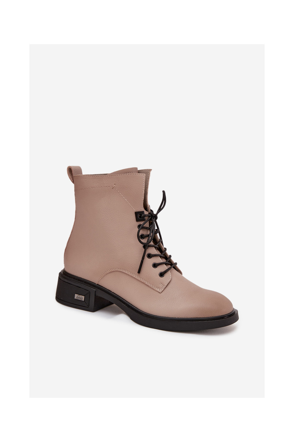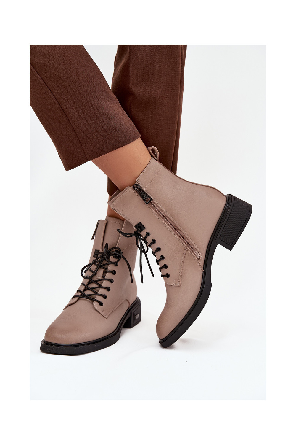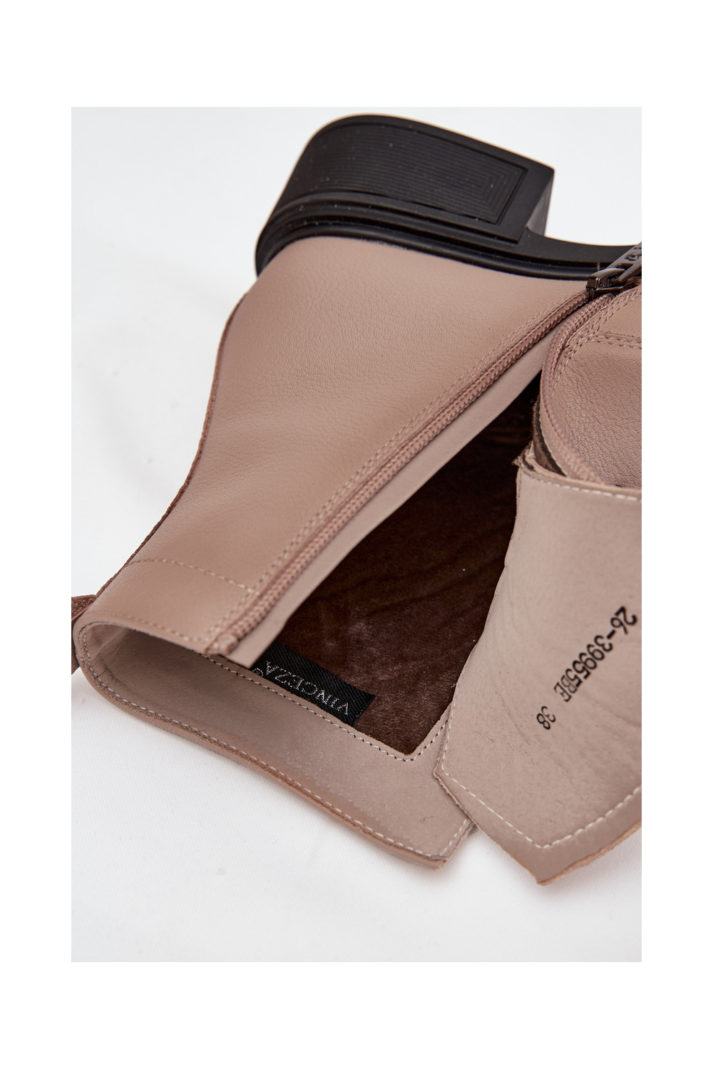 Sieviešu dabīgas ādas zābaki uz zema papēža, siltināti, Vinceza 39955 smilšu krāsā