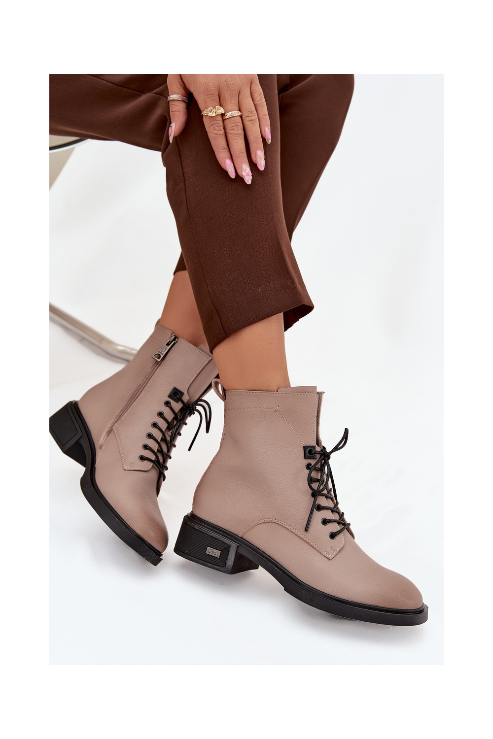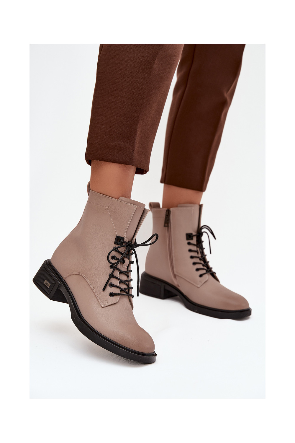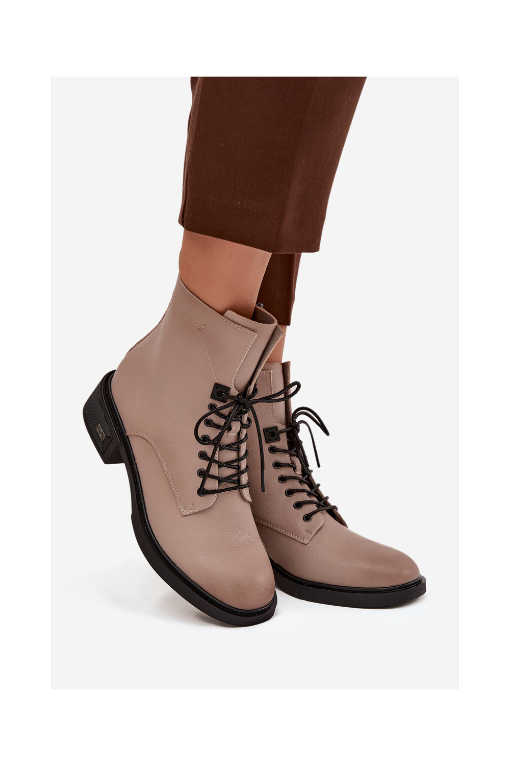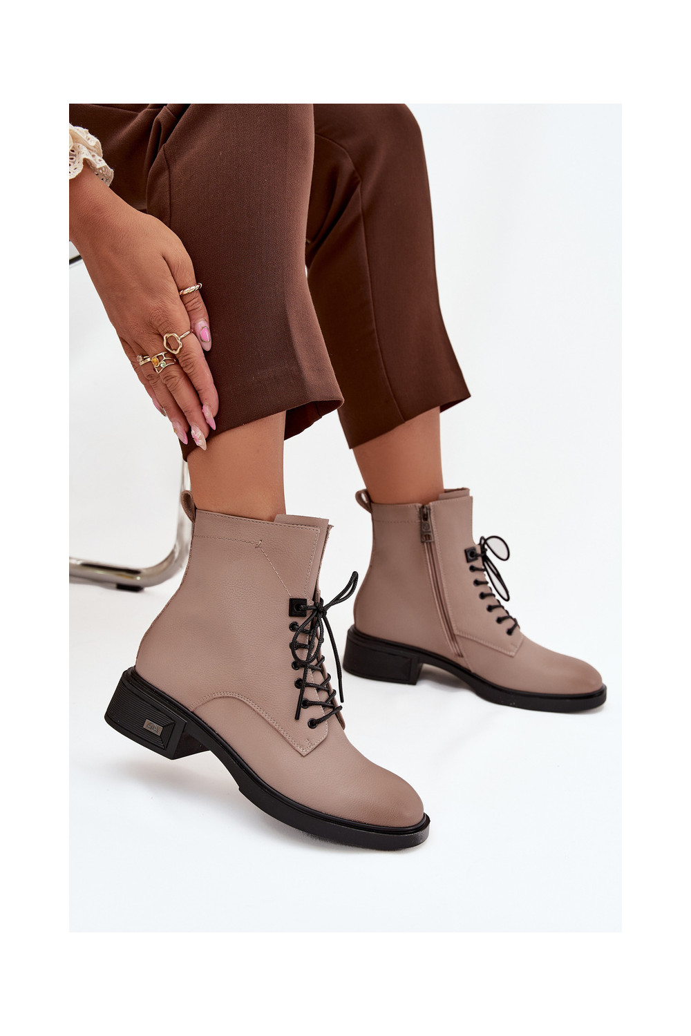 Sieviešu dabīgas ādas zābaki uz zema papēža, siltināti, Vinceza 39955 smilšu krāsā