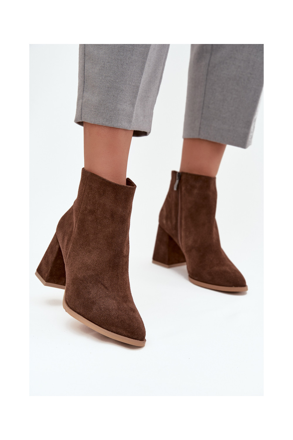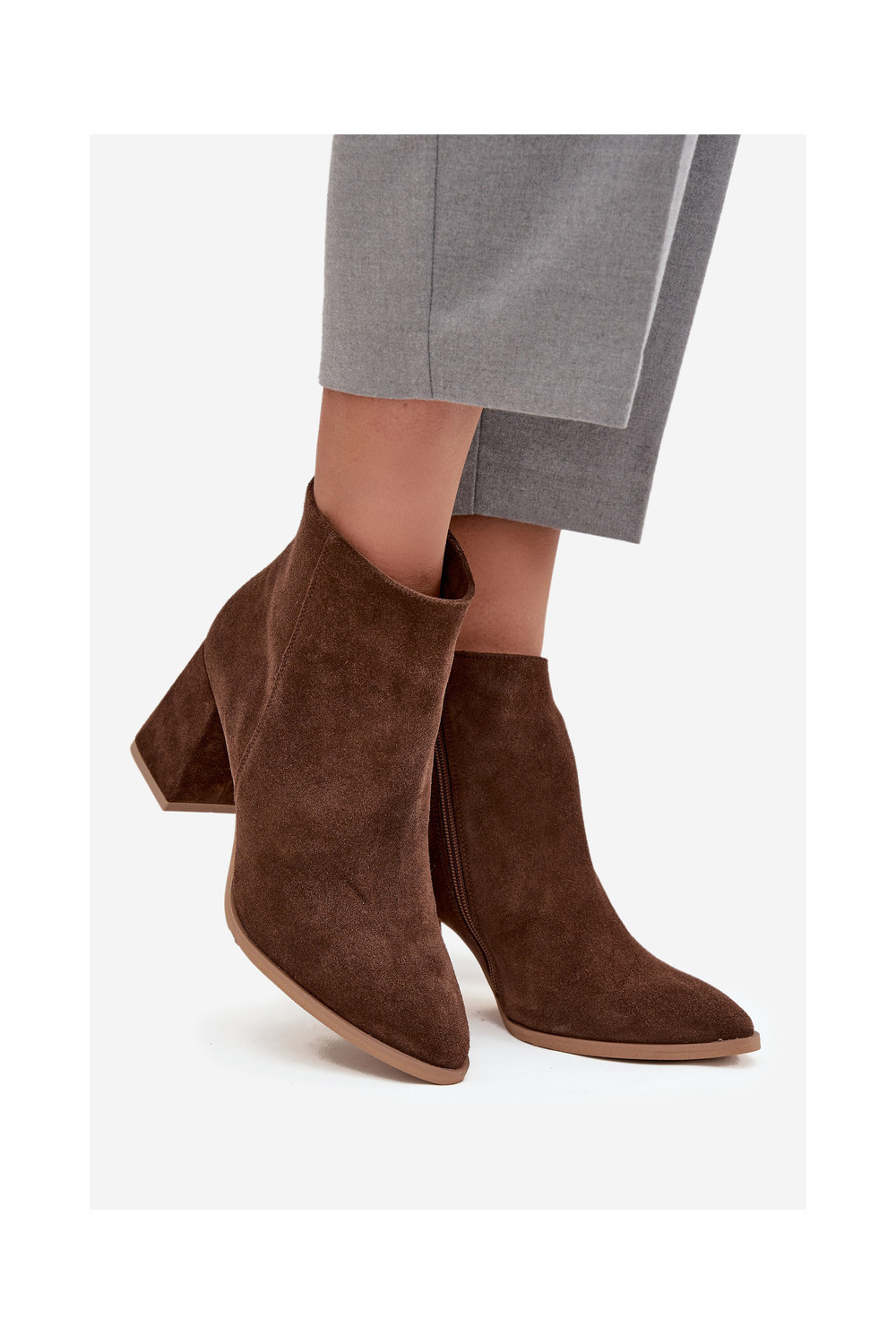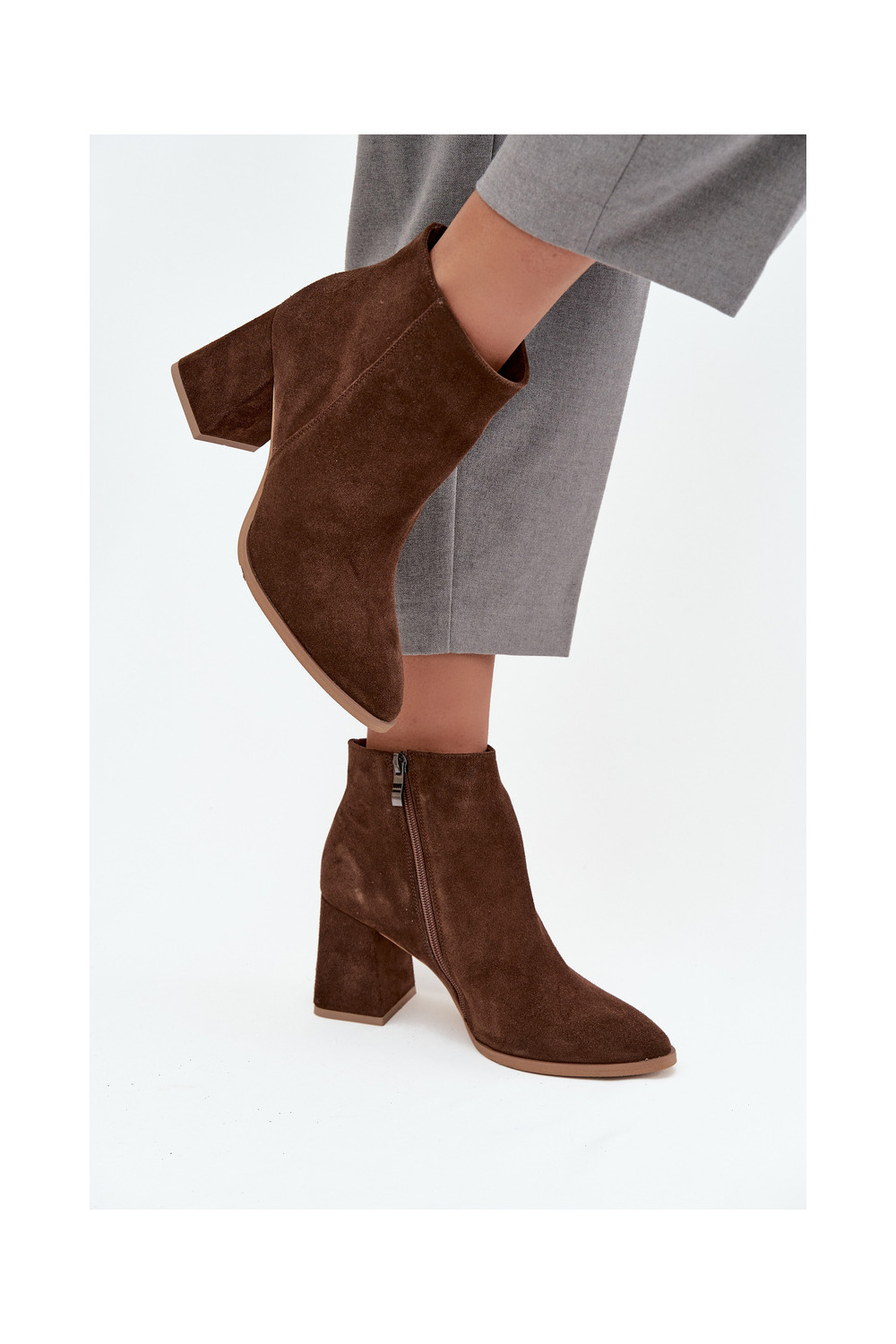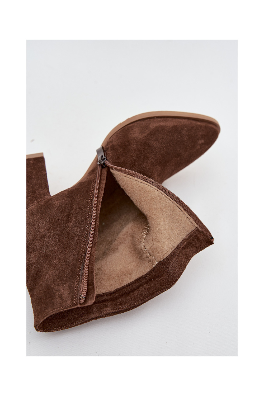 dabīgās zamšādas zābaki ar stabiņu papēdi siltināti brūnā krāsā Zazoo 3128