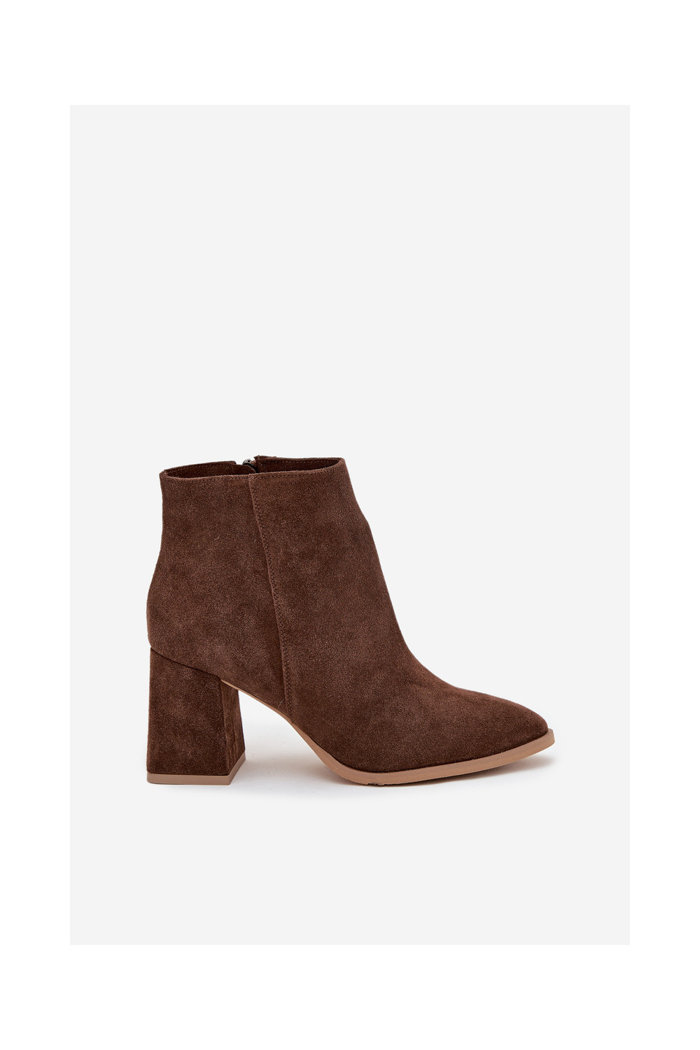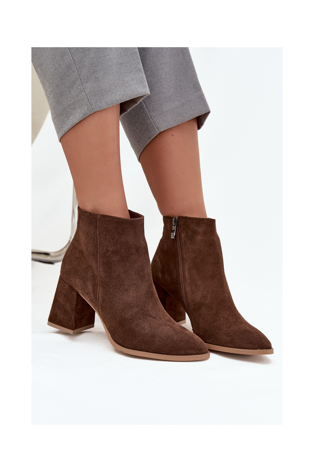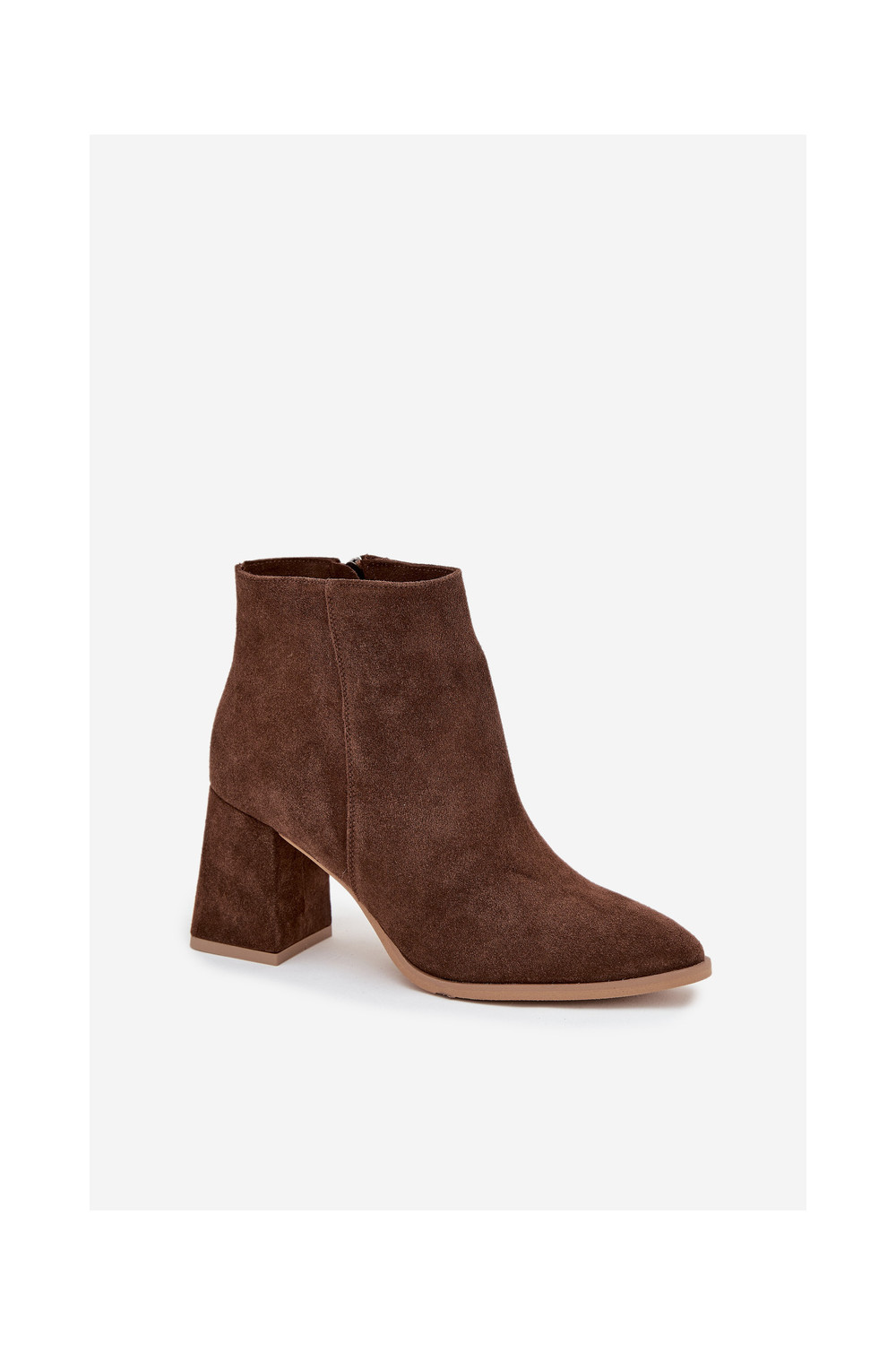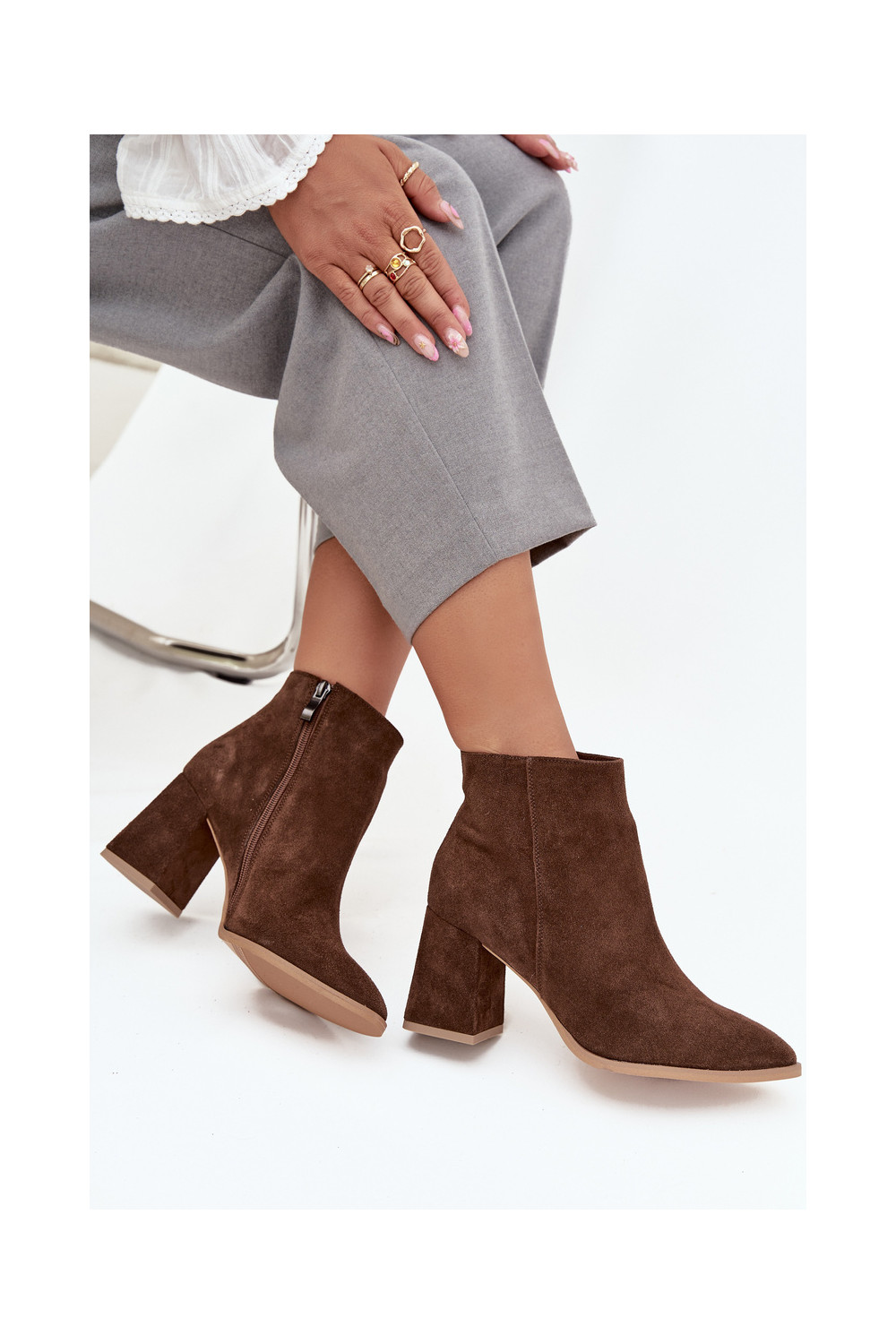 dabīgās zamšādas zābaki ar stabiņu papēdi siltināti brūnā krāsā Zazoo 3128