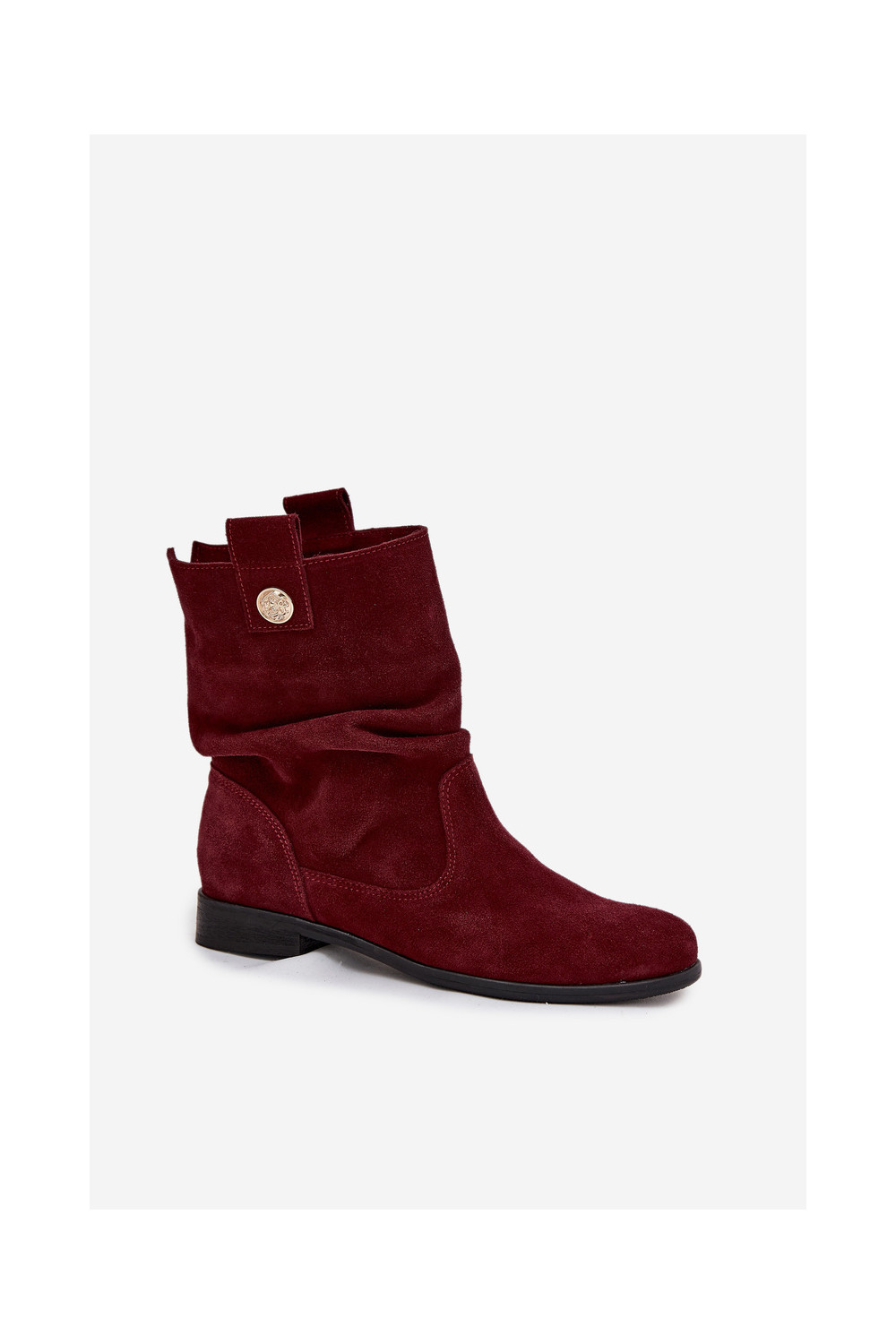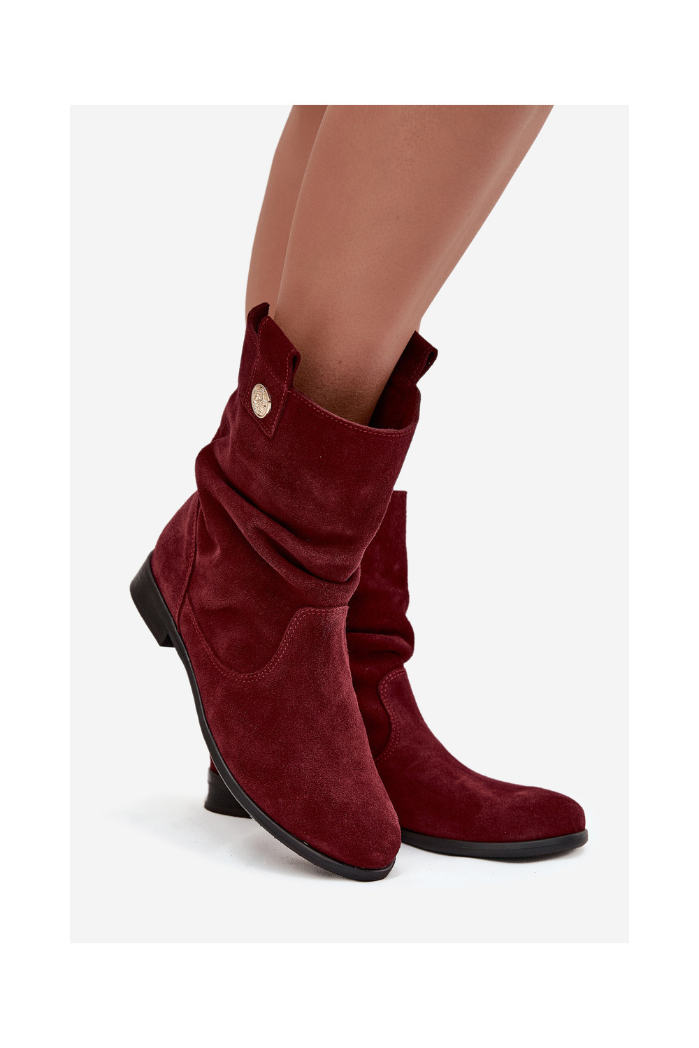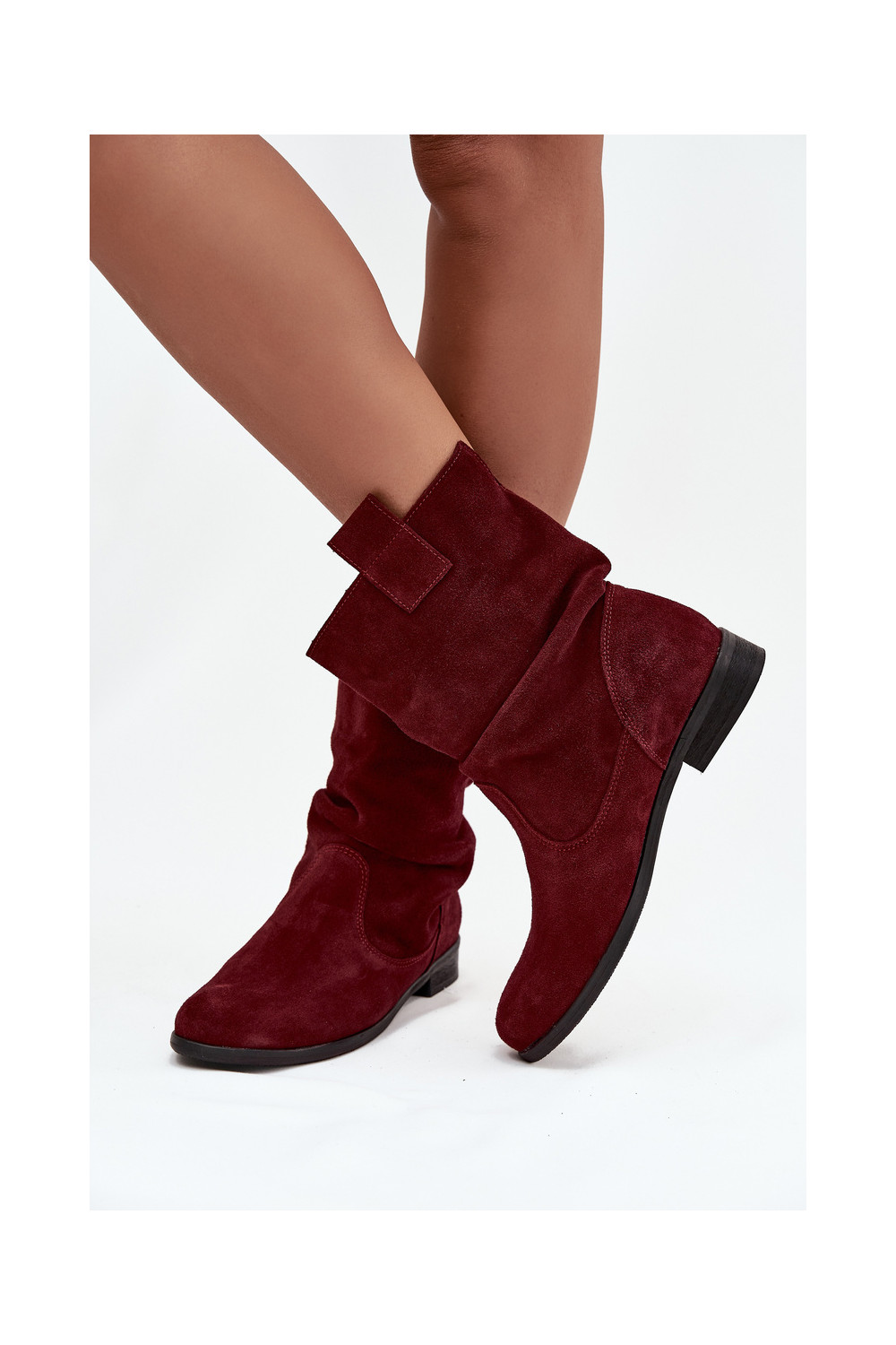 ādas sieviešu zamšādas zābaki ar ruffle siltināti Zazoo 4210 bordo krāsā