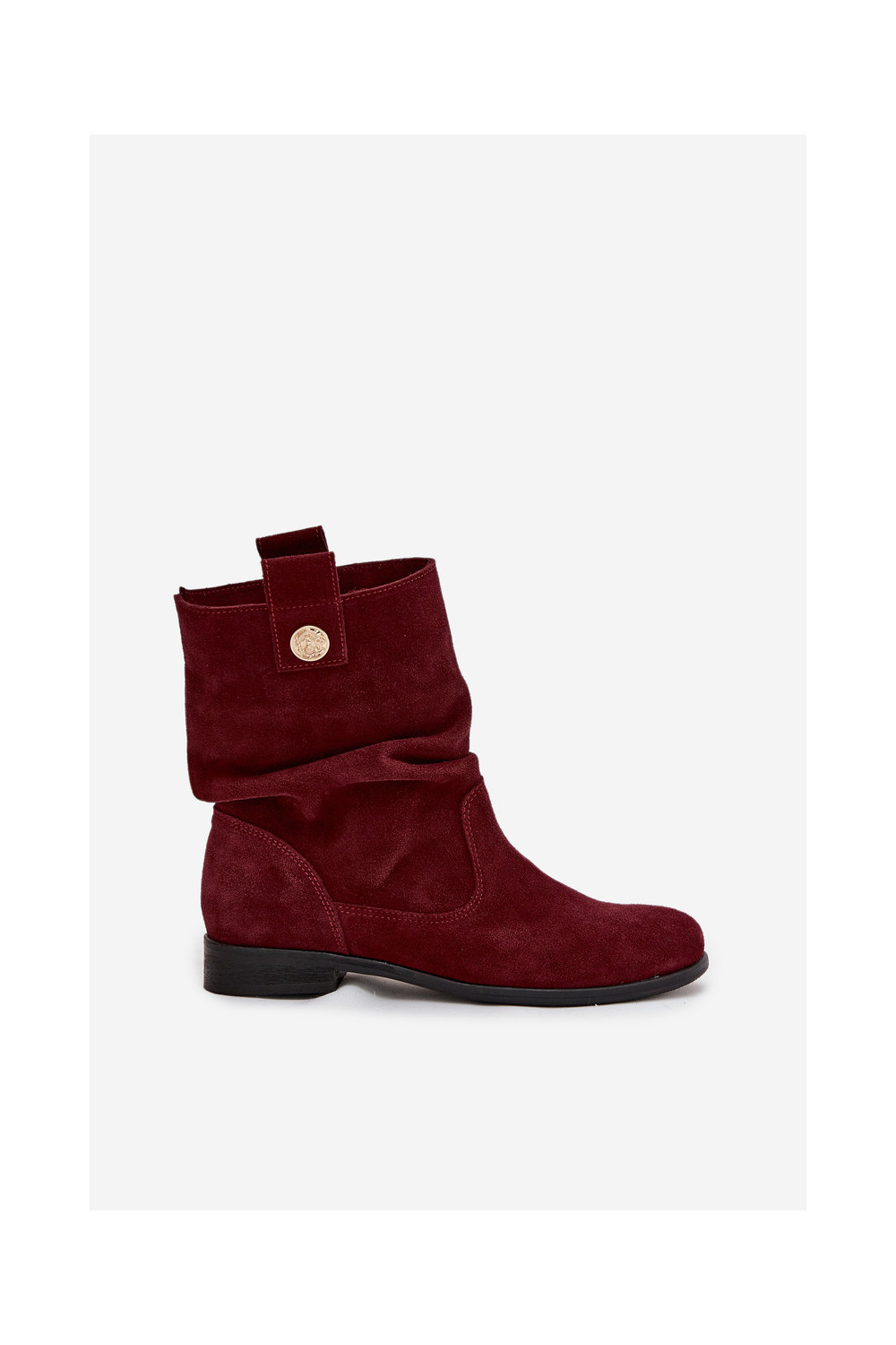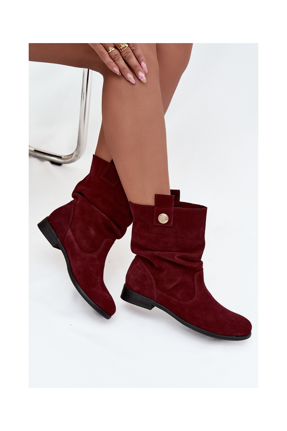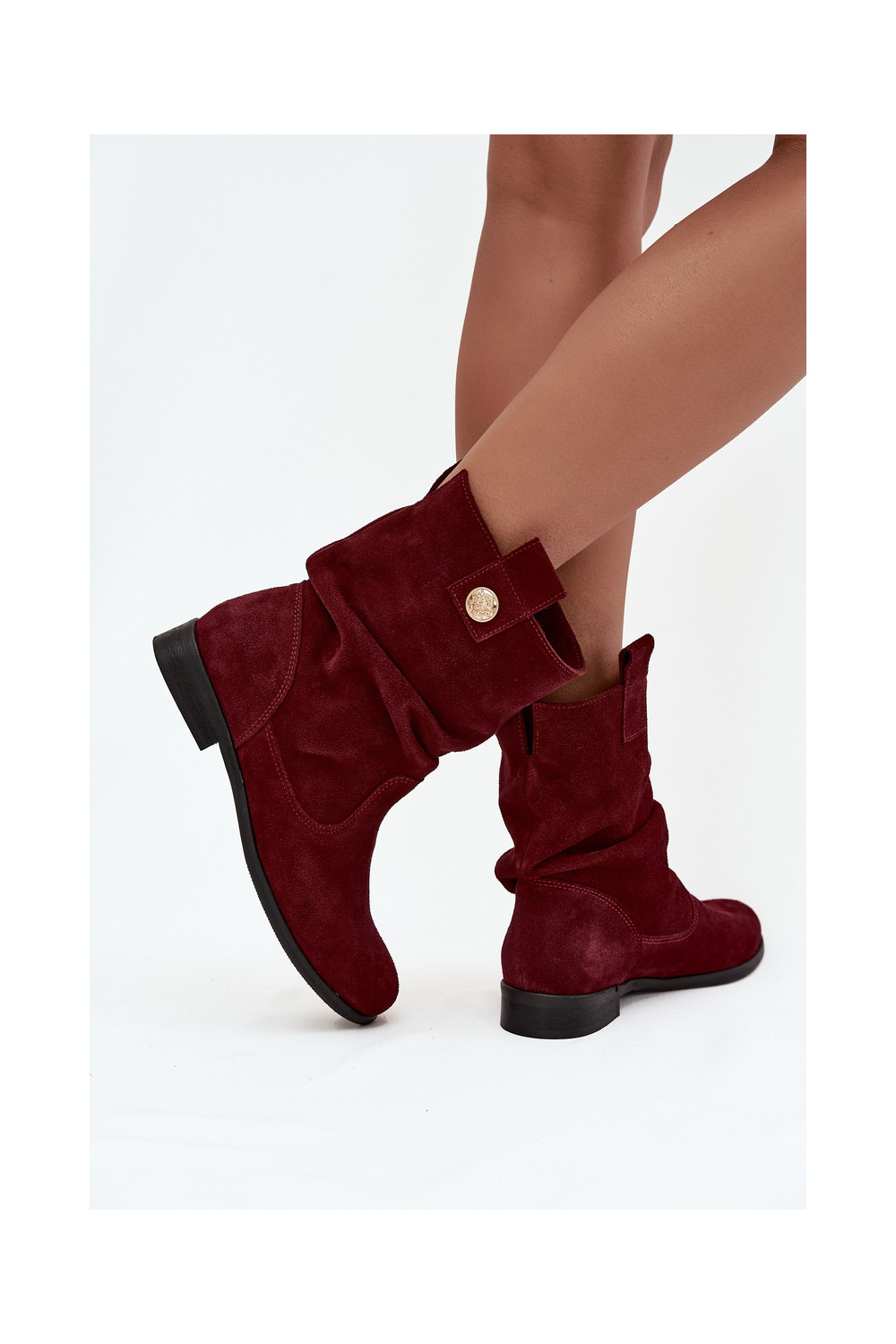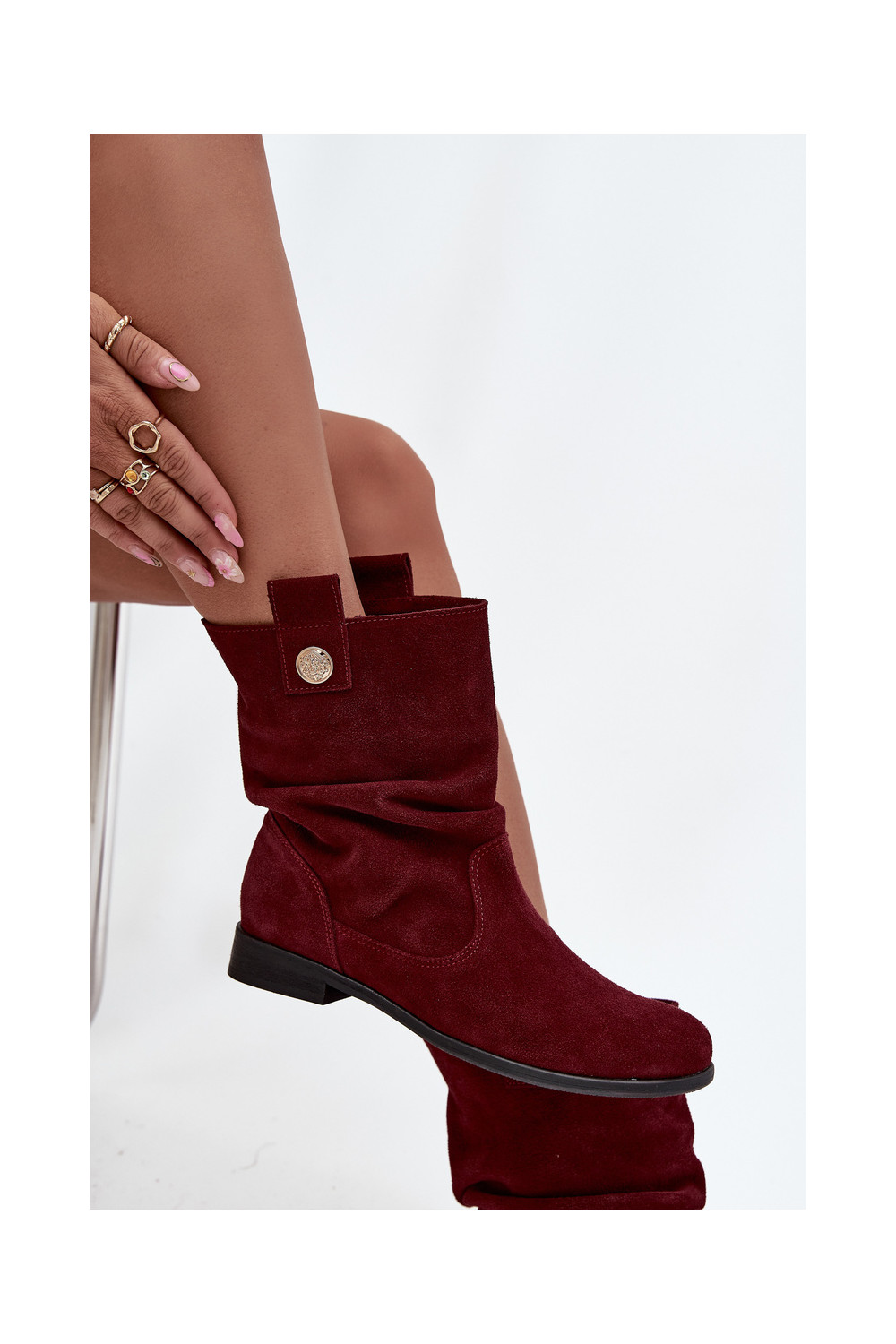 ādas sieviešu zamšādas zābaki ar ruffle siltināti Zazoo 4210 bordo krāsā