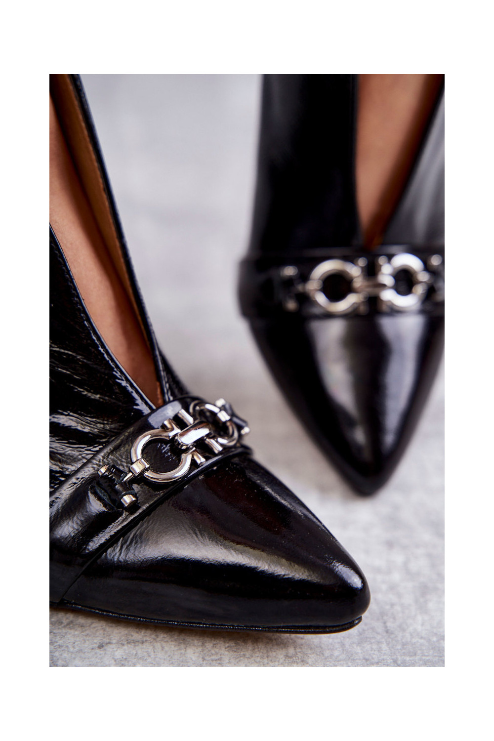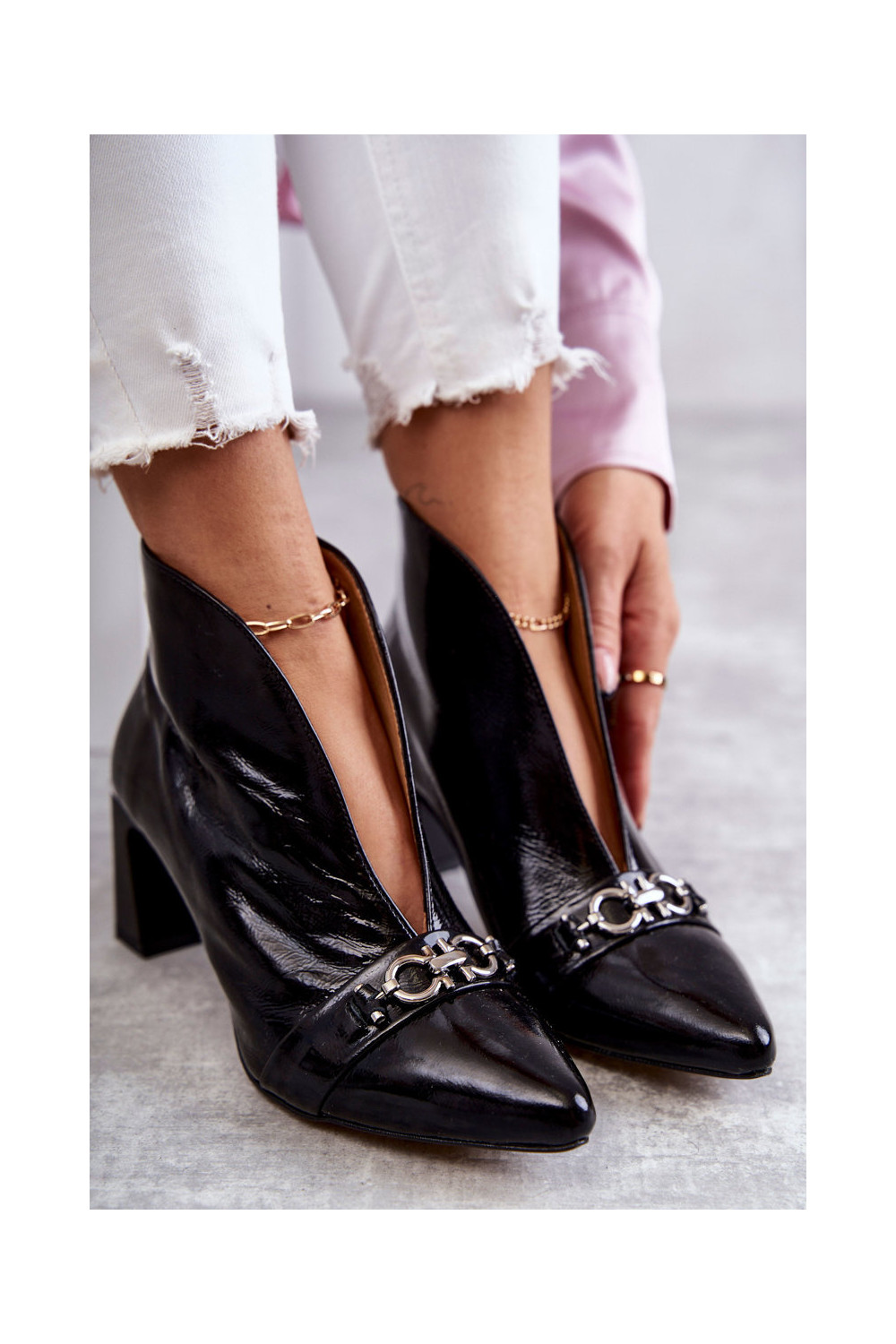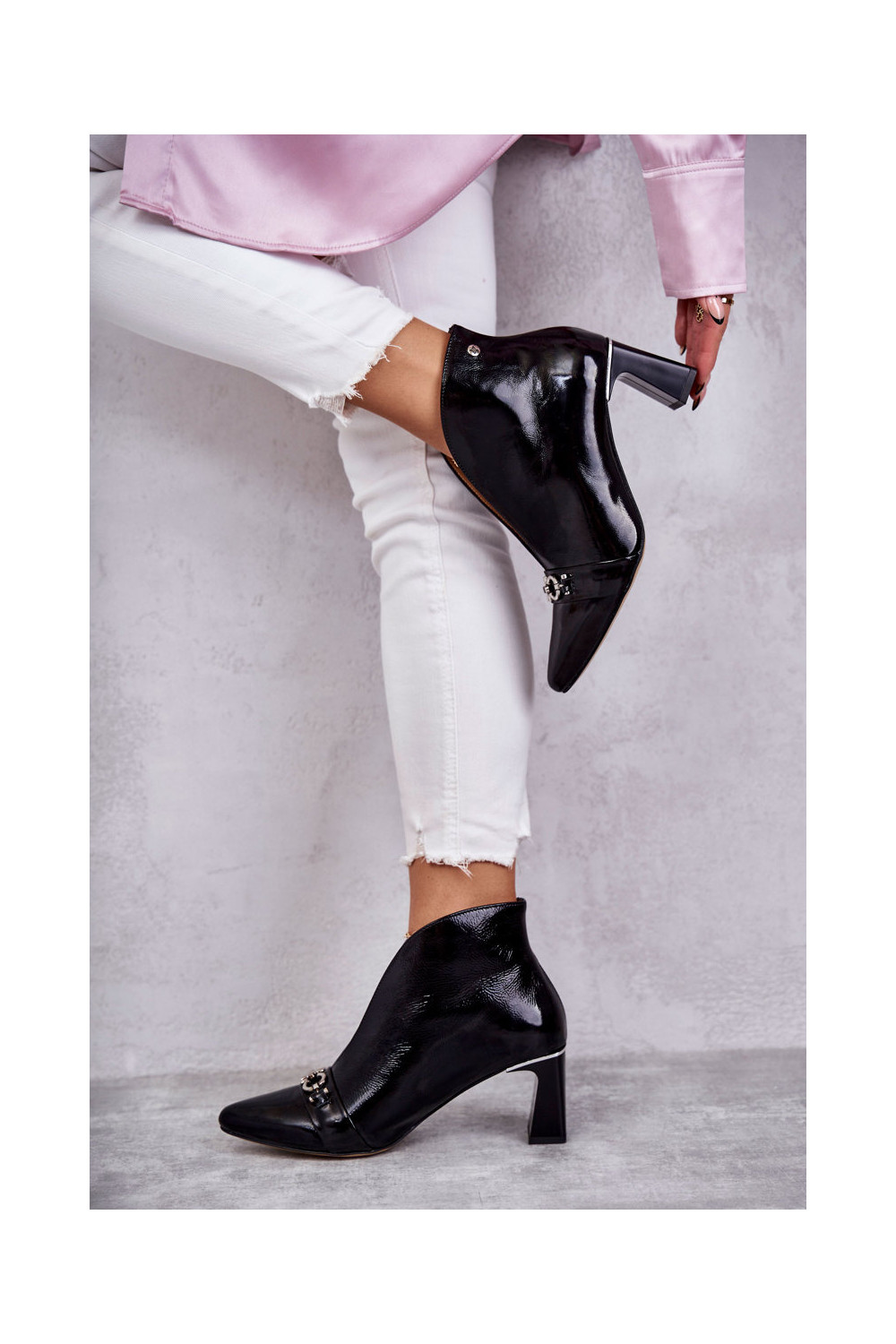 Ādas zābaki ar papēžiem "Tai turiciejka" melnā krāsā 05262-01