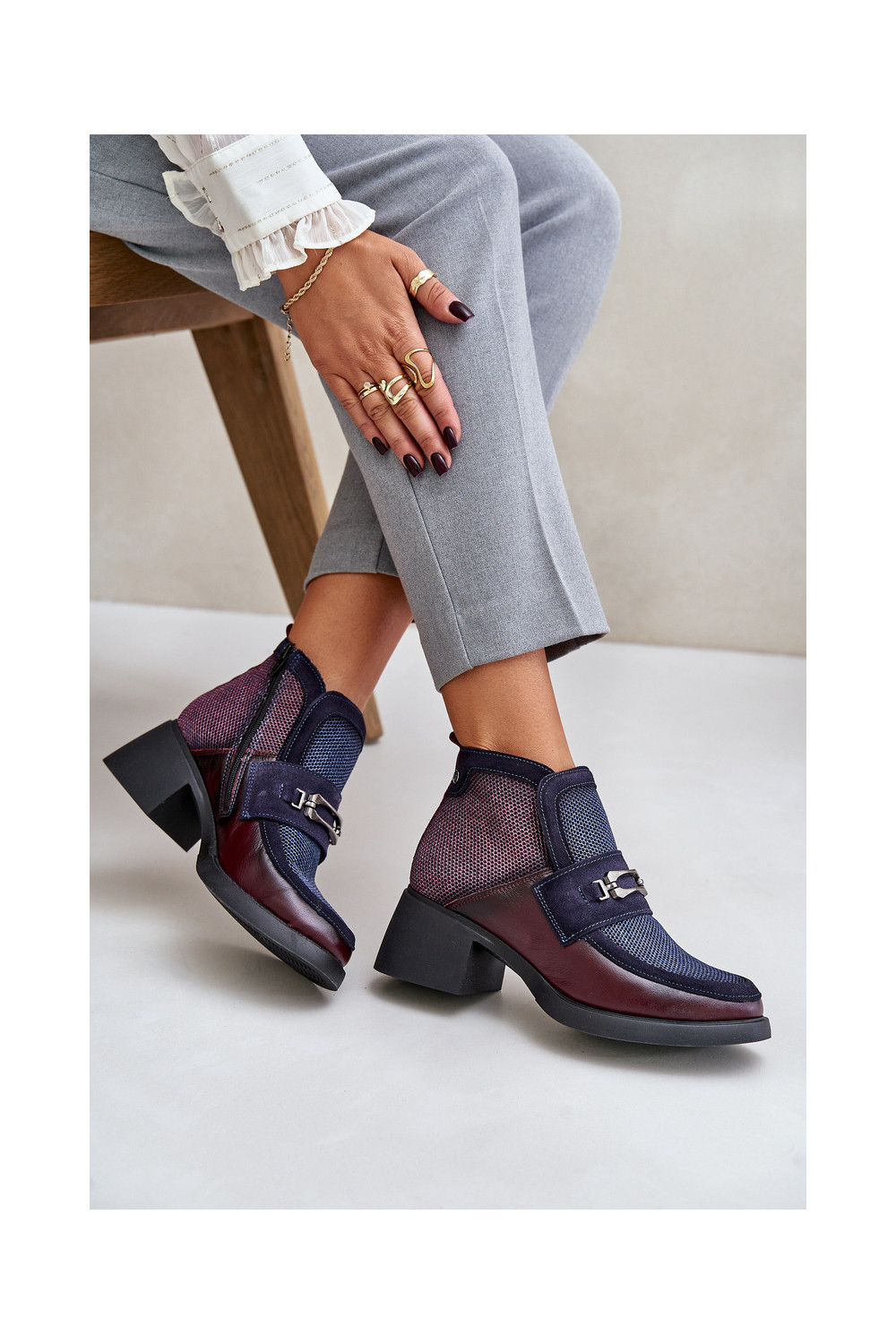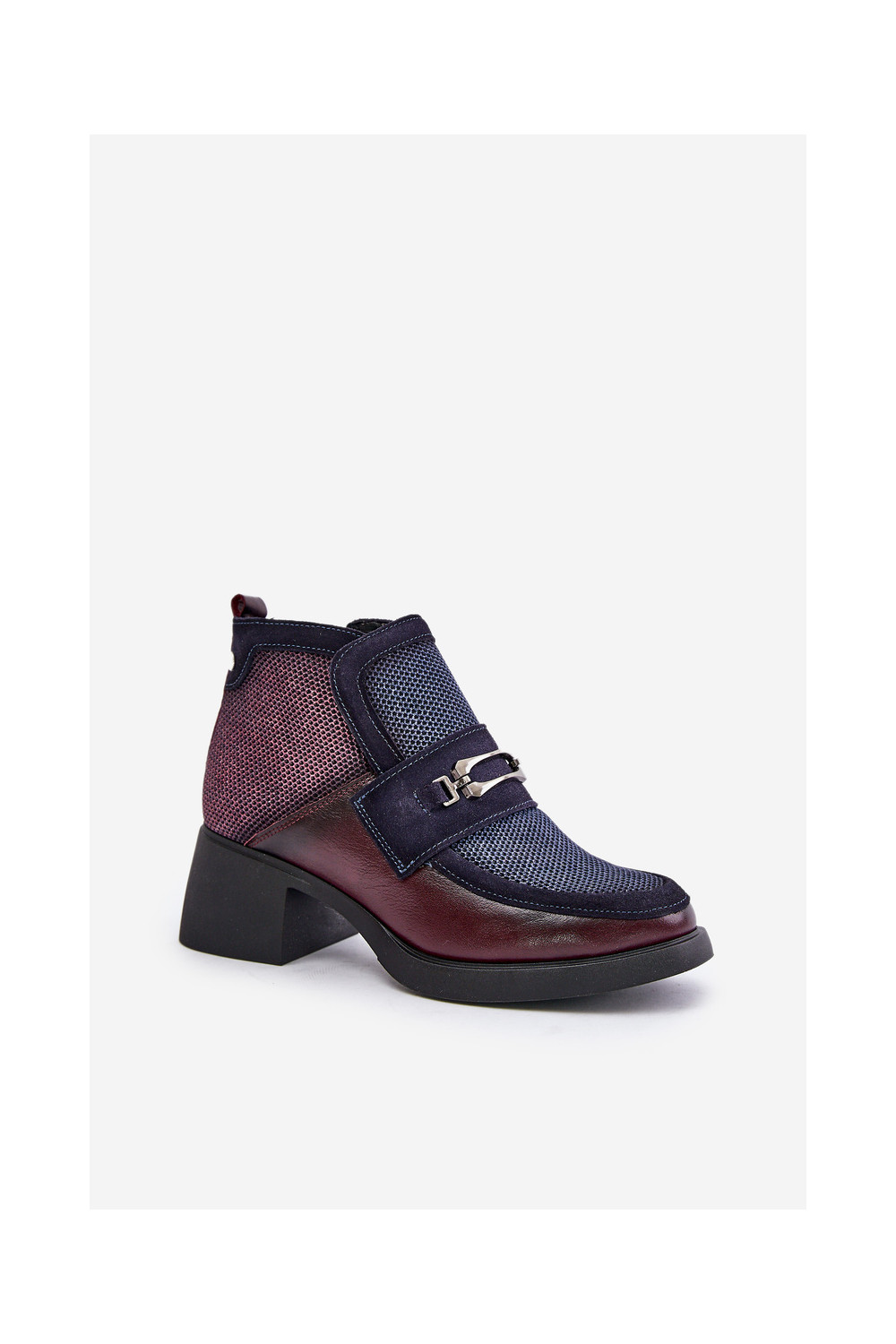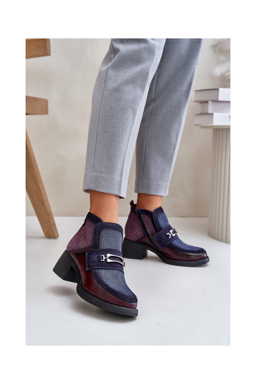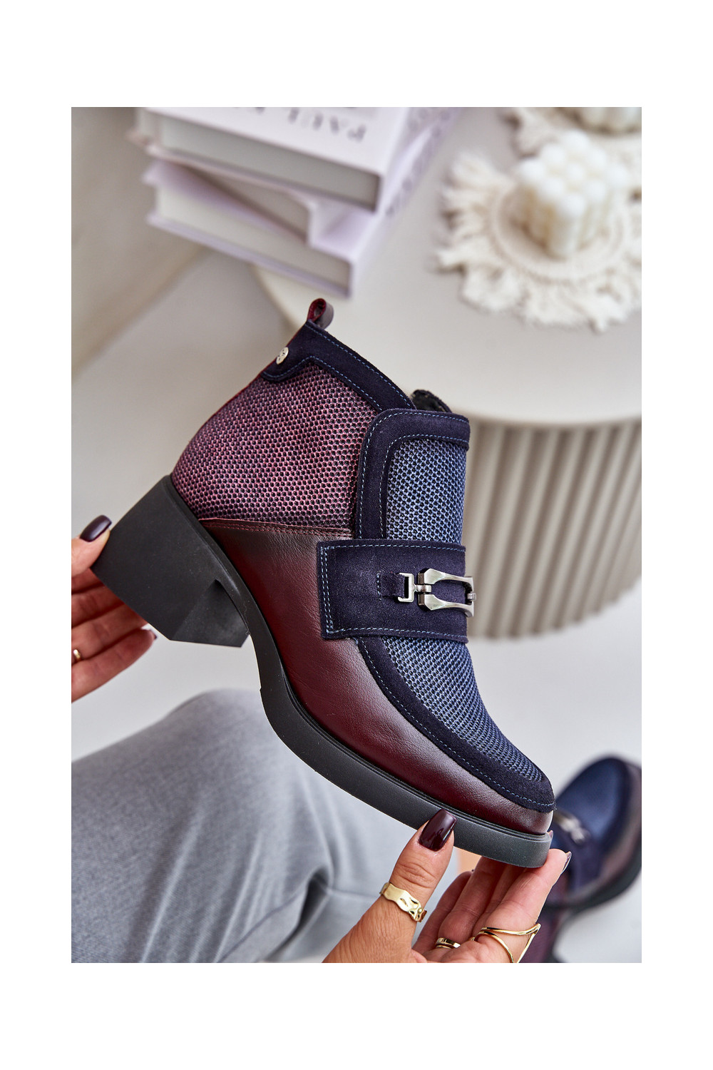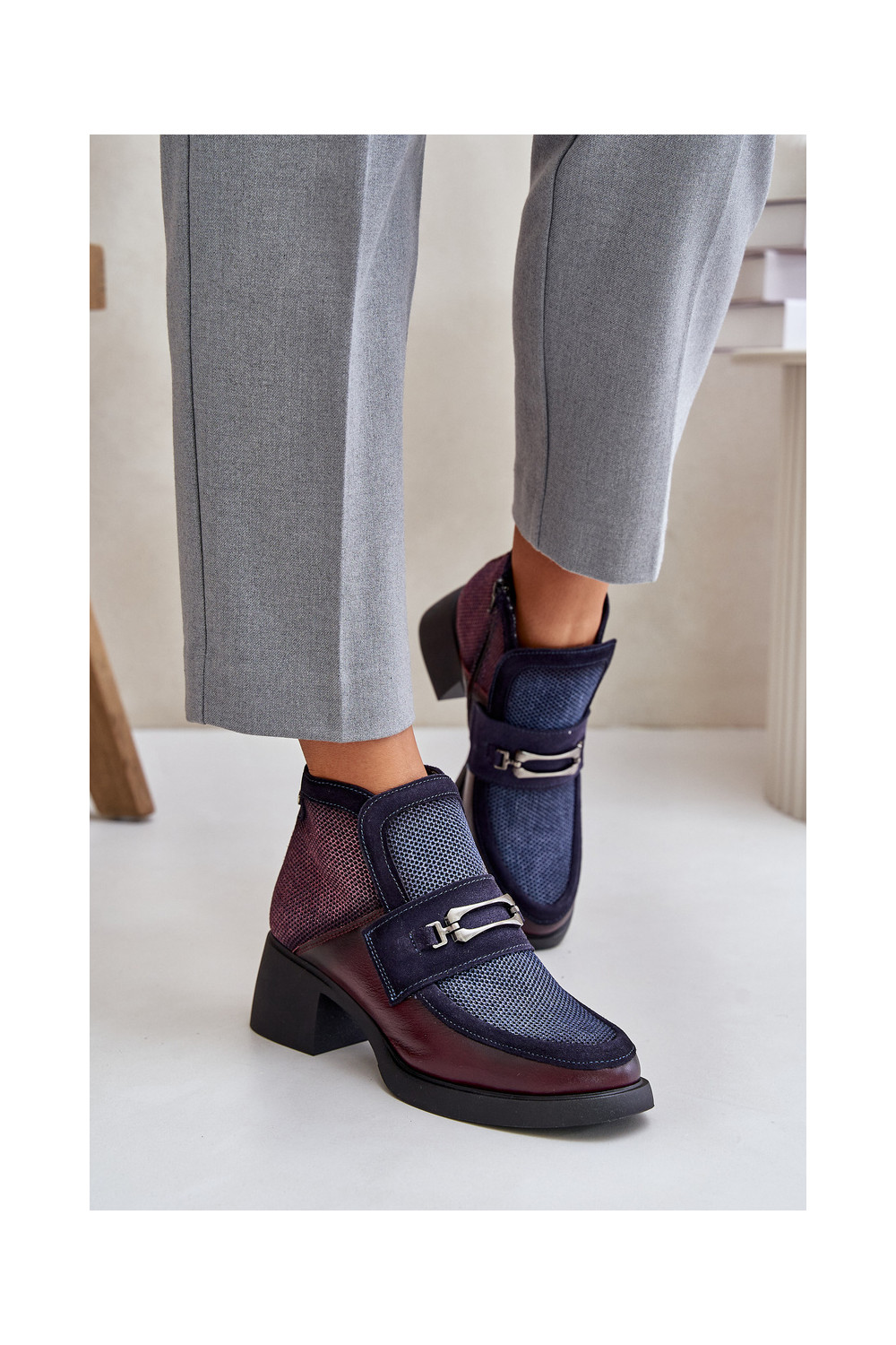 Ādas sieviešu zābaki uz masīviem papēžiem ar ornamentiem "Tai turiciejka" A6747-23 bordo-tumši zili
