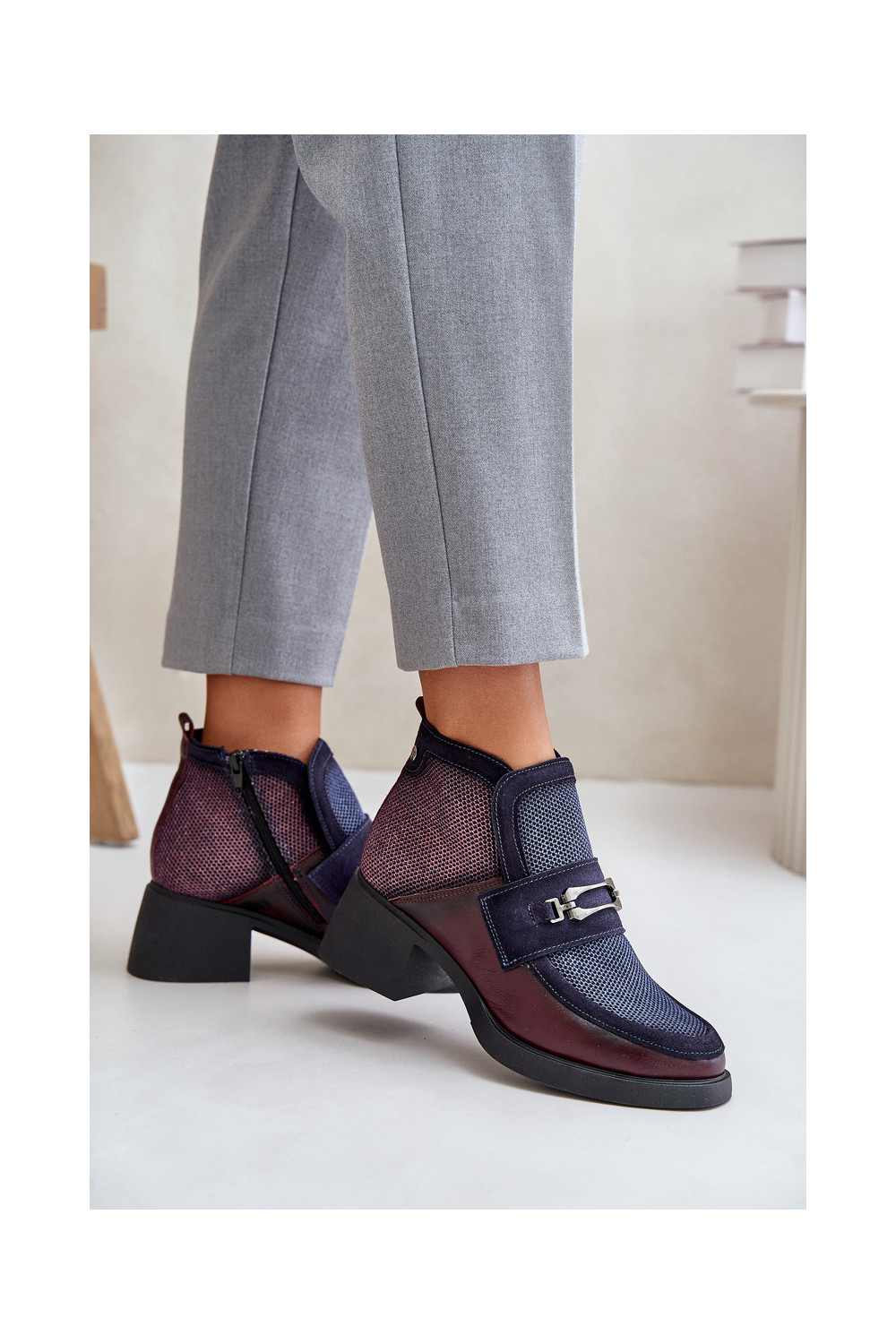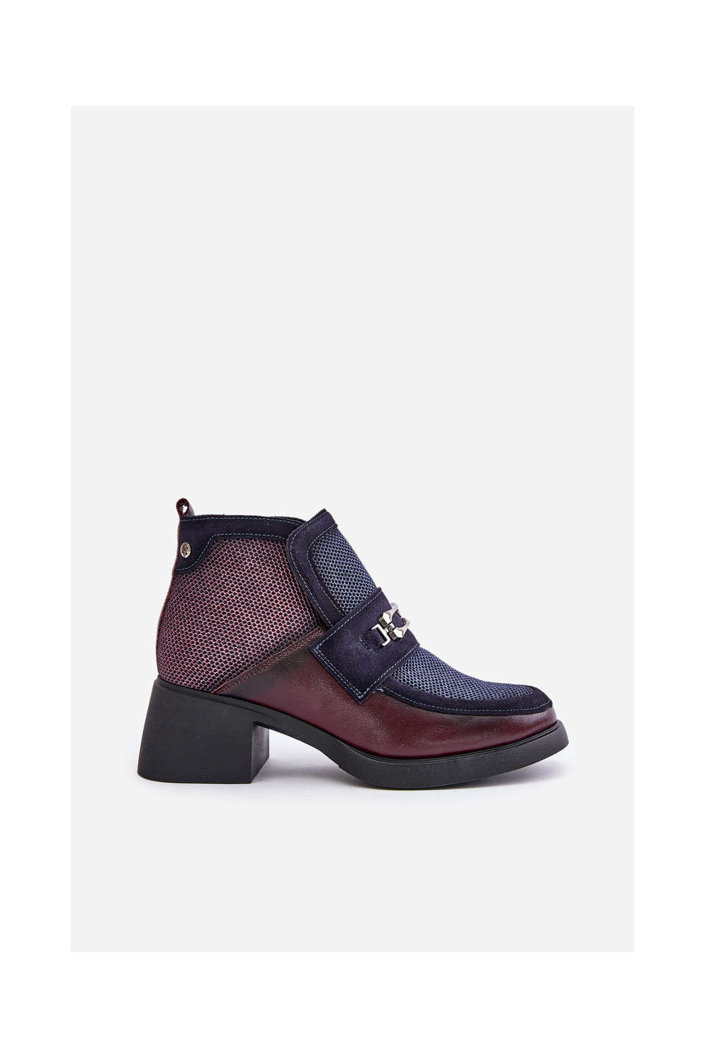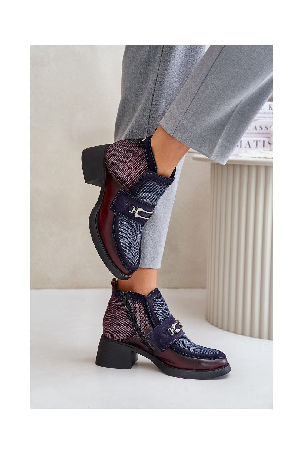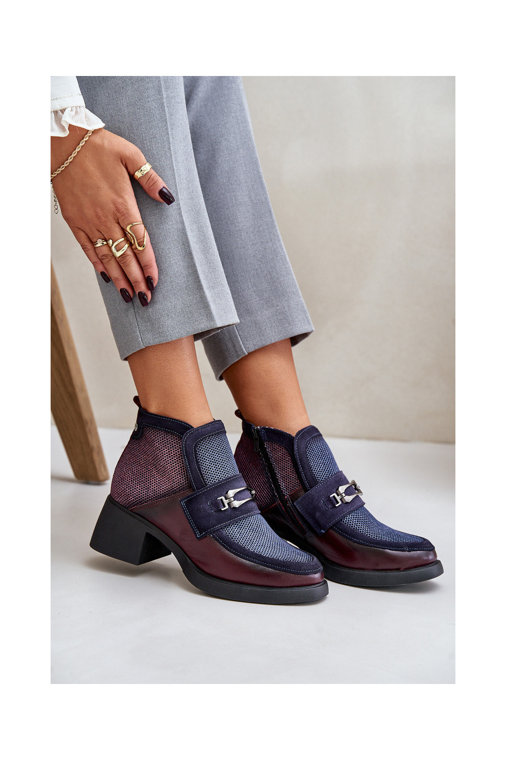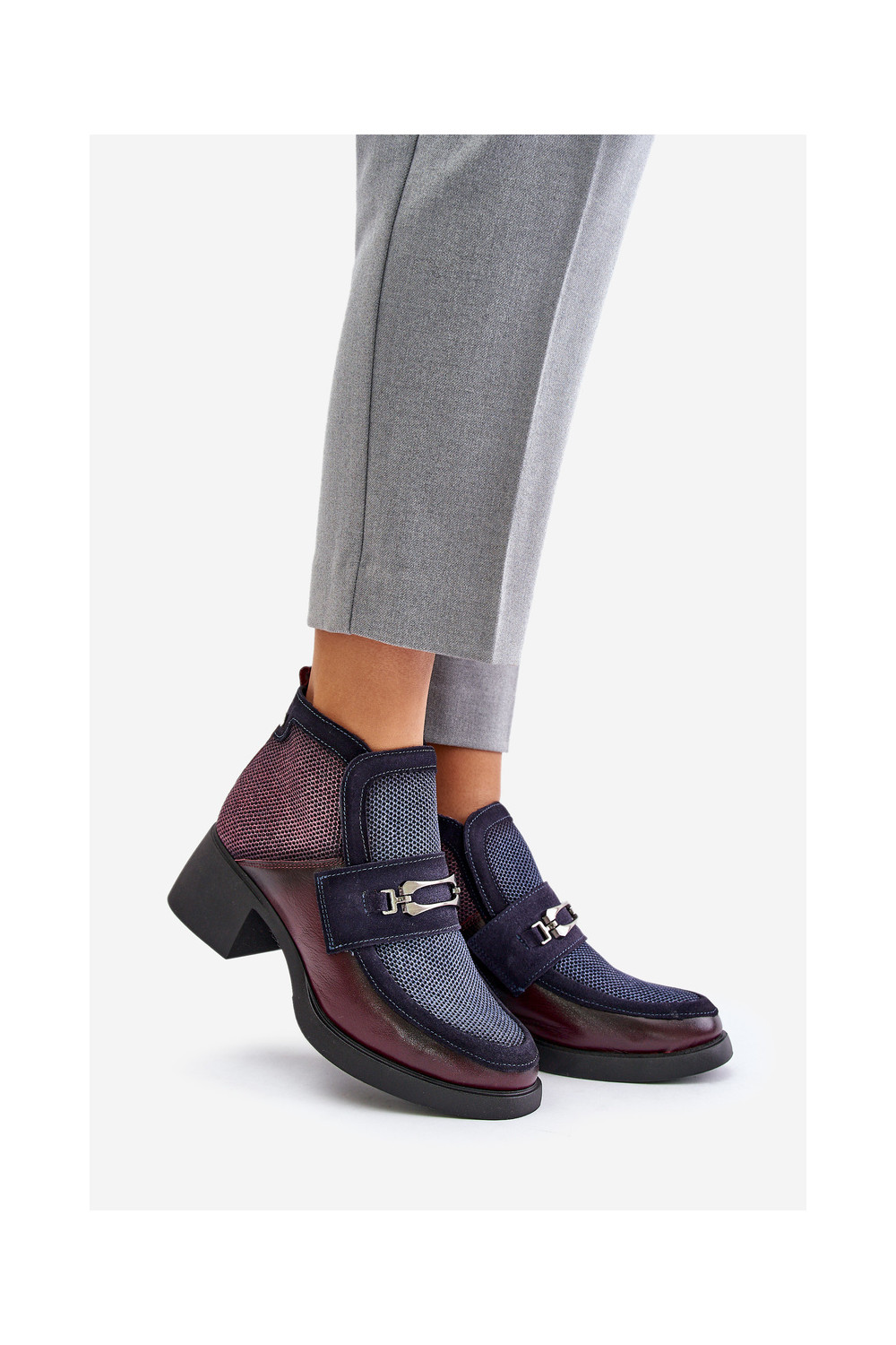 Ādas sieviešu zābaki uz masīviem papēžiem ar ornamentiem "Tai turiciejka" A6747-23 bordo-tumši zili