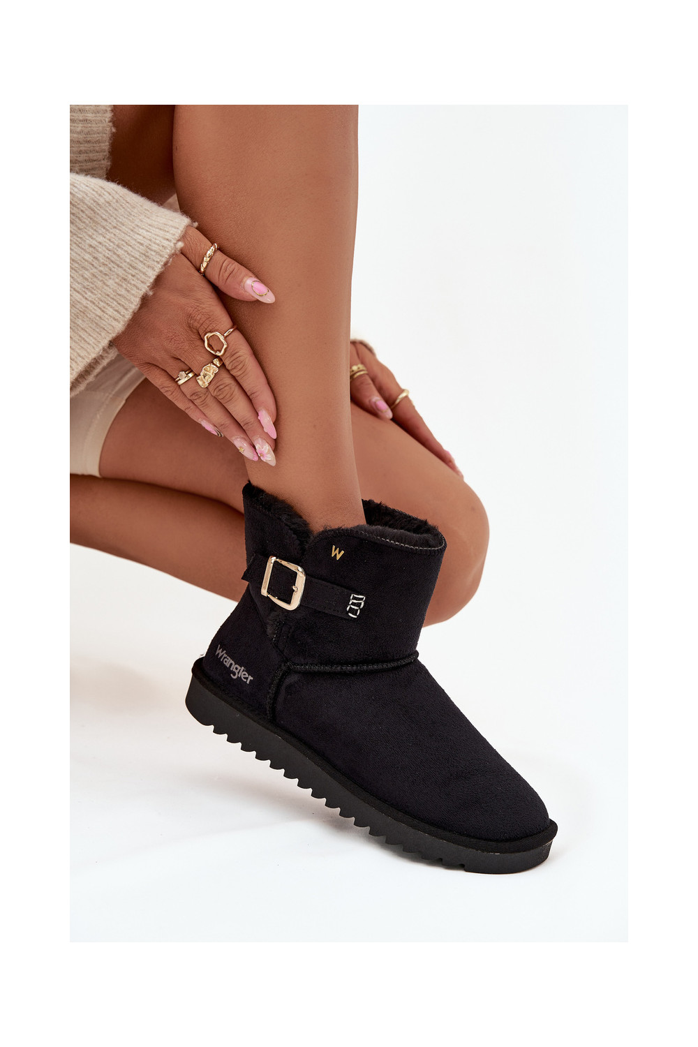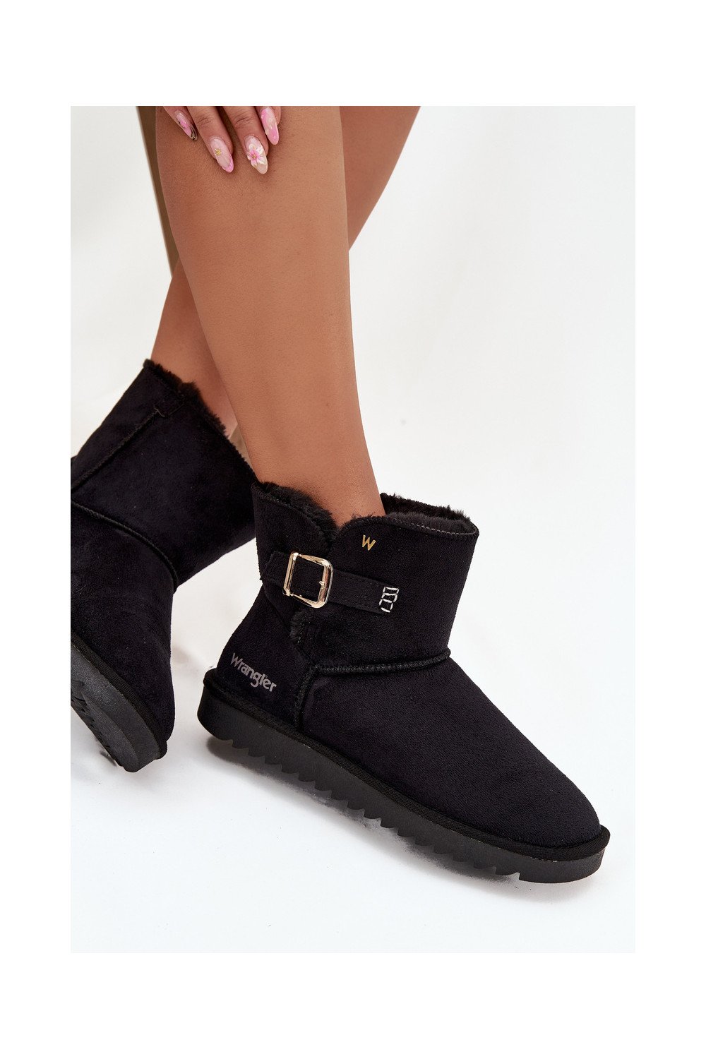 Sieviešu sniega zābaki ar sprādzēm Wrangler 20253091.25Y melnas krāsā