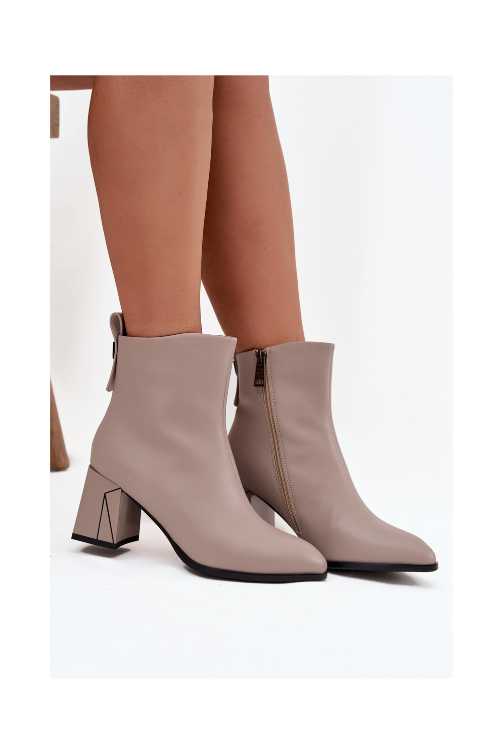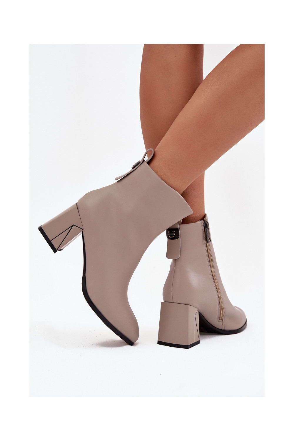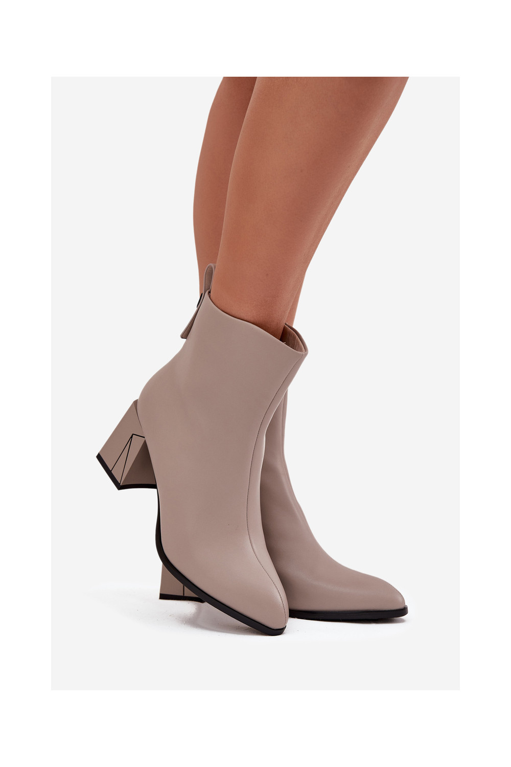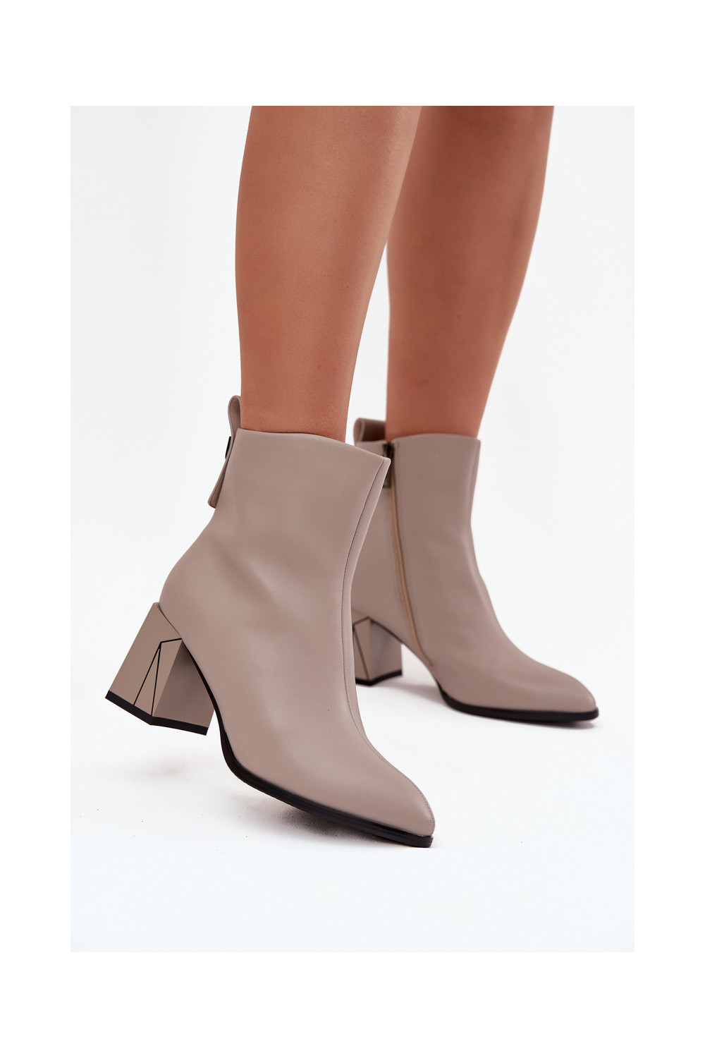 Siltināti dabīgās ādas zābaki ar papēžiem Vinceza 66812 pelēkas krāsā