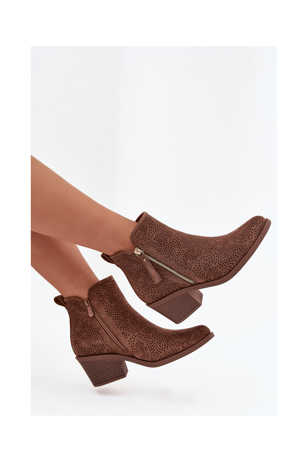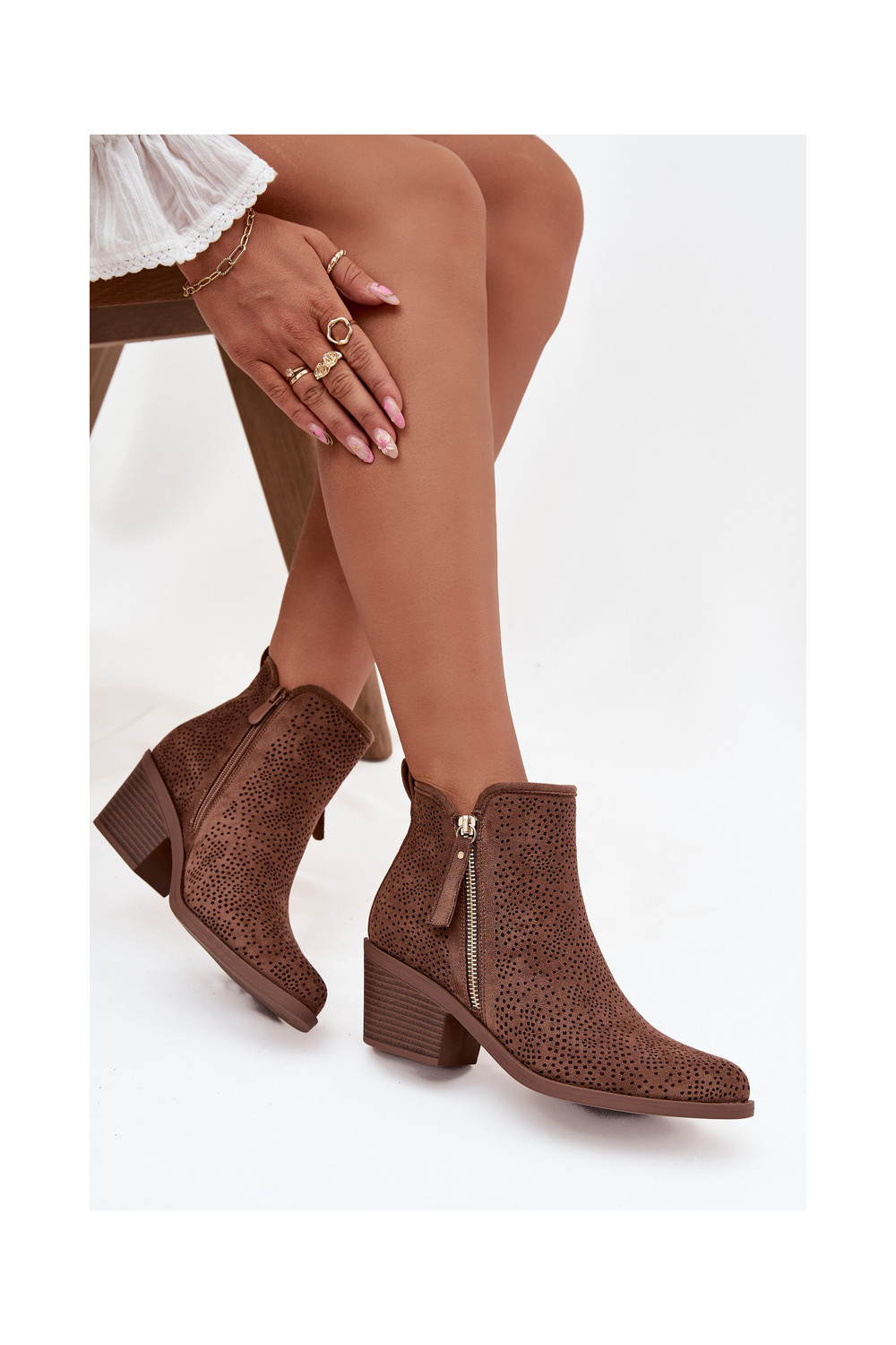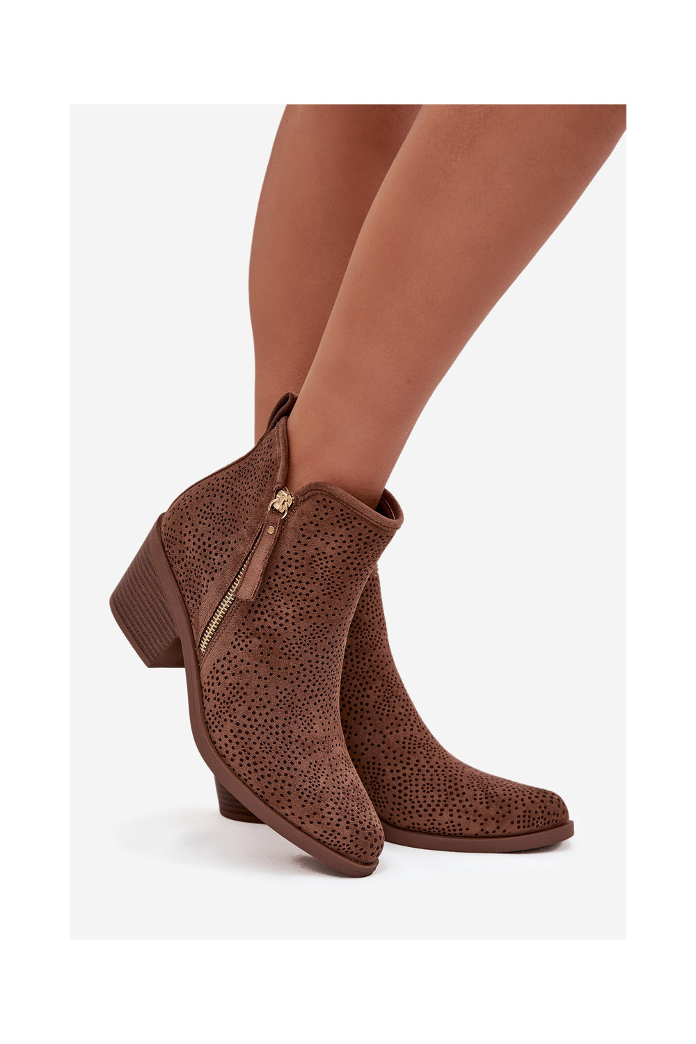 Kovboju stila sieviešu zābaki ar papēžiem S.Barski HY52-538 brūnas krāsā